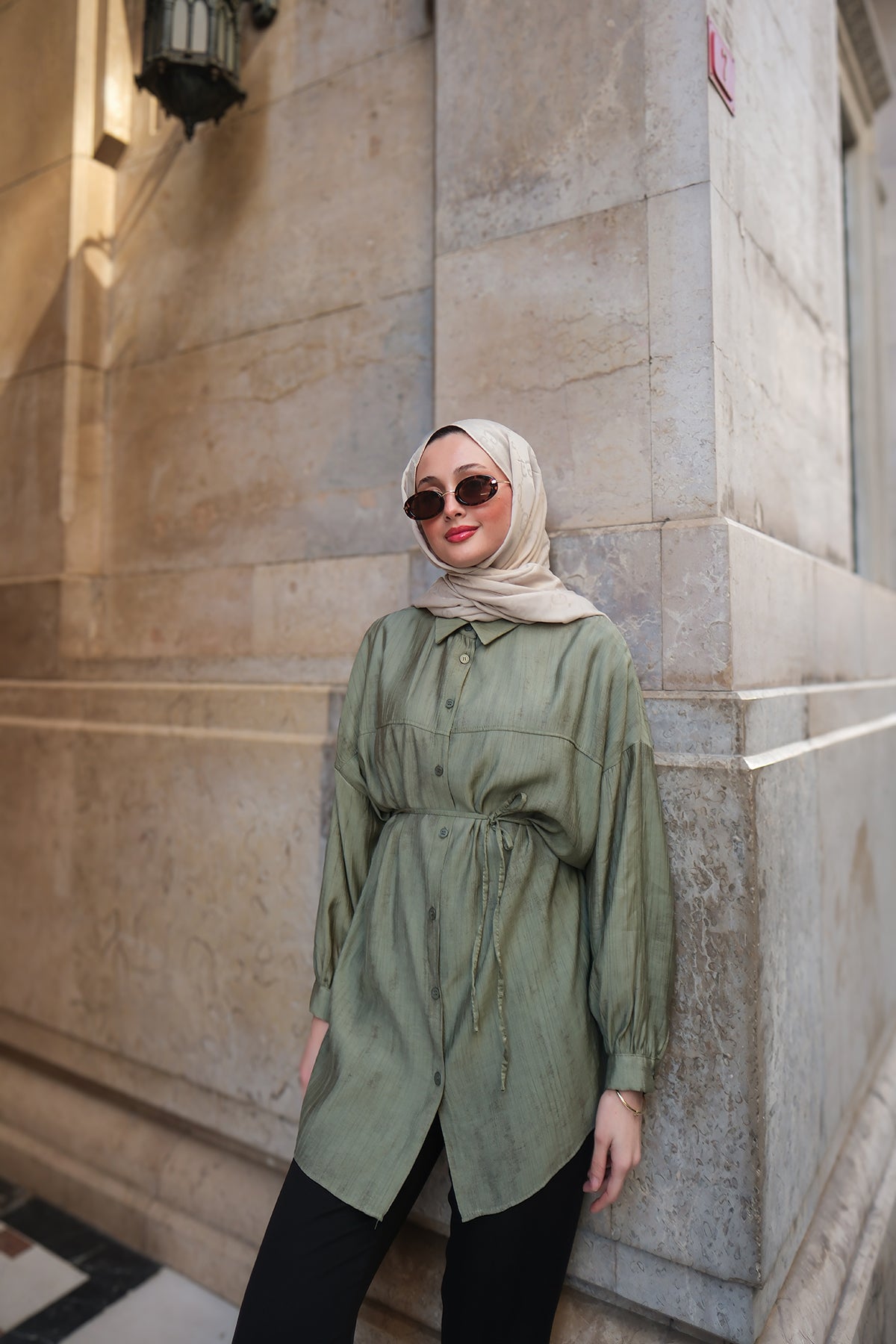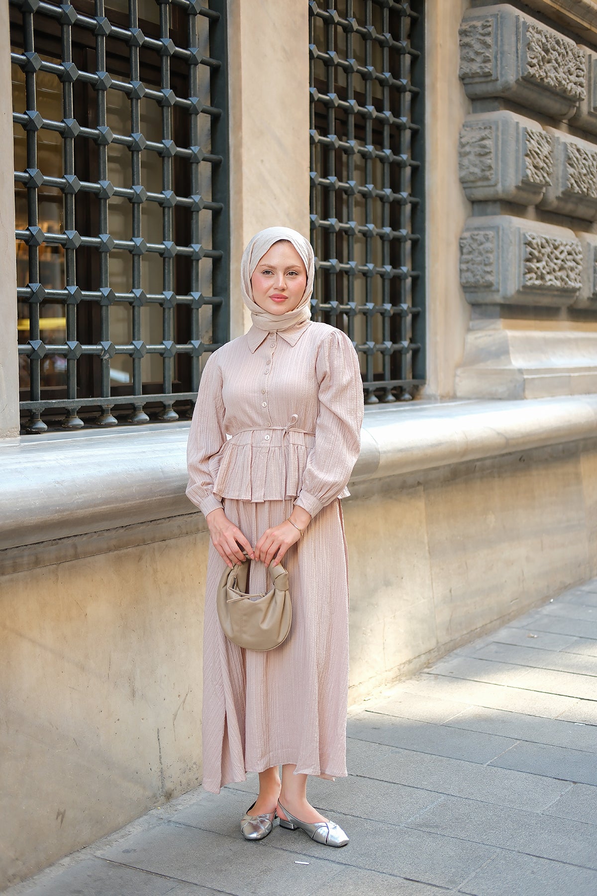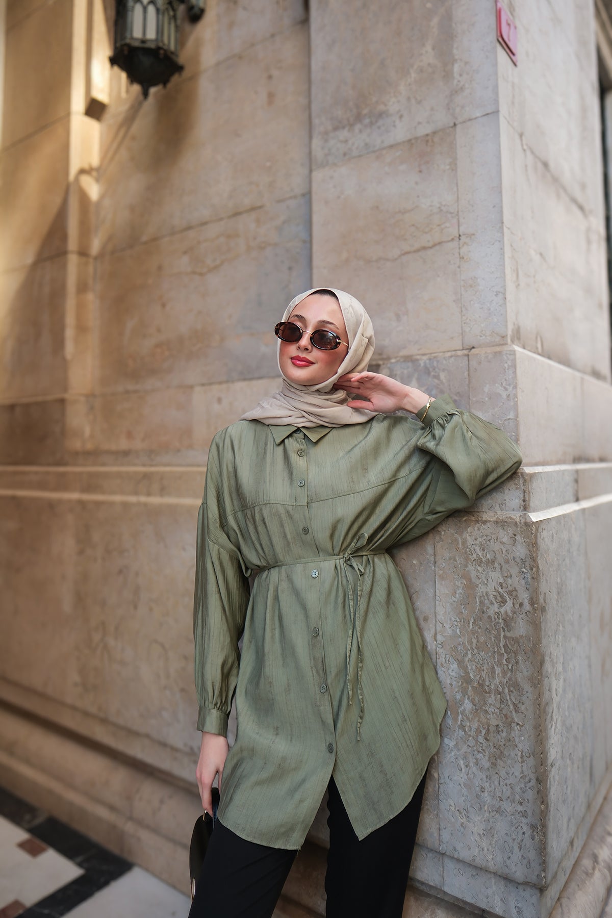 Taupe Shirt with Cape Sleeve and Hidden Buttons
