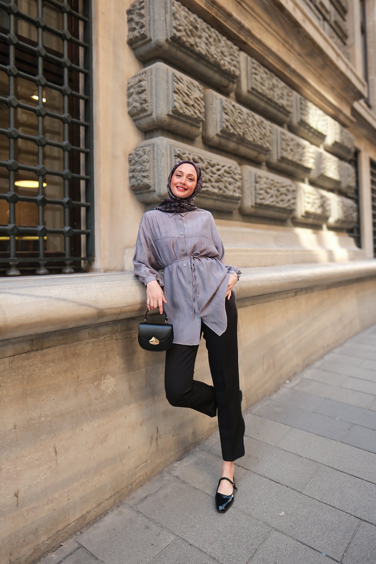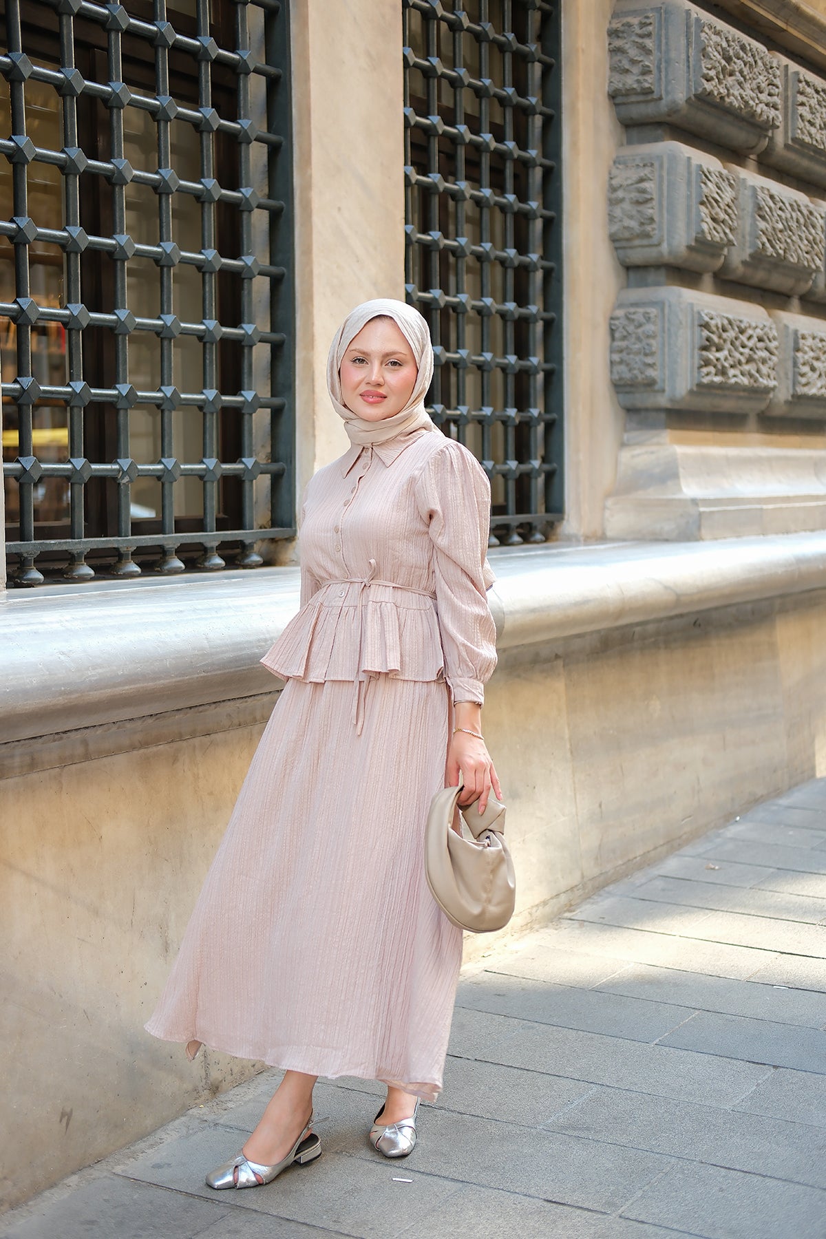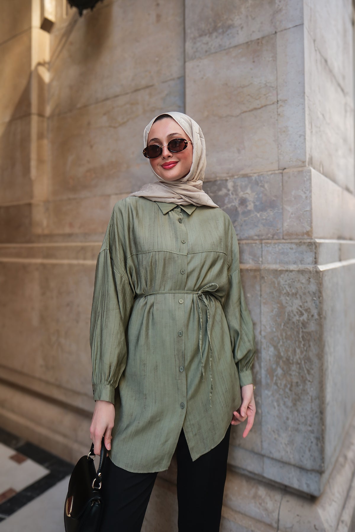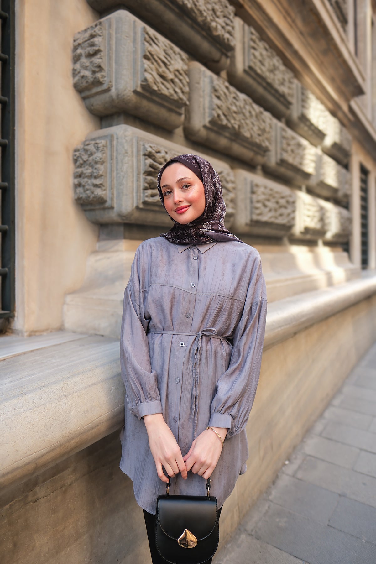 Taupe Shirt with Cape Sleeve and Hidden Buttons