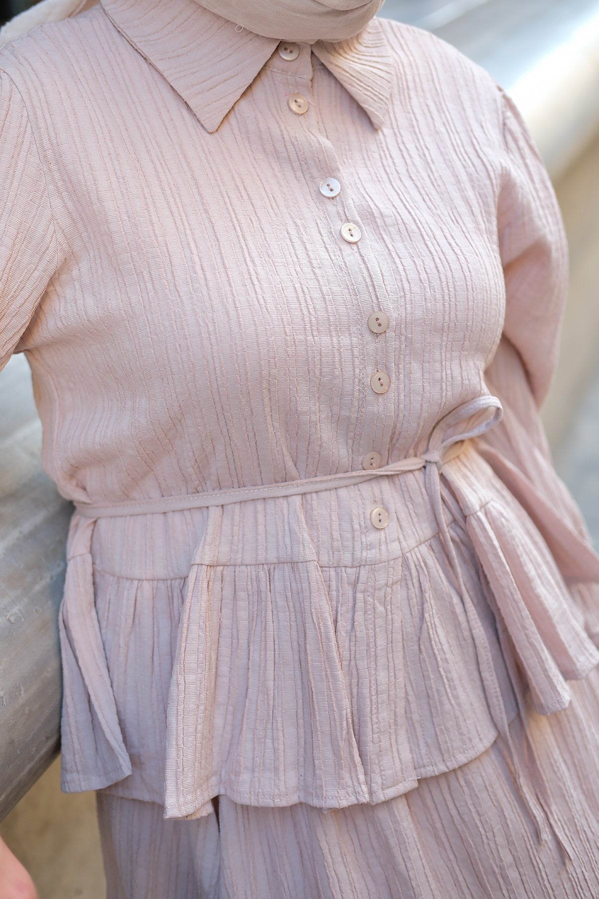 Textured Oversize Shirt - Pink