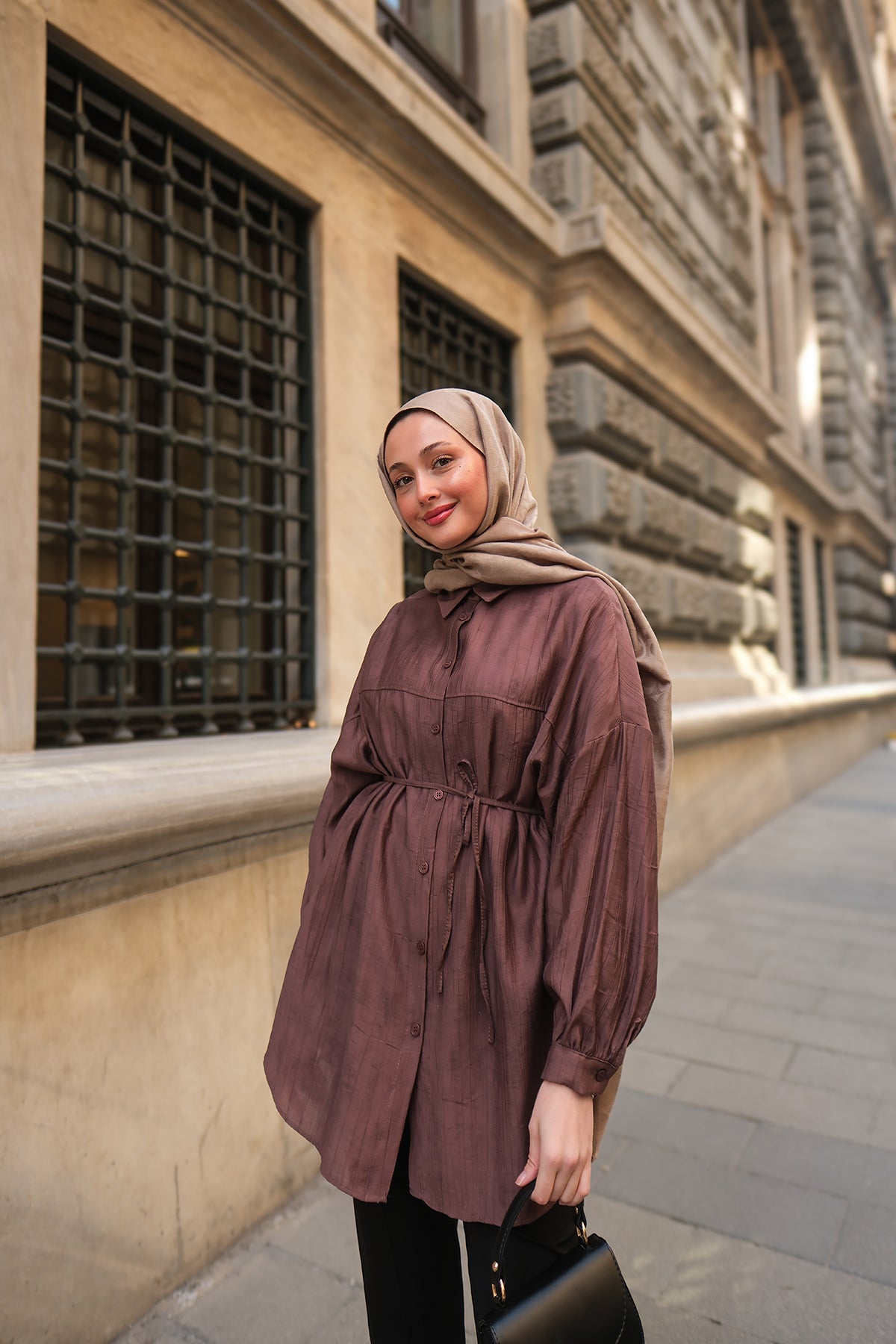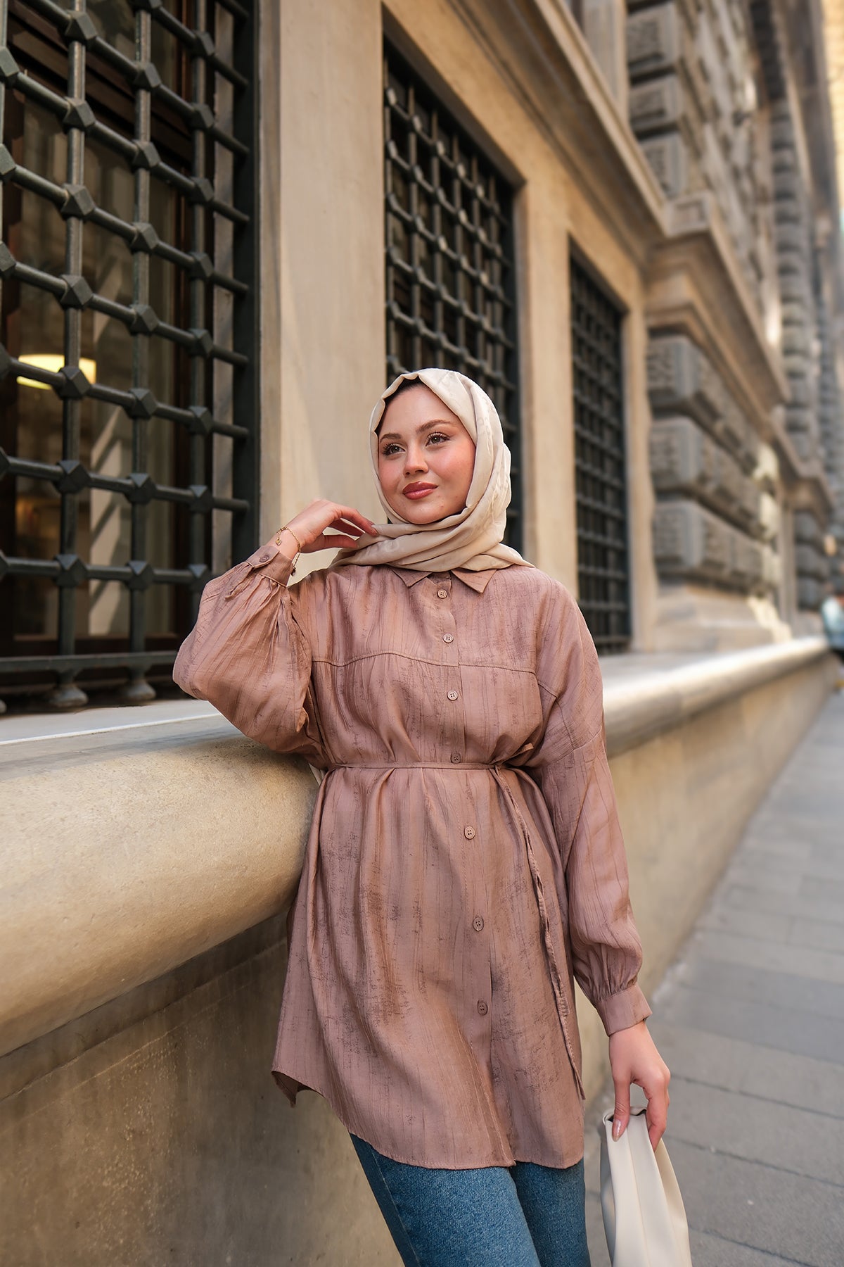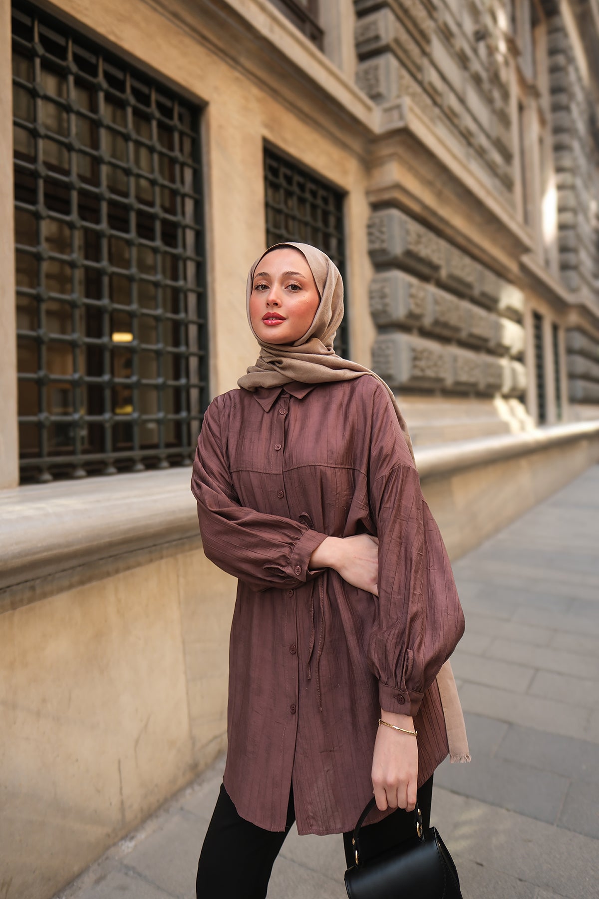 Textured Oversized Shirt in Mink