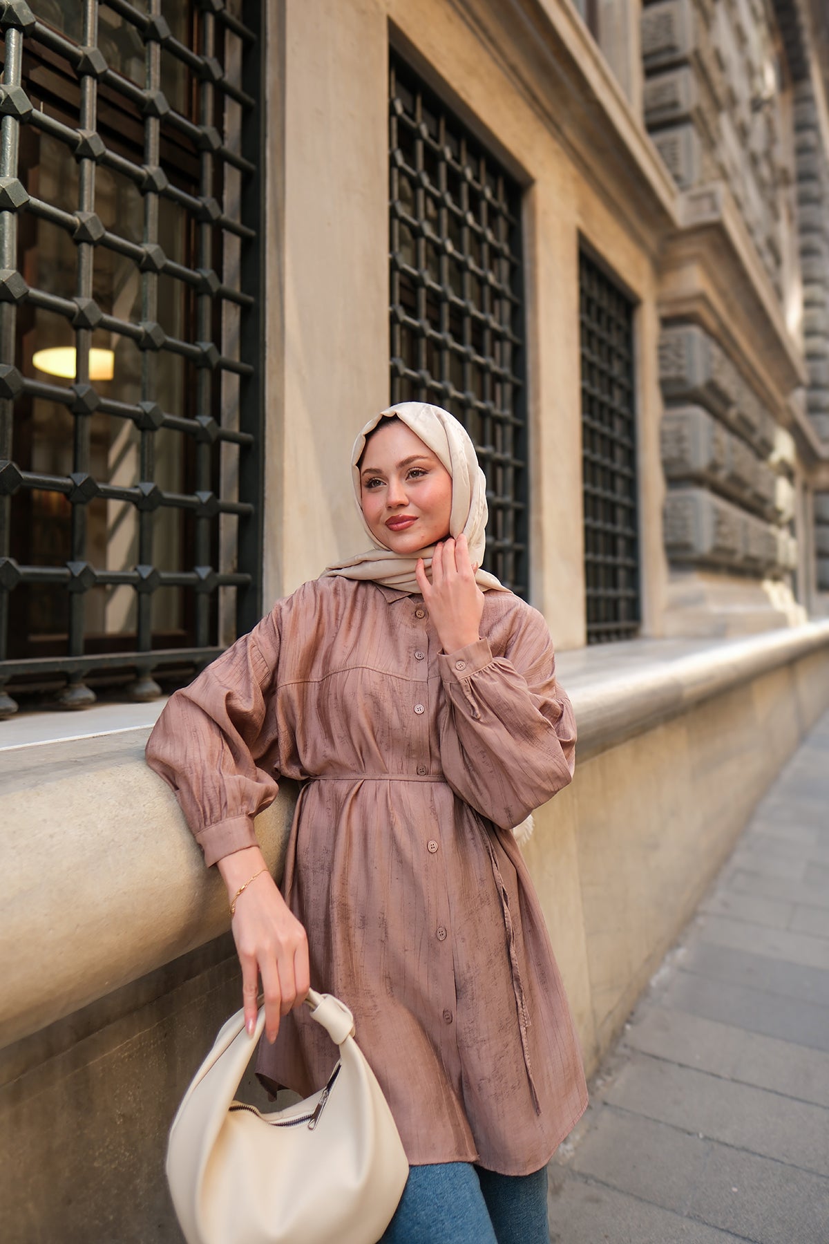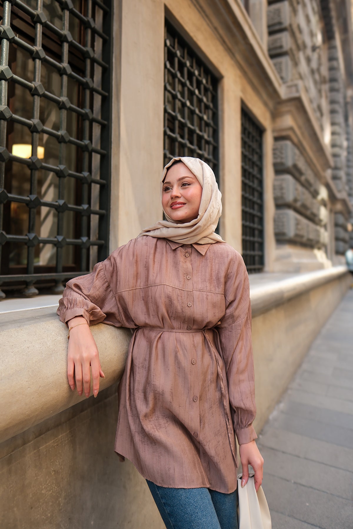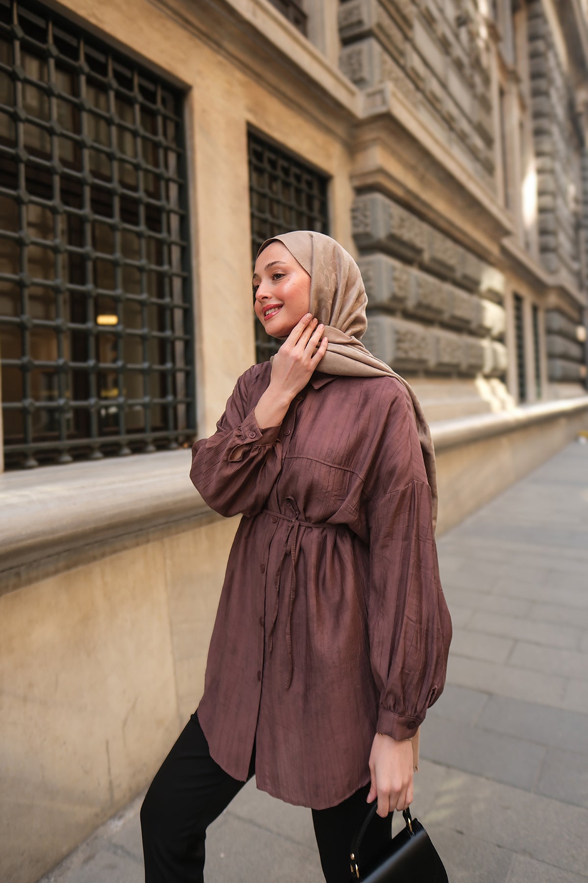 Textured Oversized Shirt in Mink