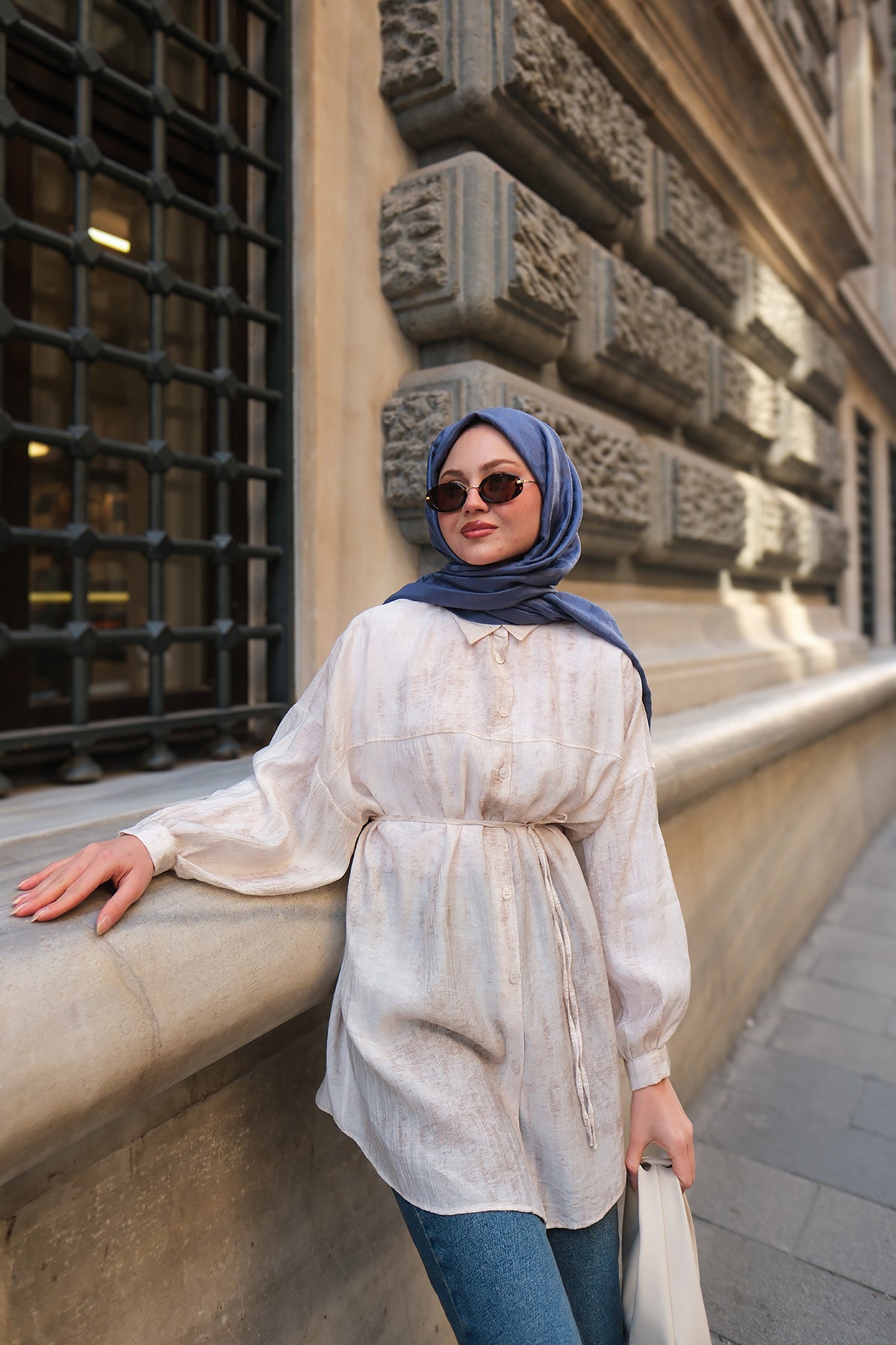 Textured Oversized Shirt in Navy