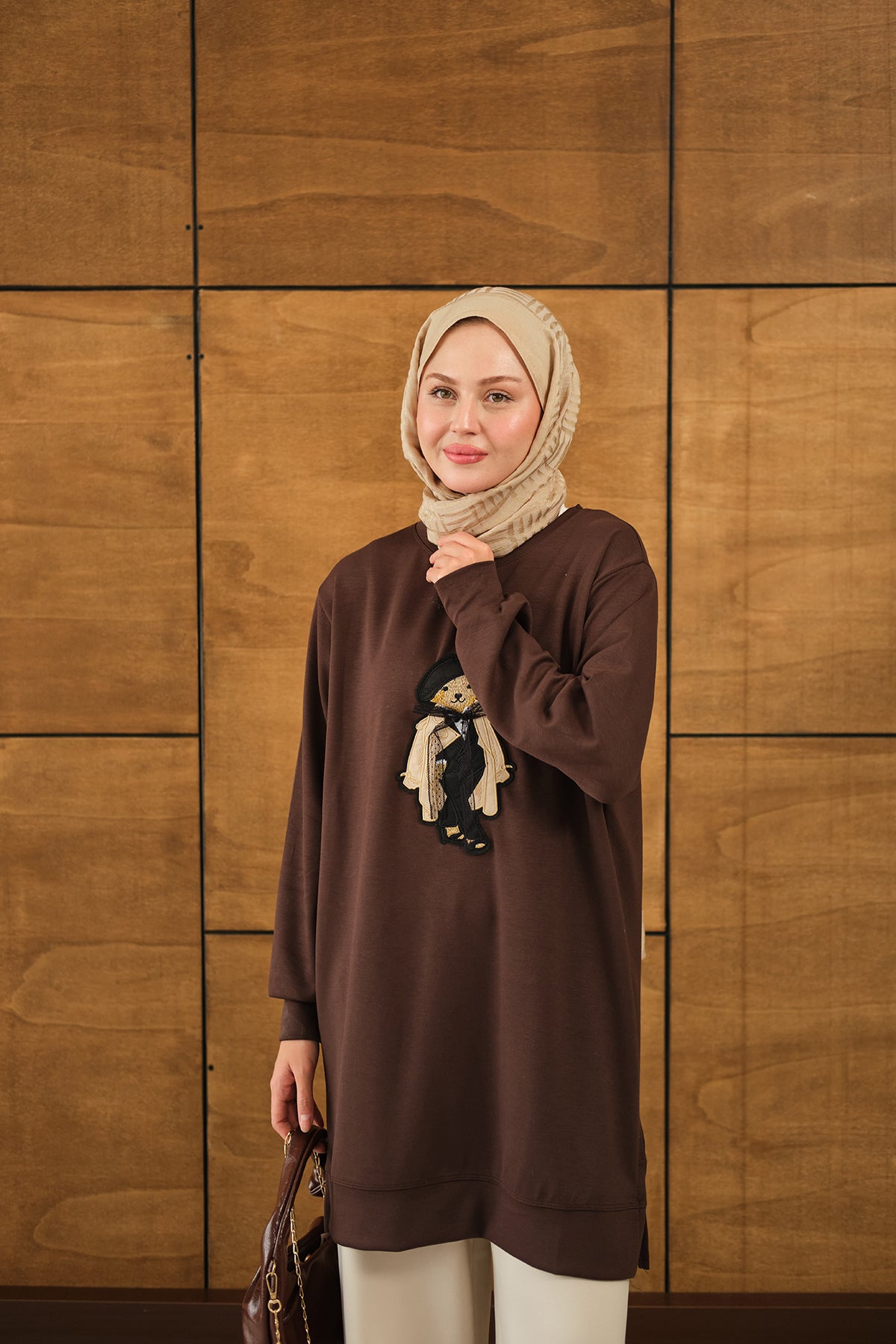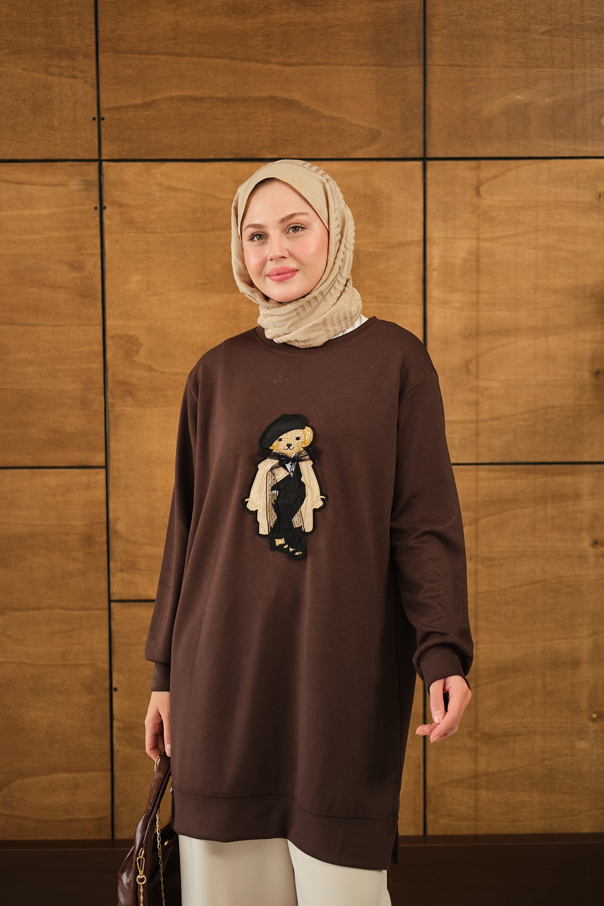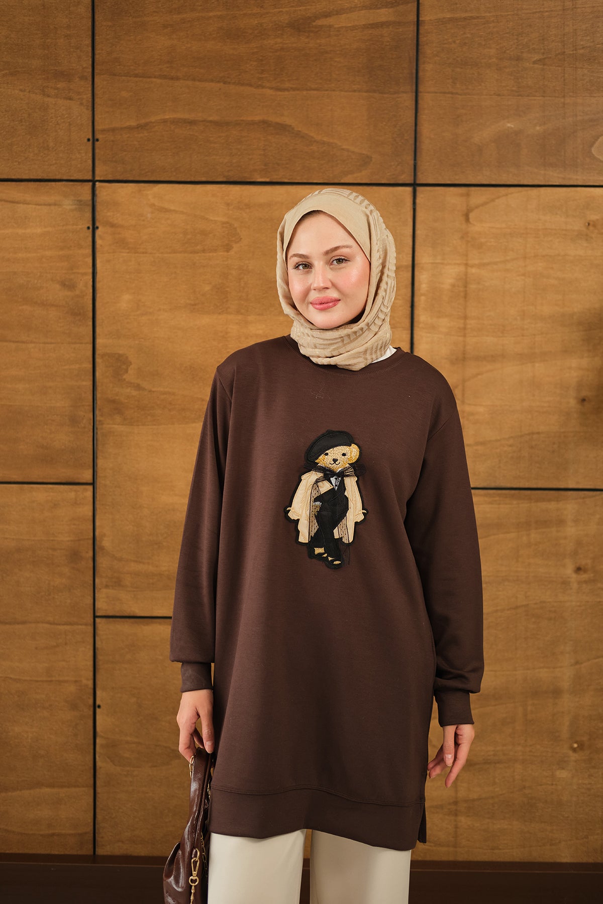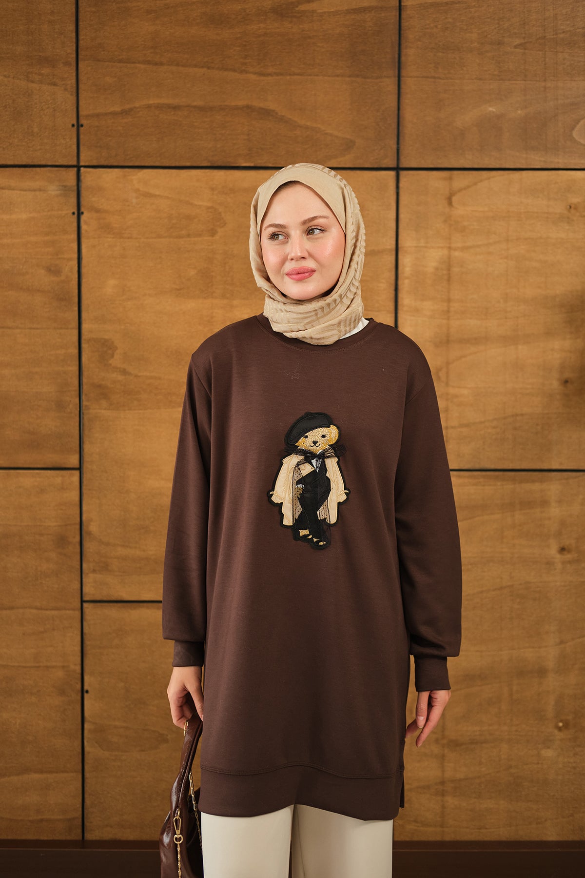 Teddy Bear Detail Tunic - Brown