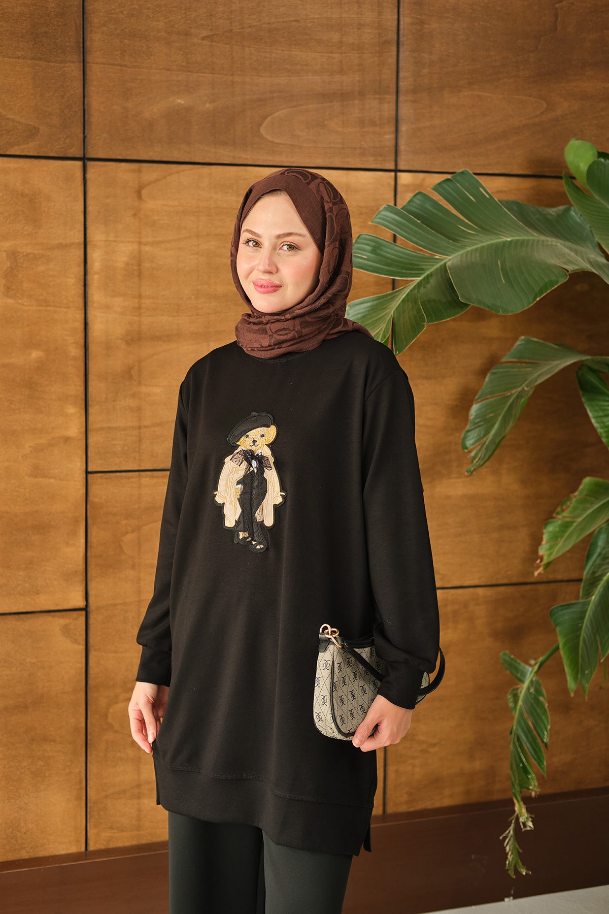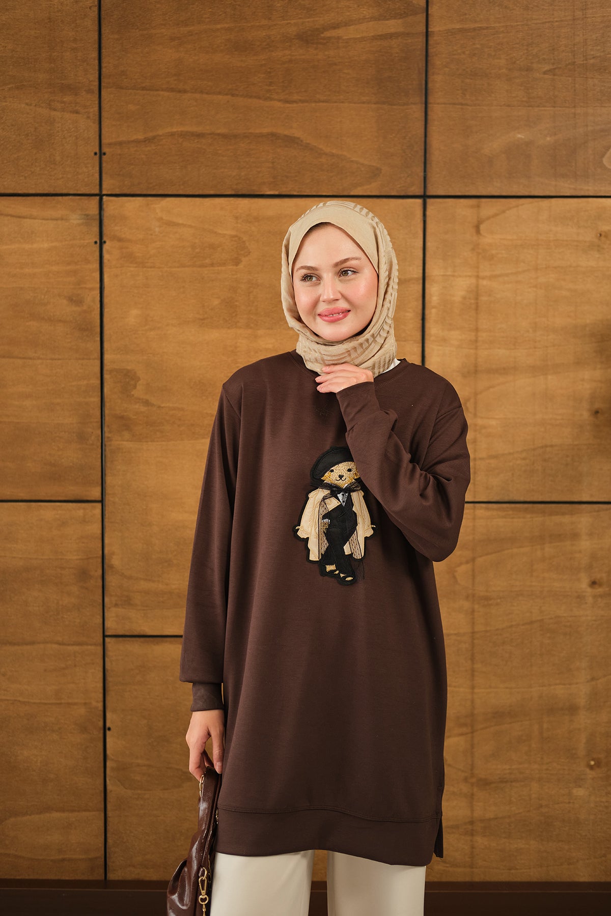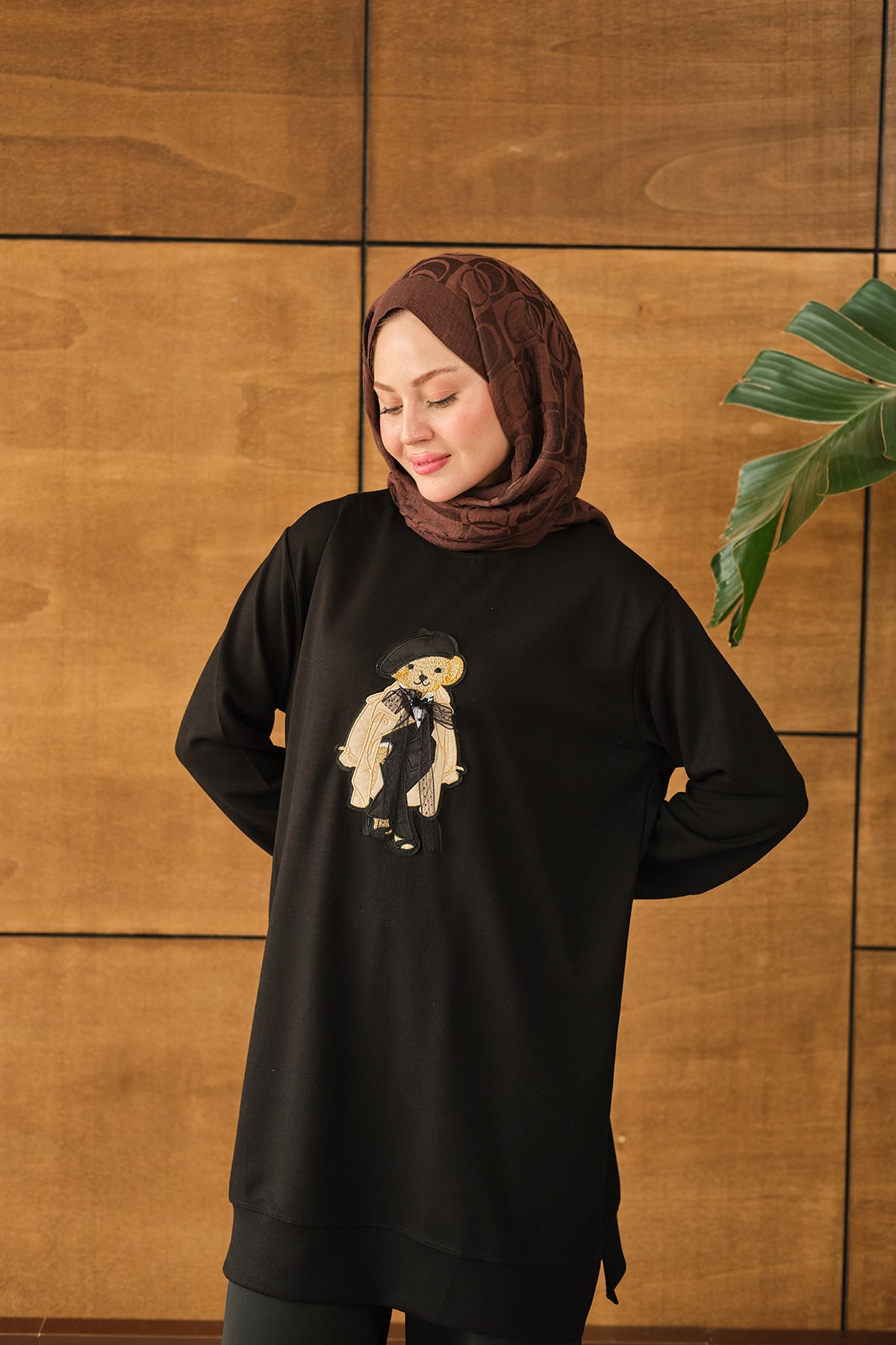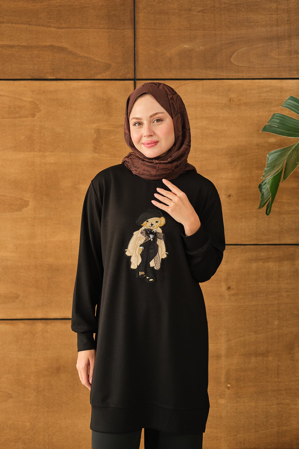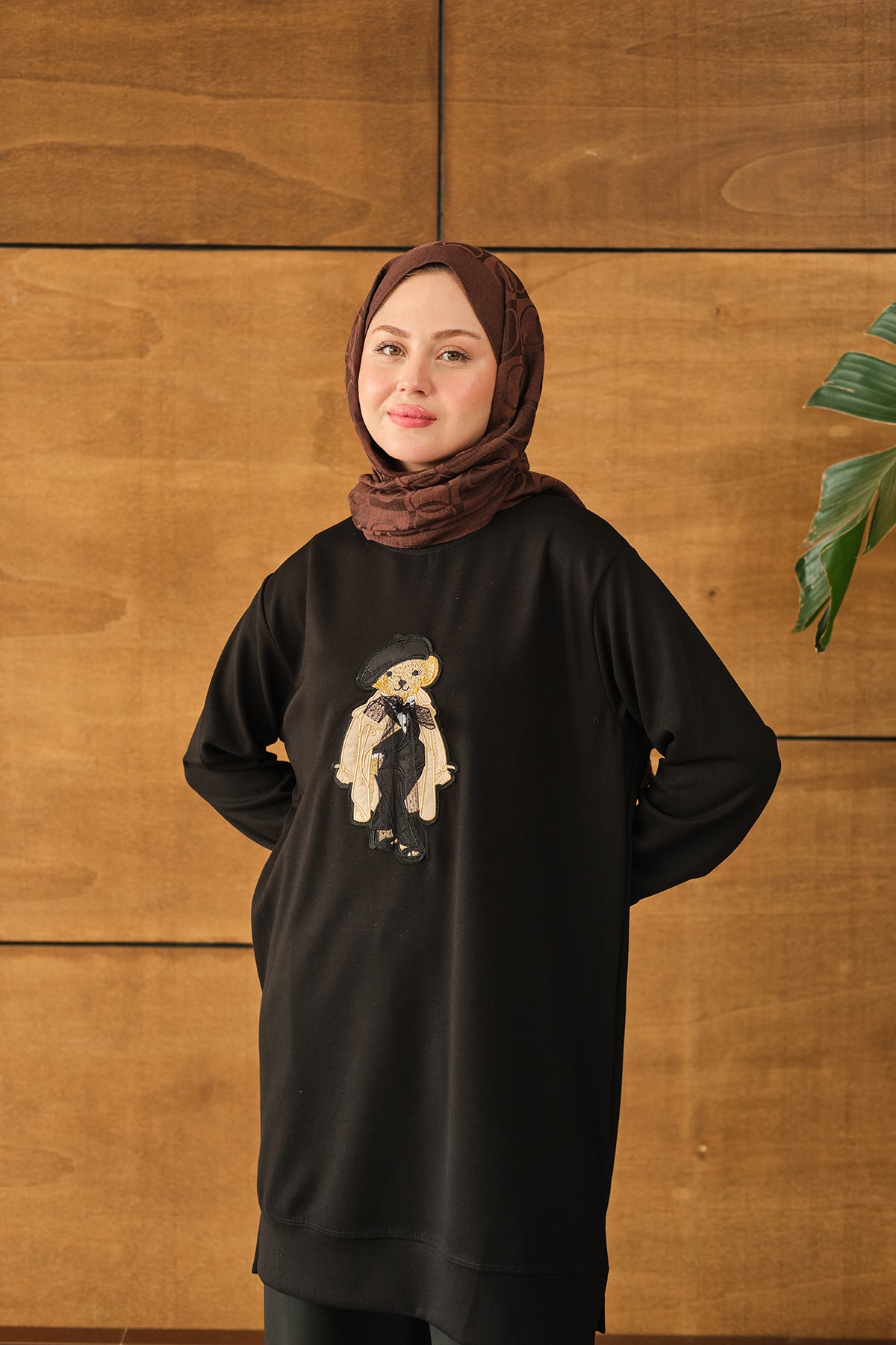 Teddy Bear Detail Tunic - Brown