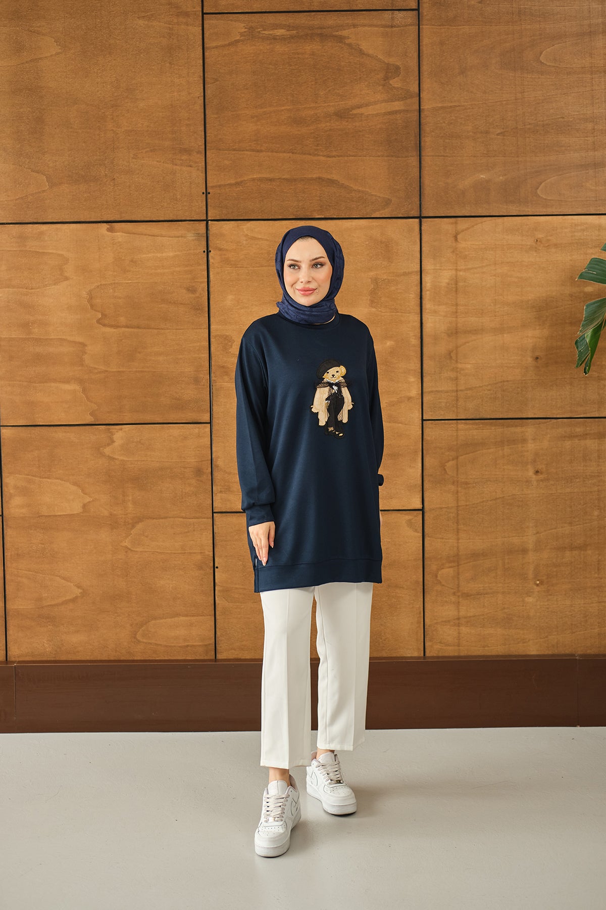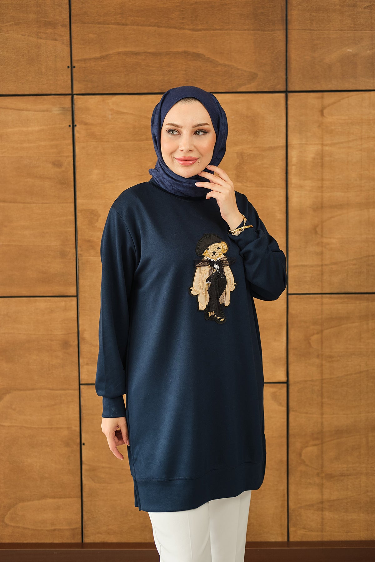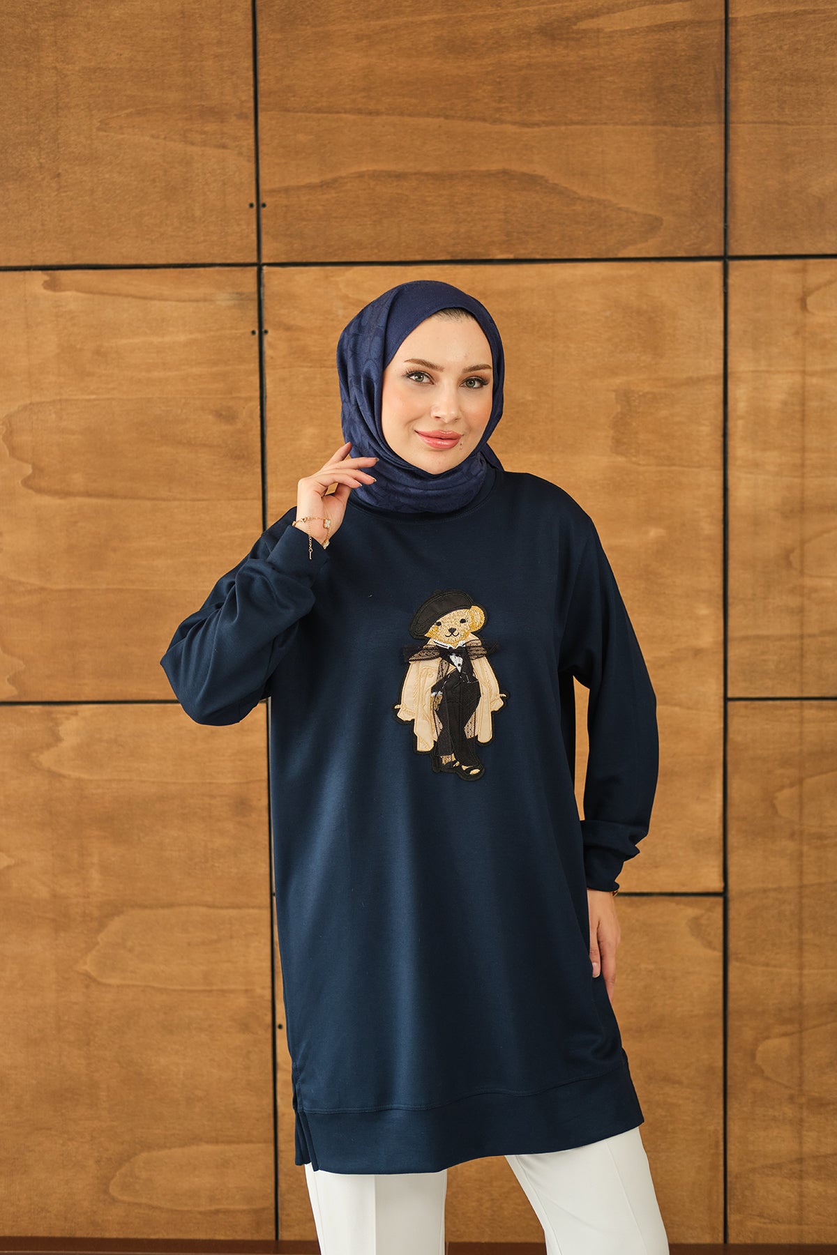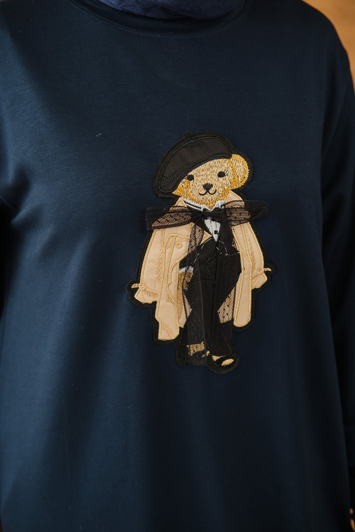 Teddy Bear Detail Tunic - Navy
