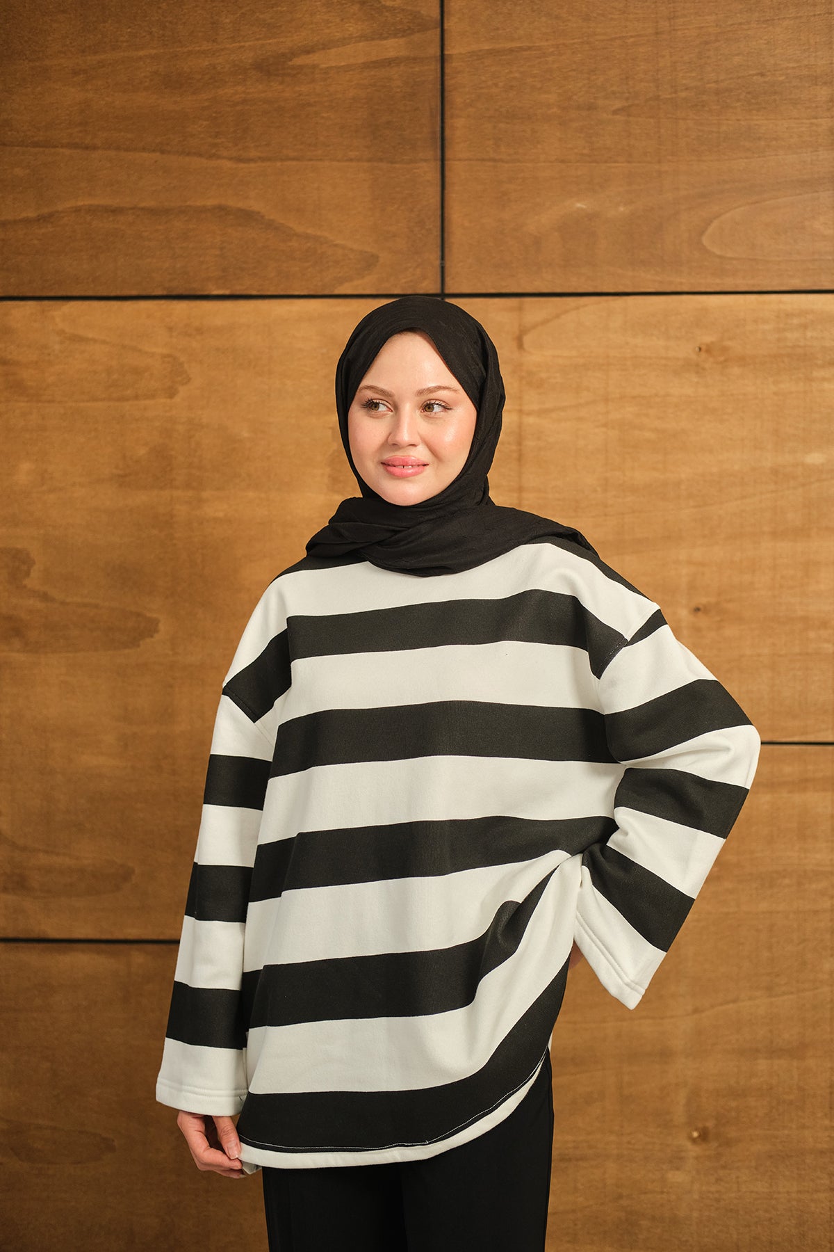 Thick Striped Sweatshirt - Black