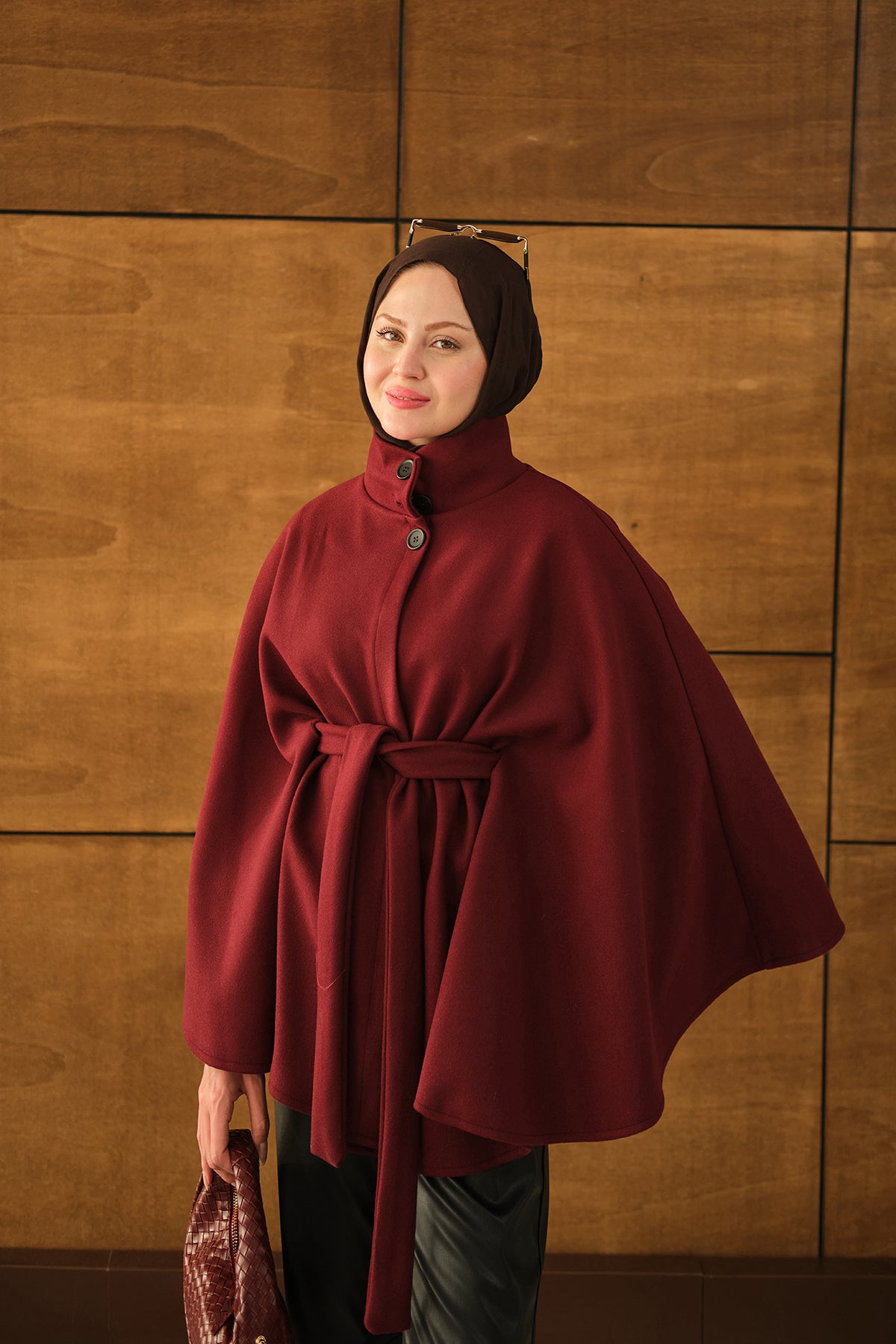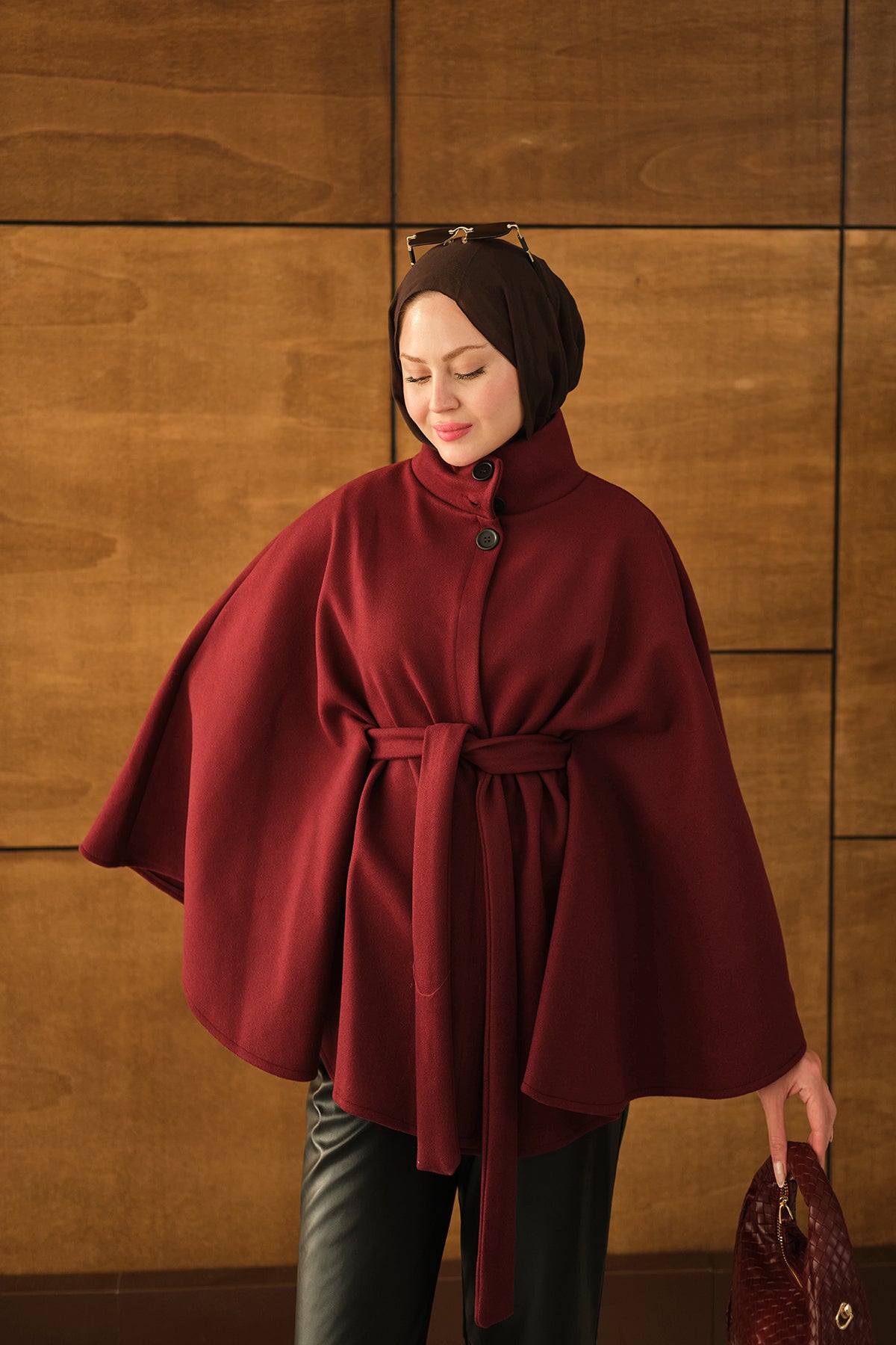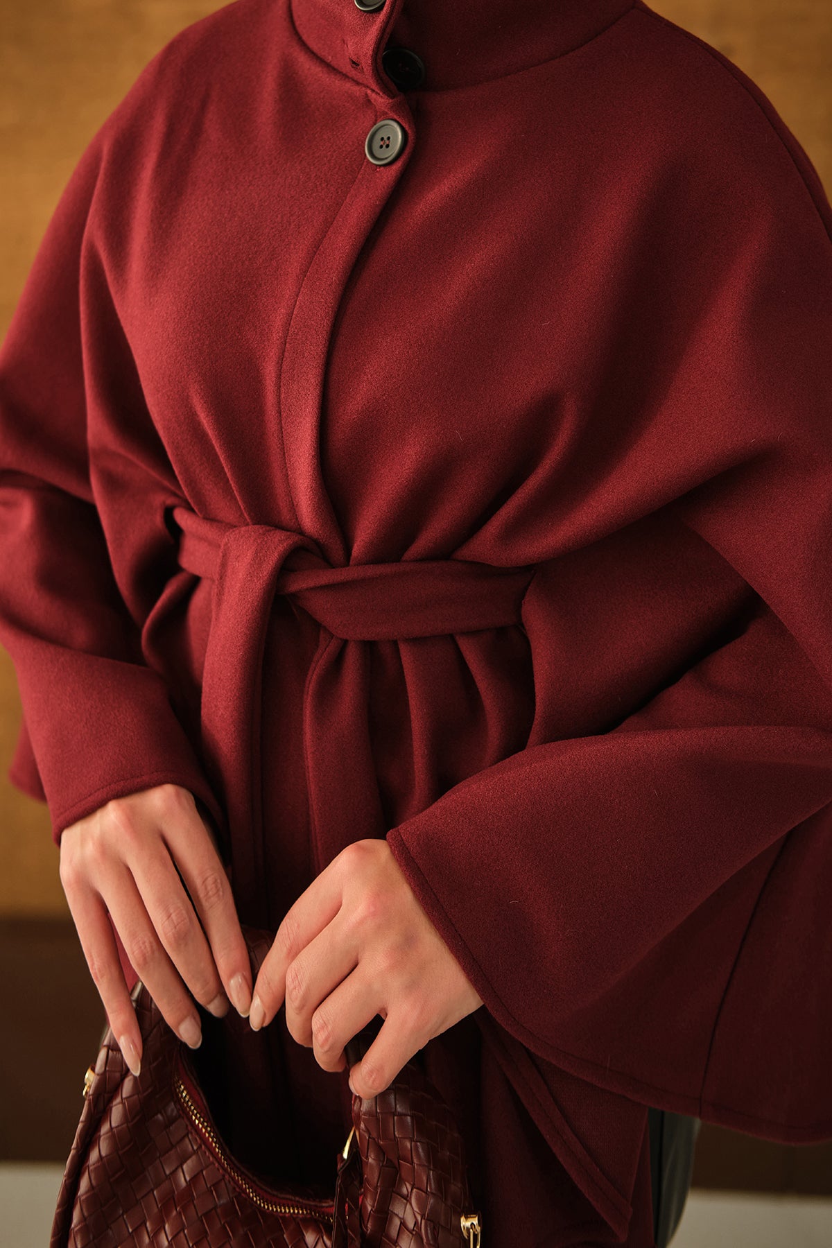 Üç Düğme Detay Panço Bordo