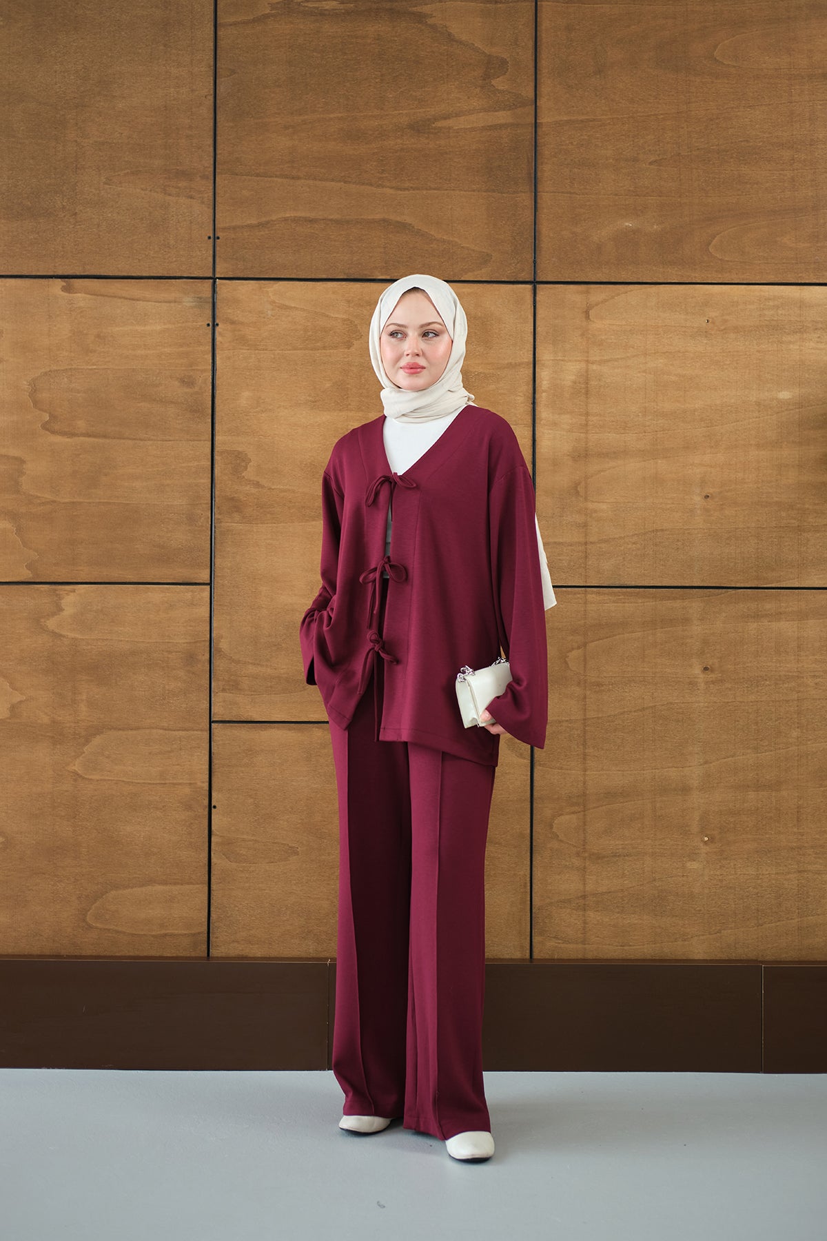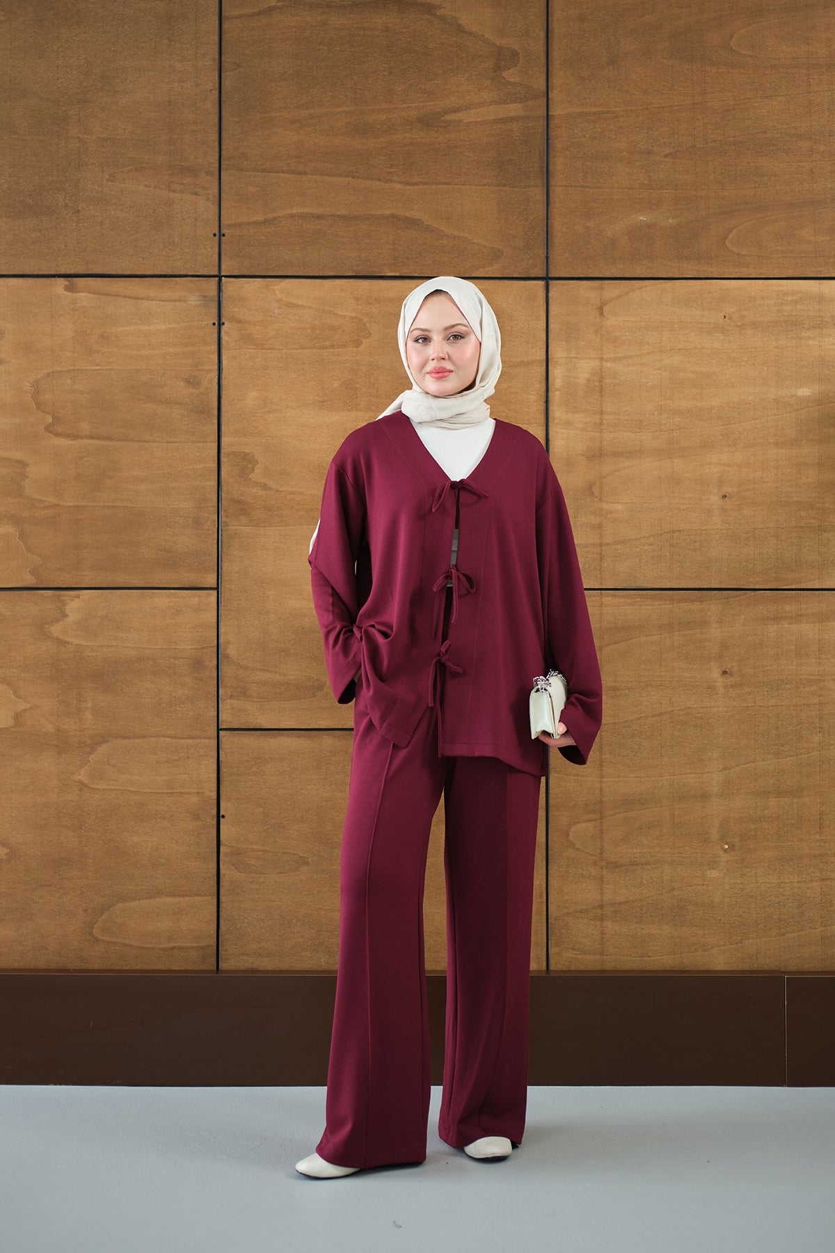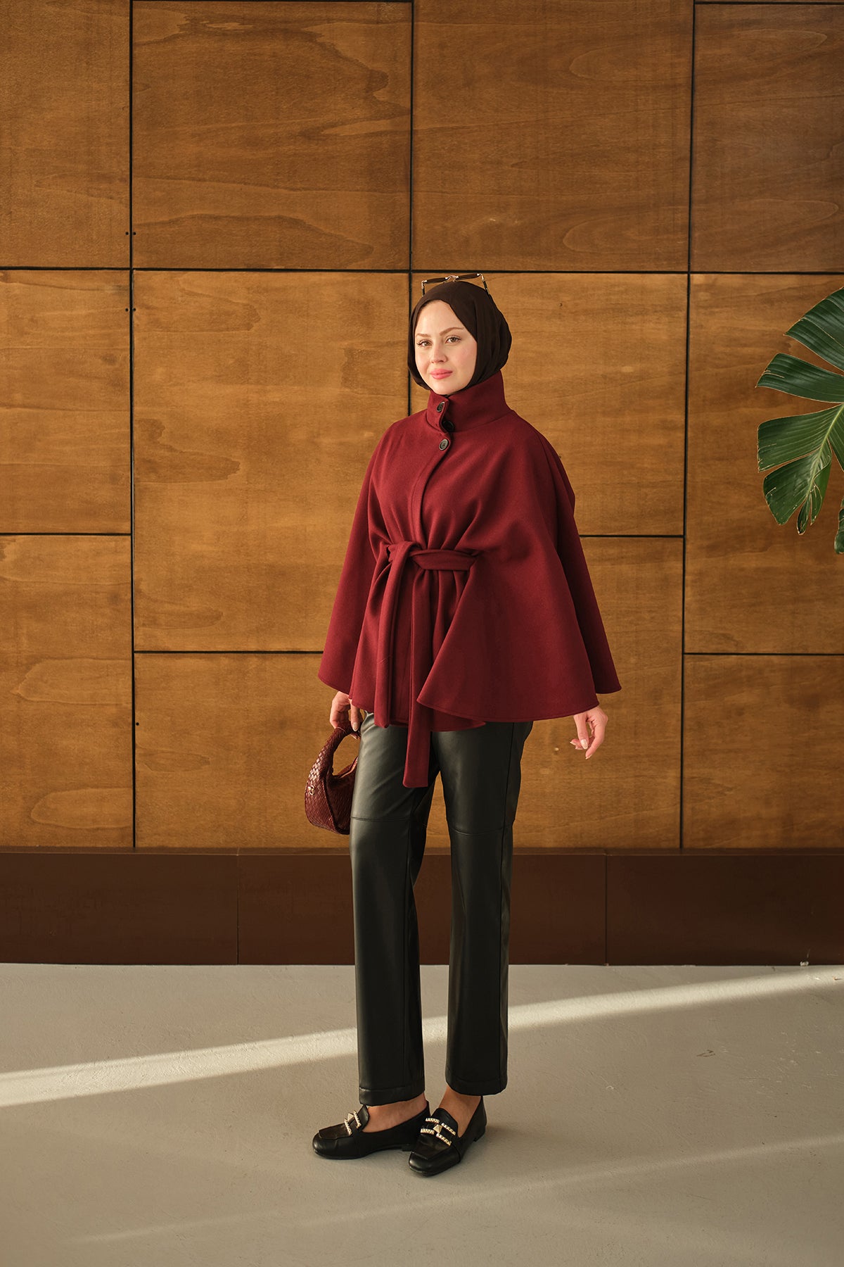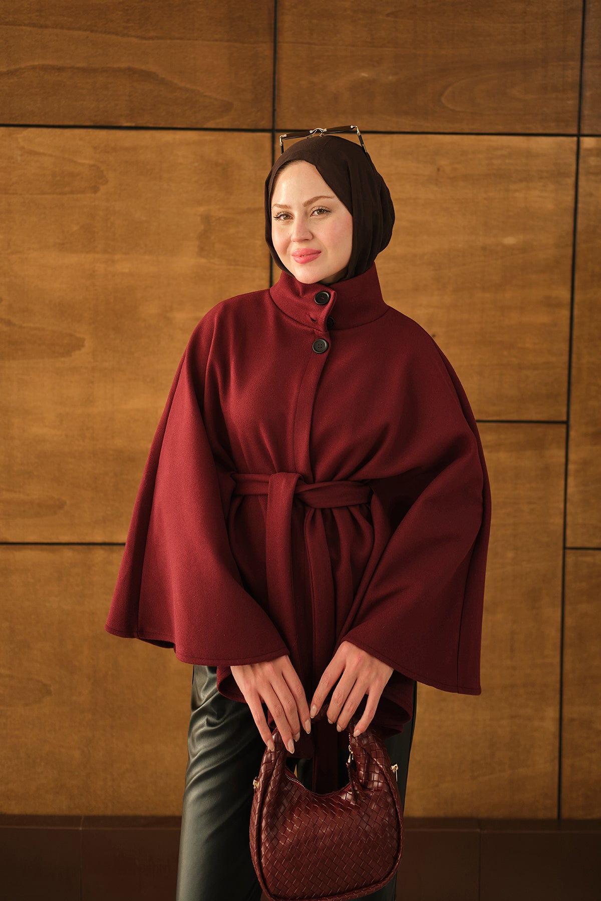 Üç Düğme Detay Panço Bordo