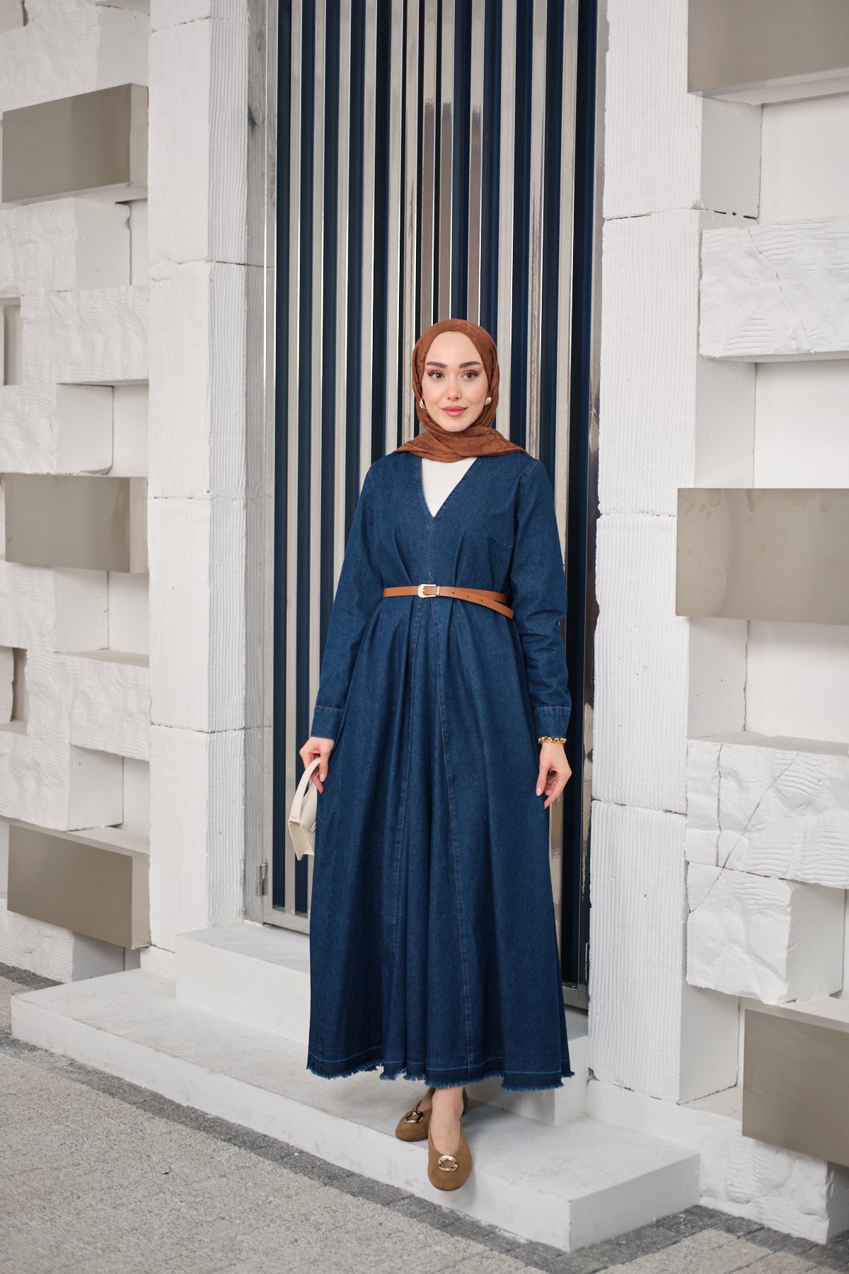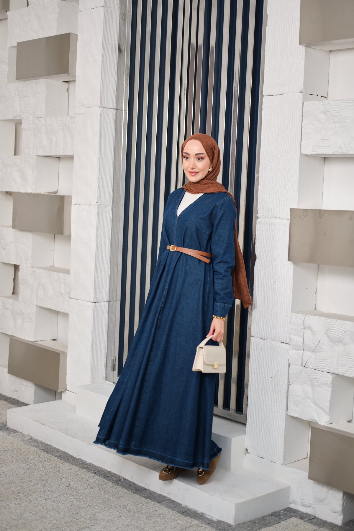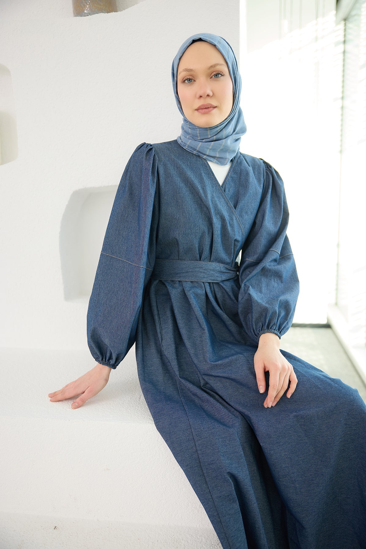 Valencia Dark Blue Denim Set with Belted Skirt