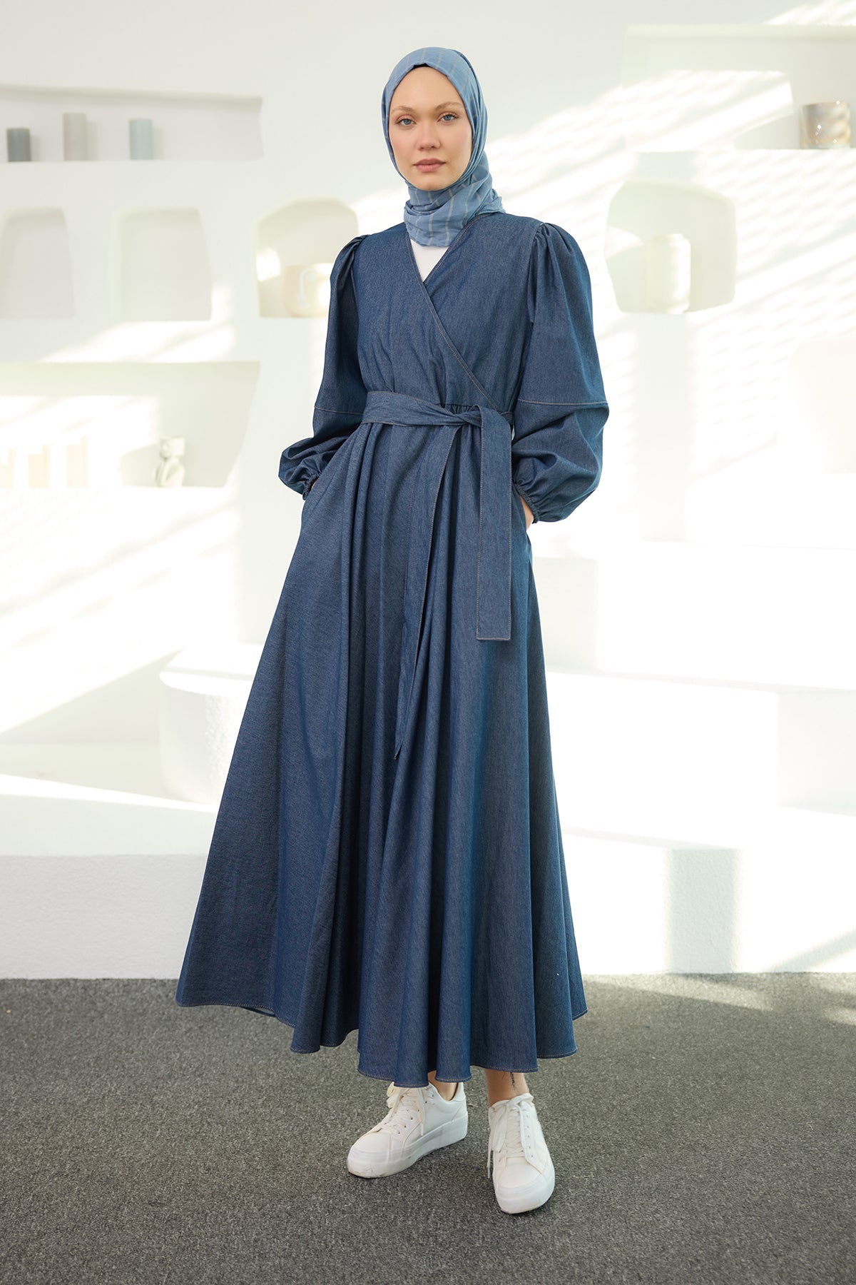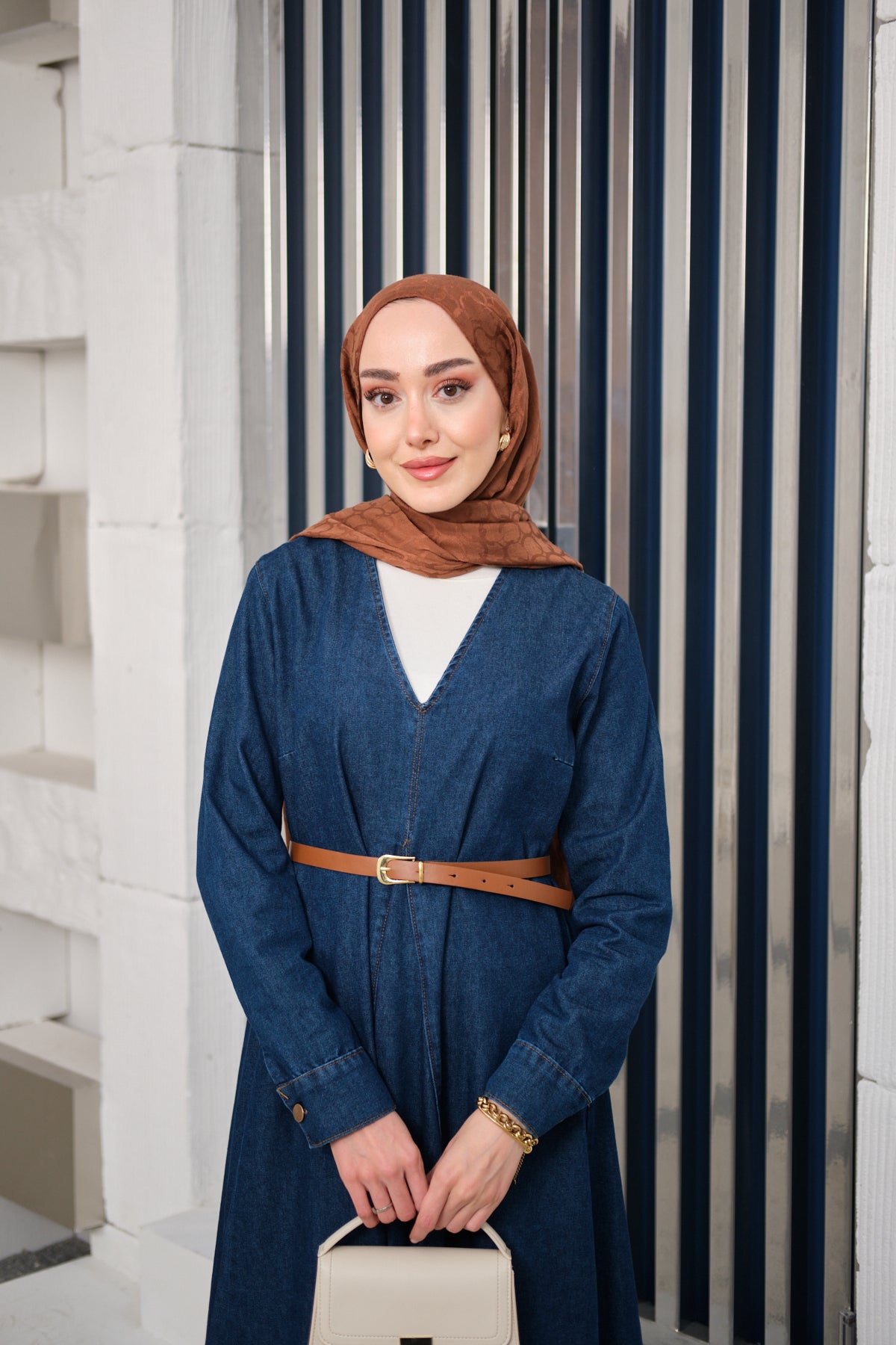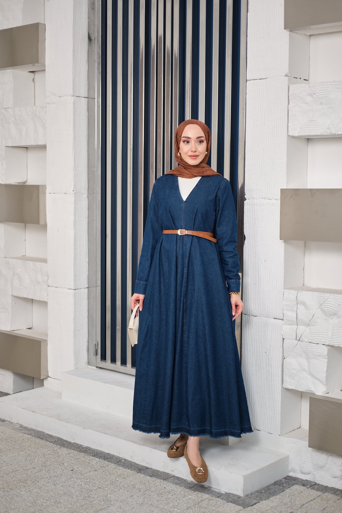Valencia Dark Blue Denim Set with Belted Skirt