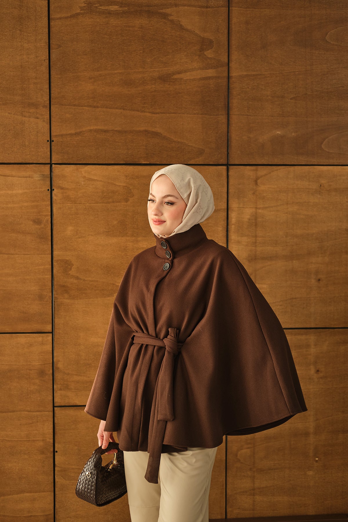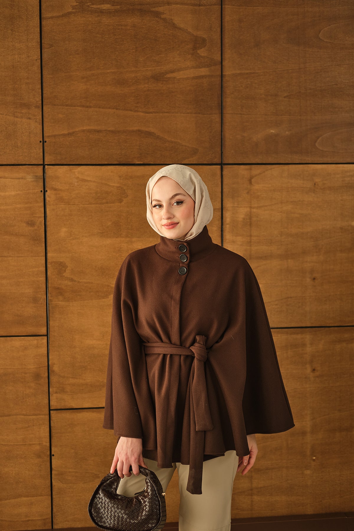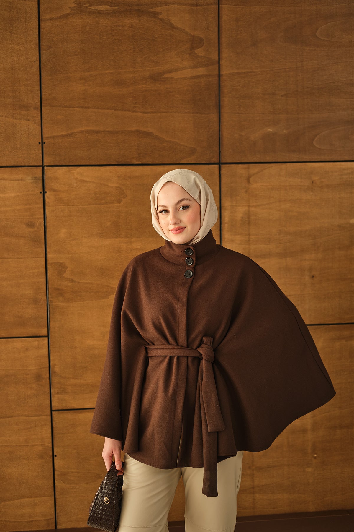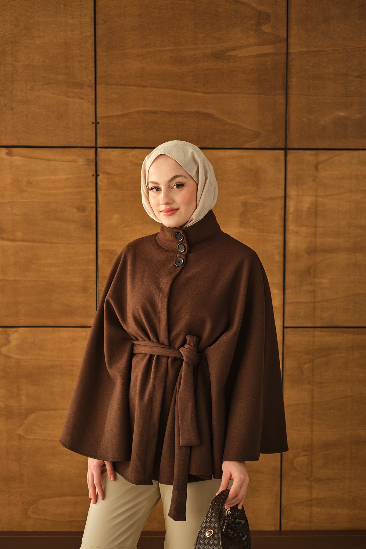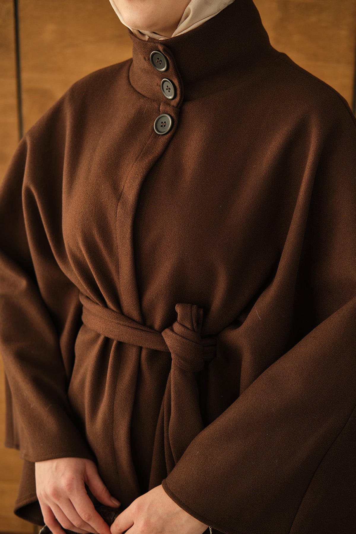 Üç Düğme Detay Panço Kahverengi