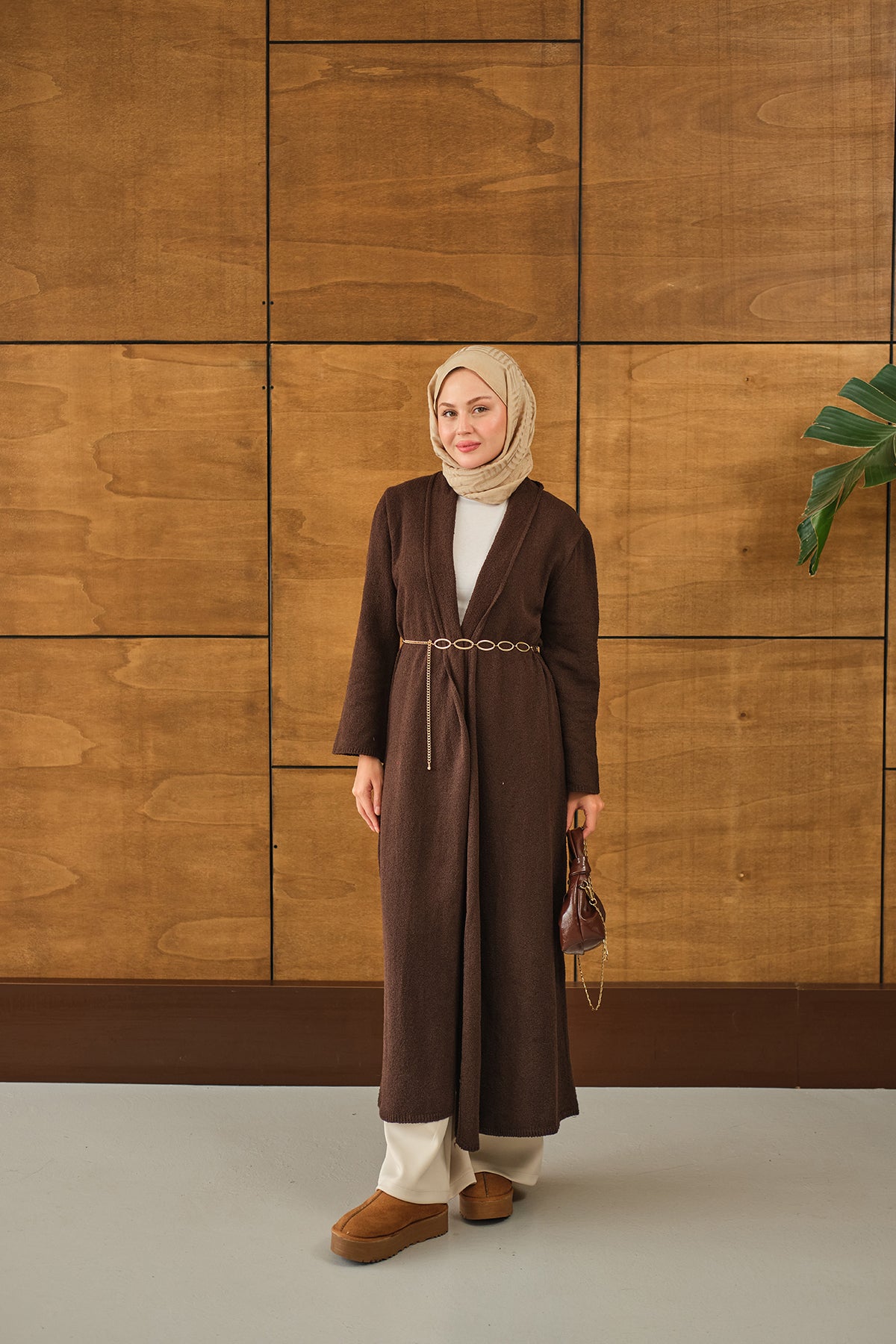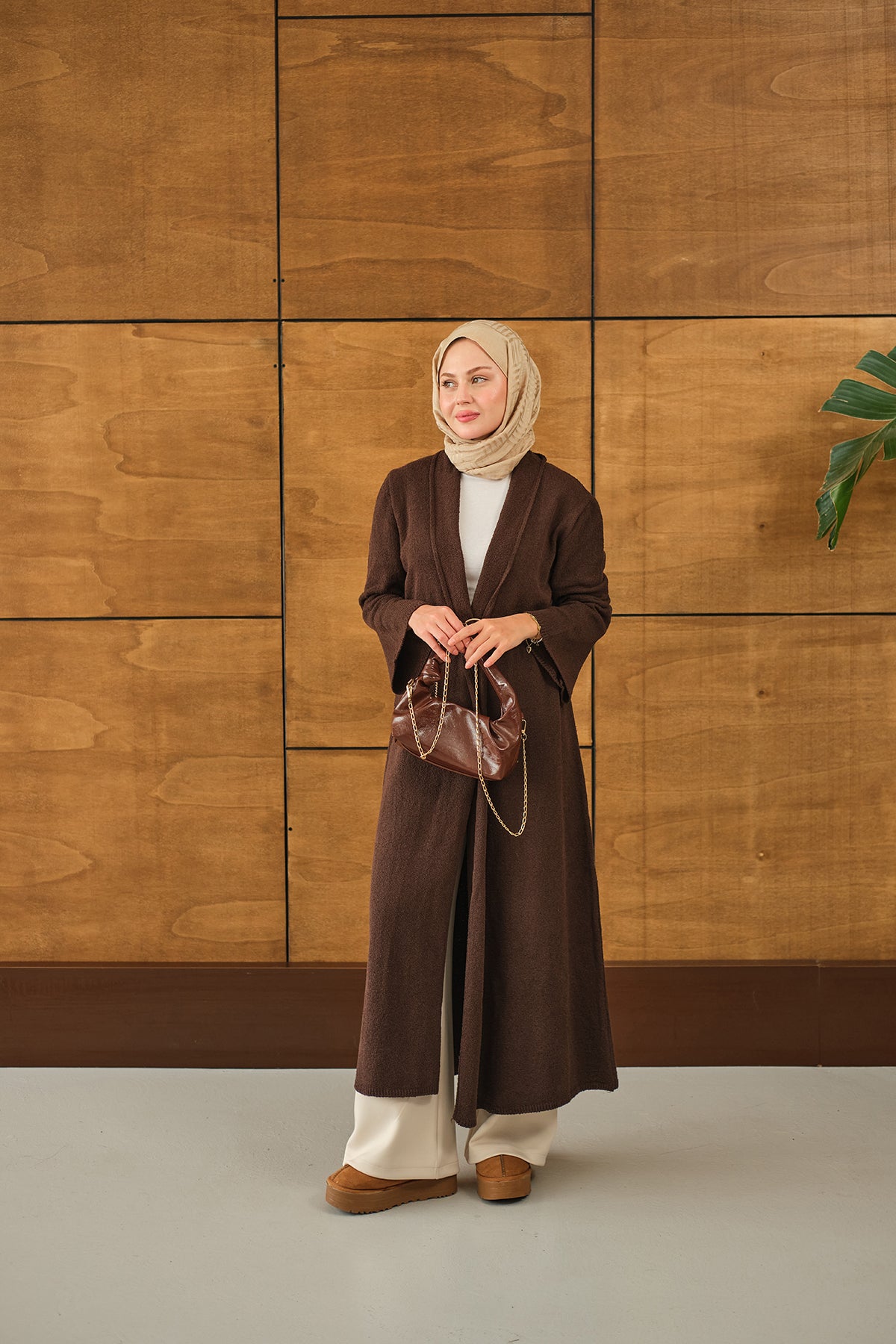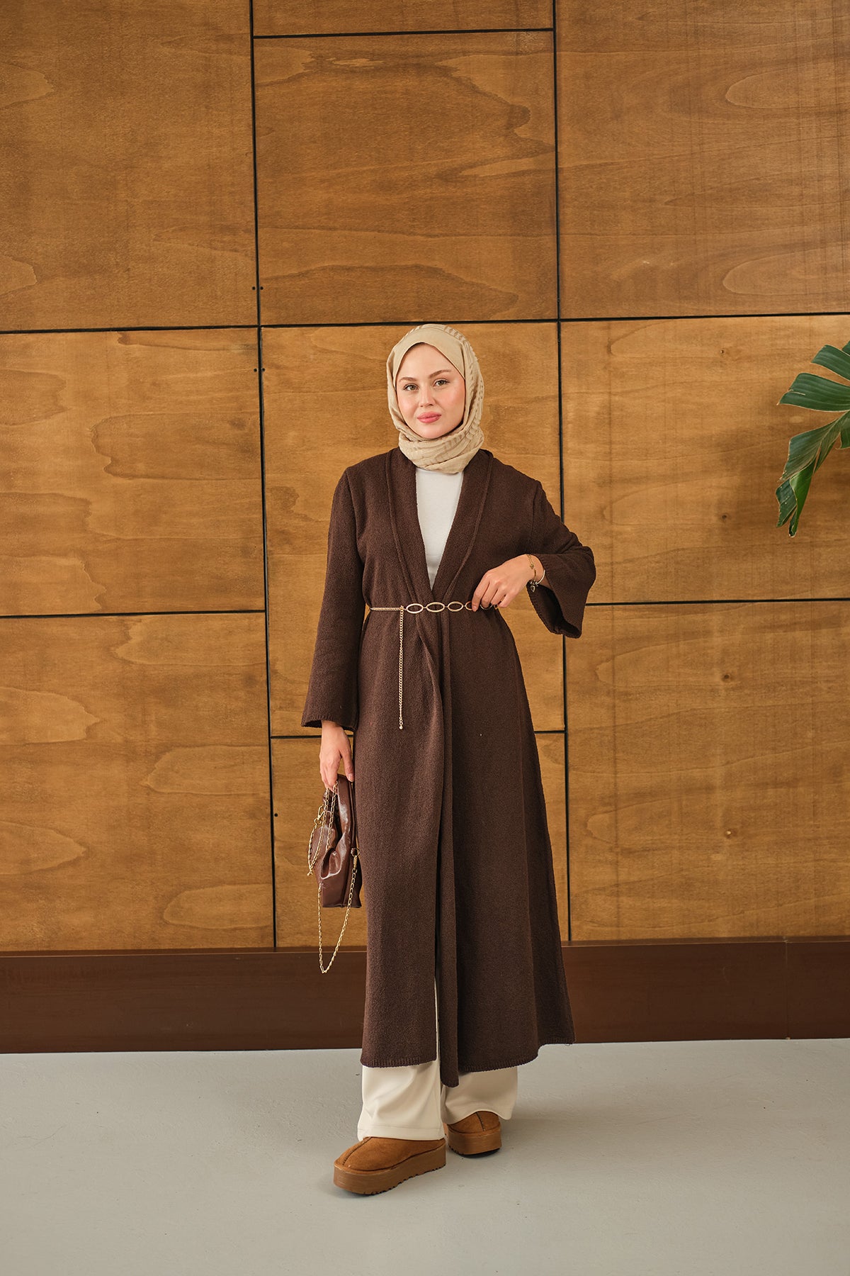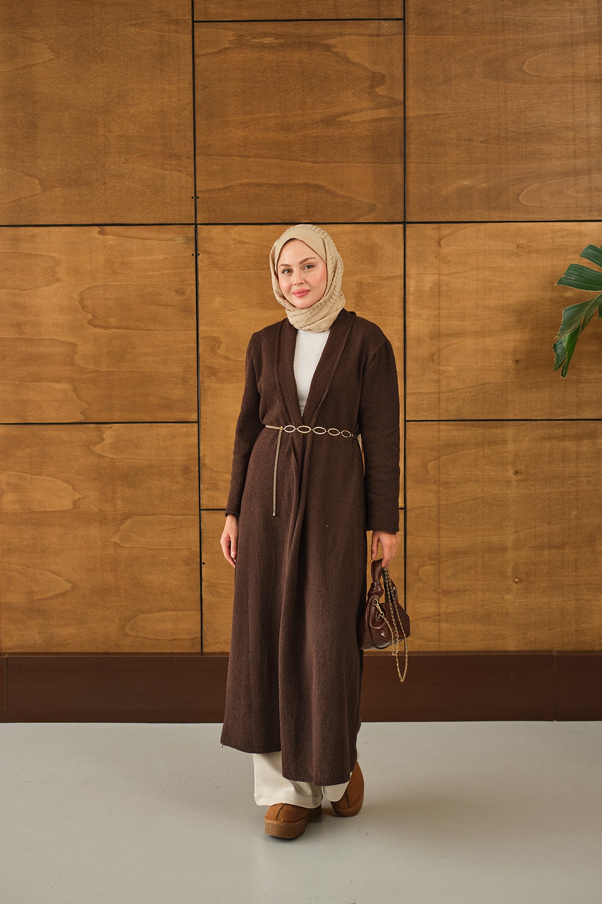 Uzun Triko Hırka Kahverengi