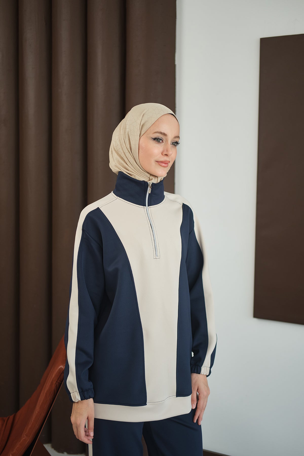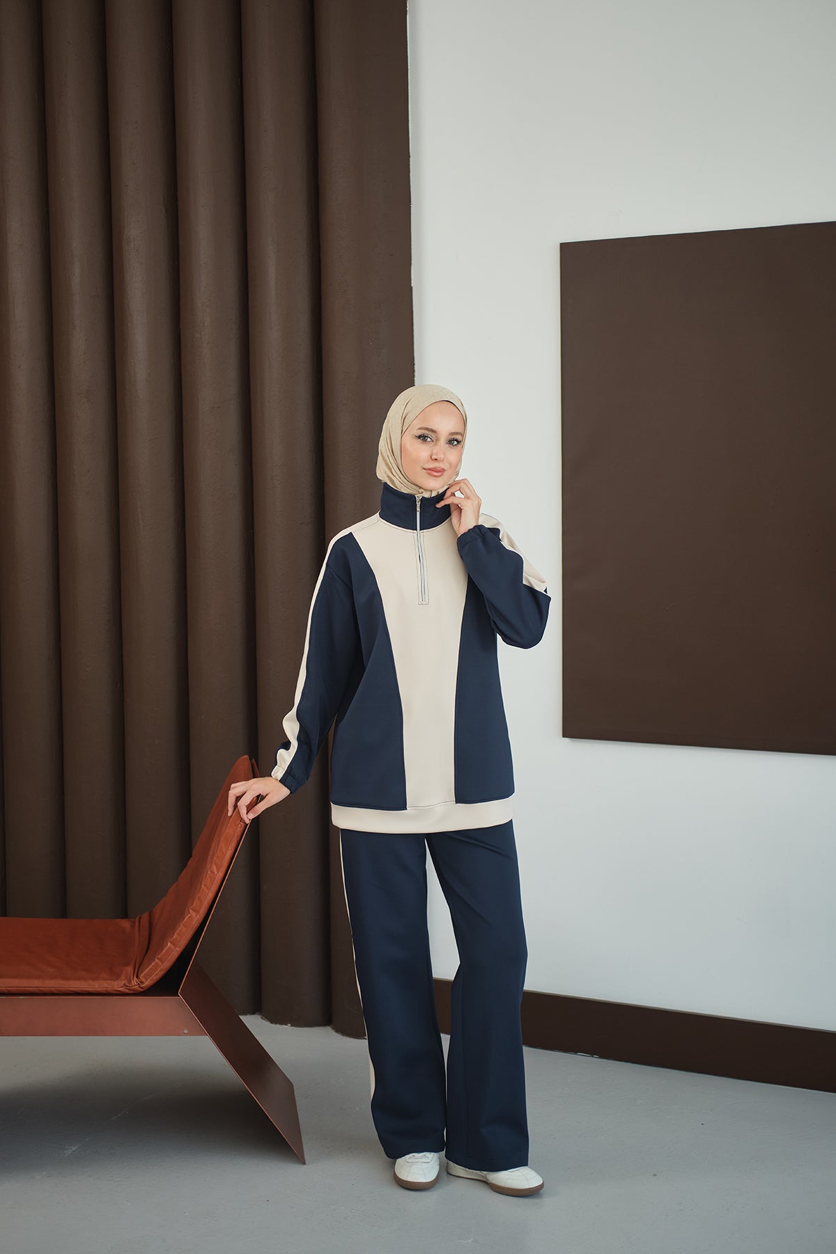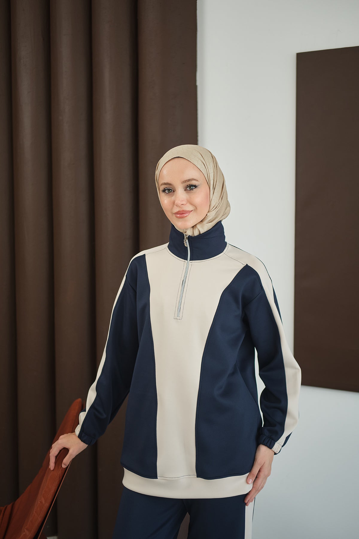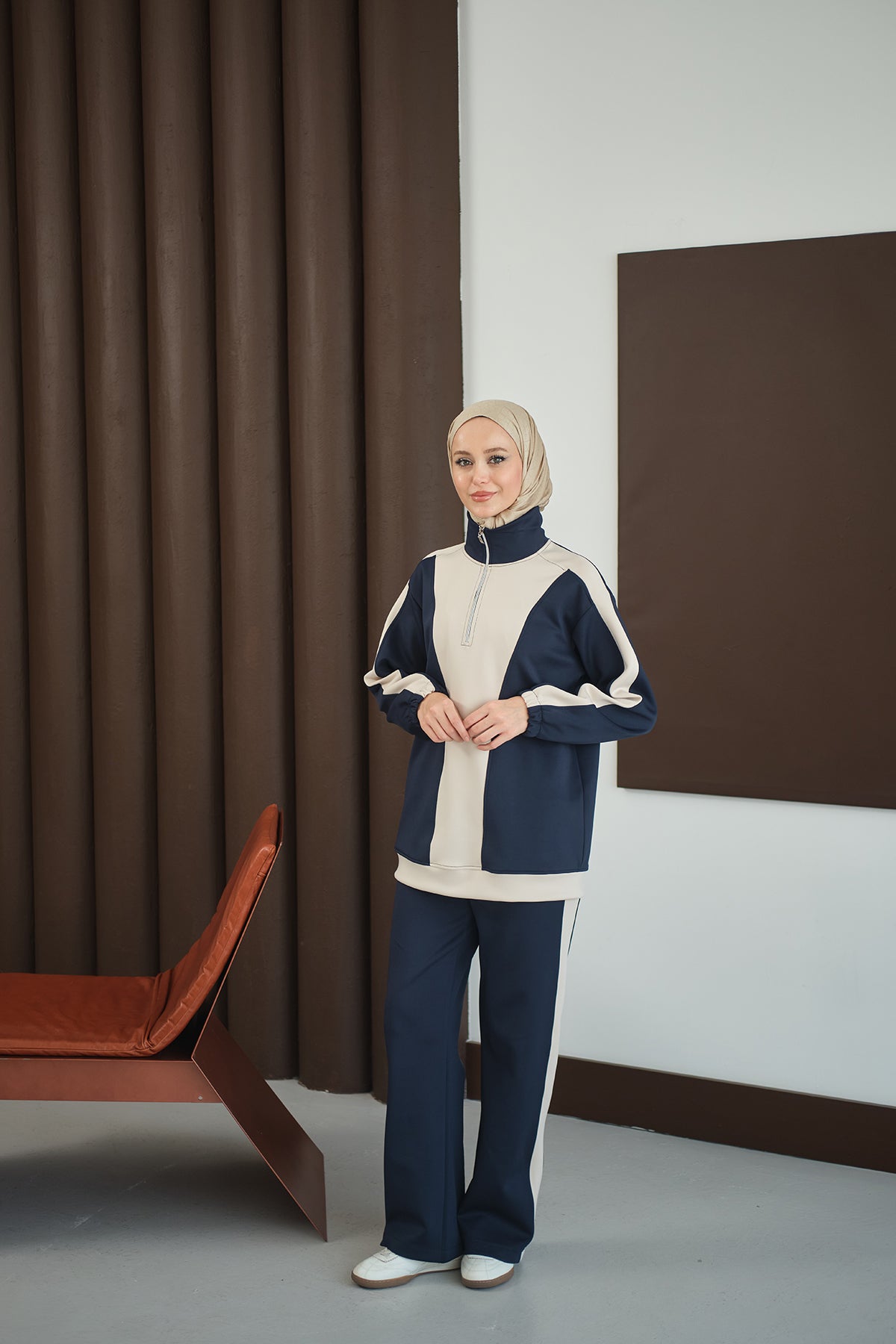 Two-Tone Zipper Detail Set - Navy