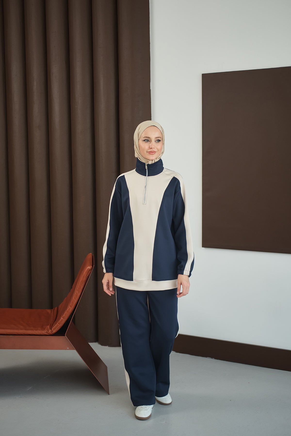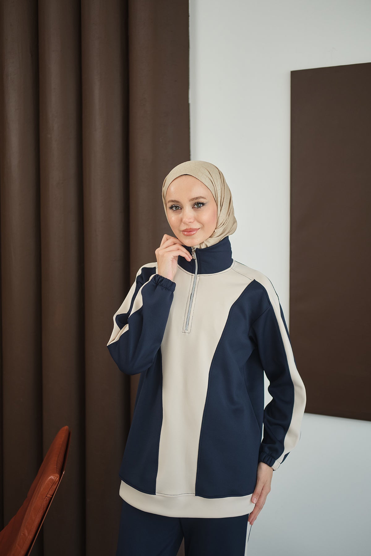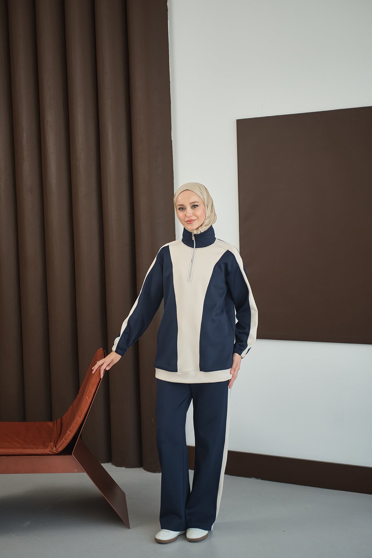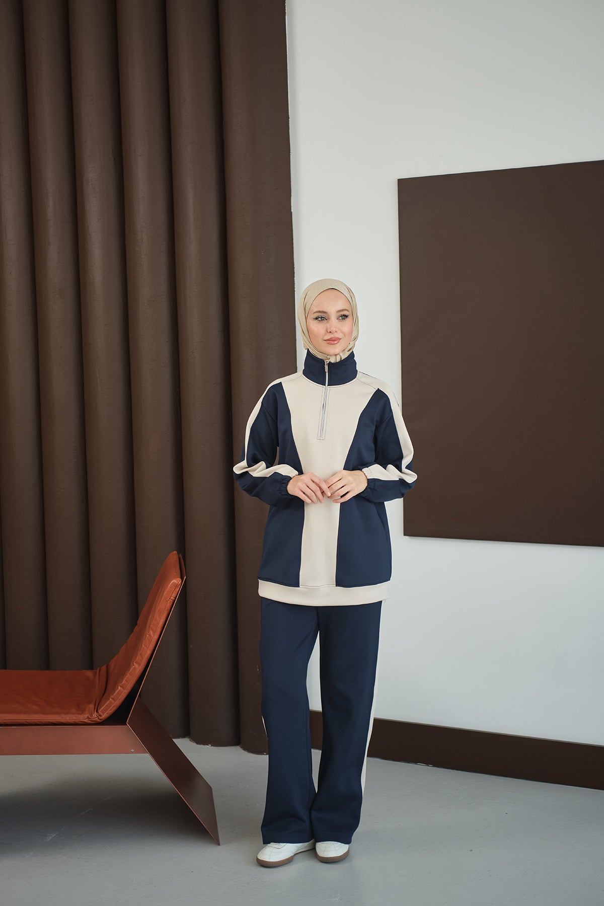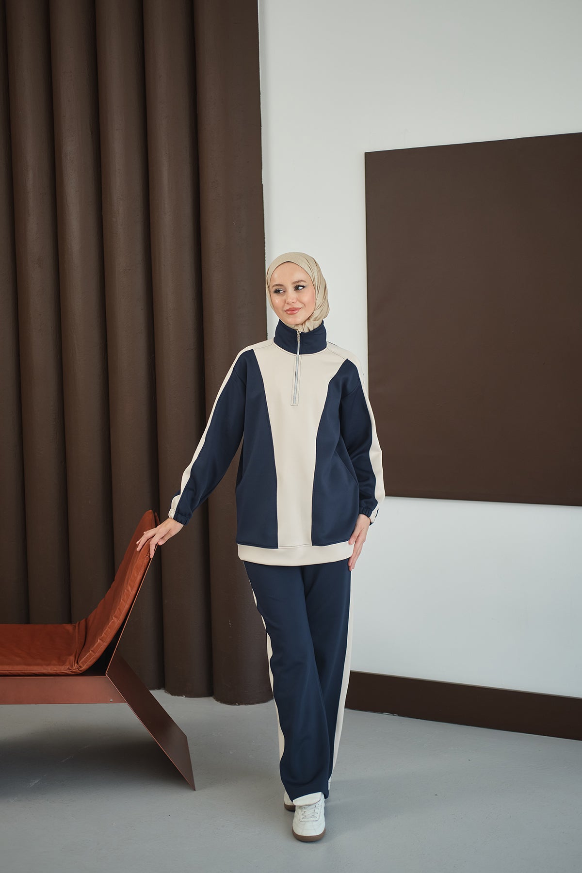 Two-Tone Zipper Detail Set - Navy