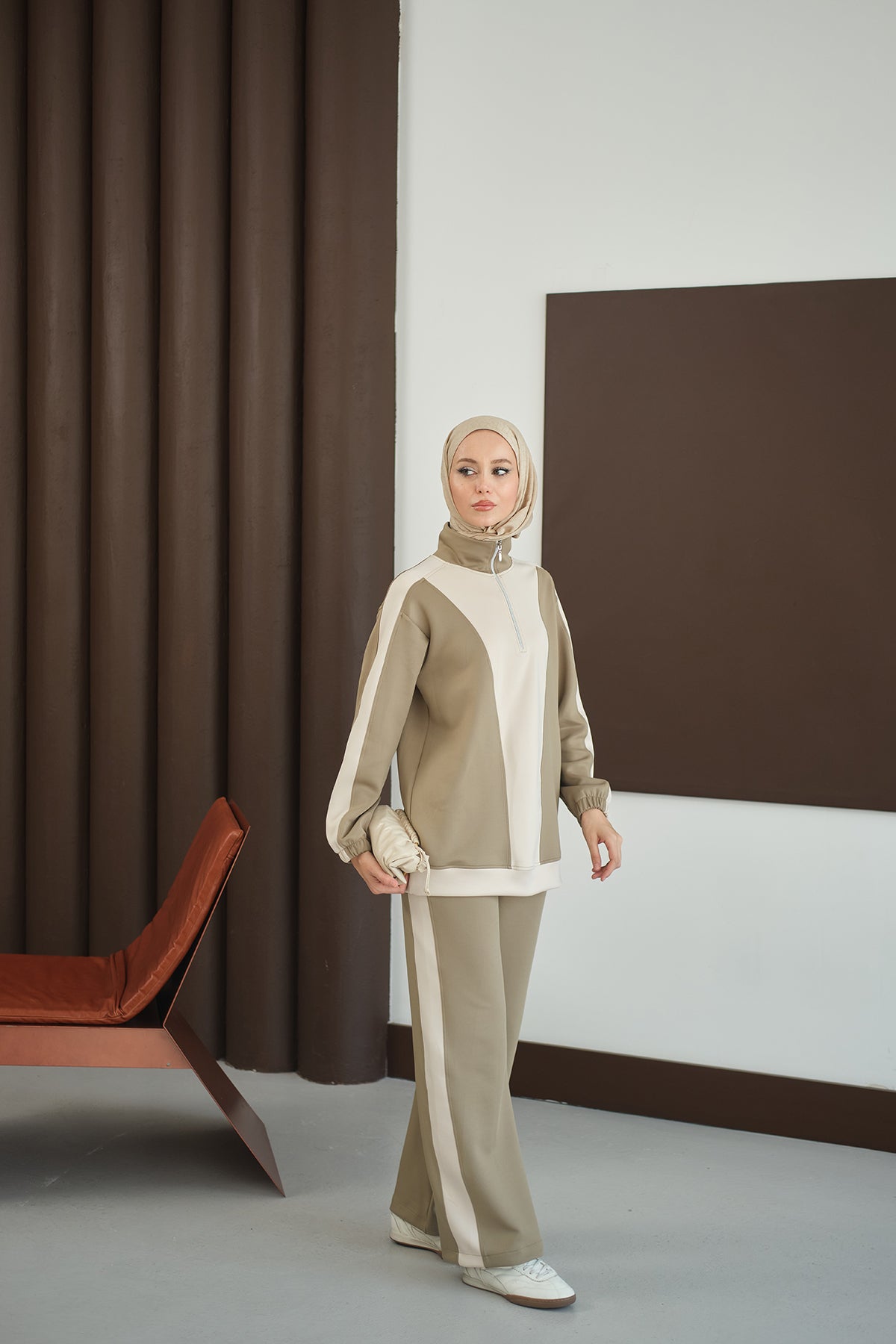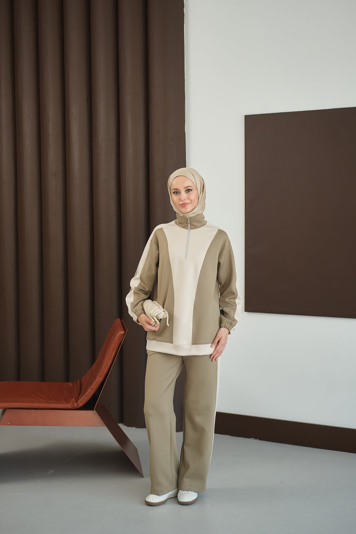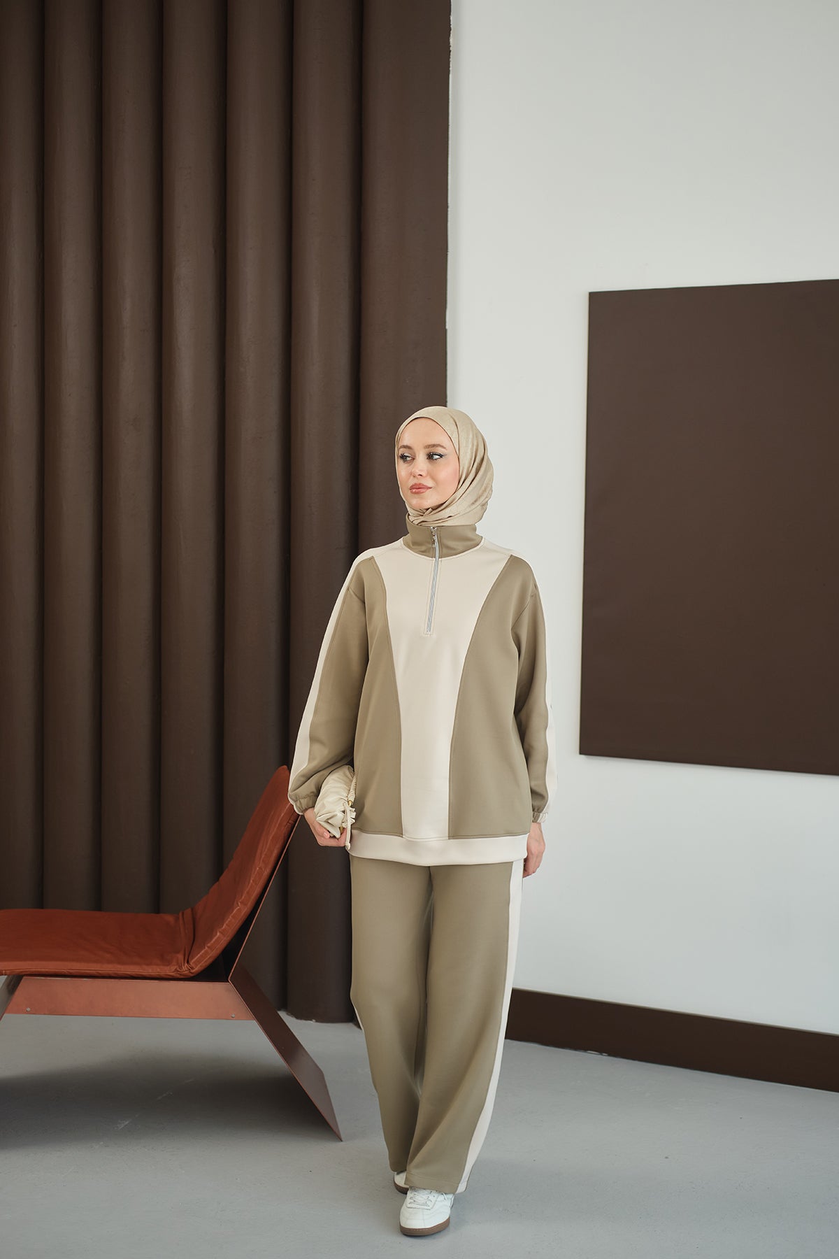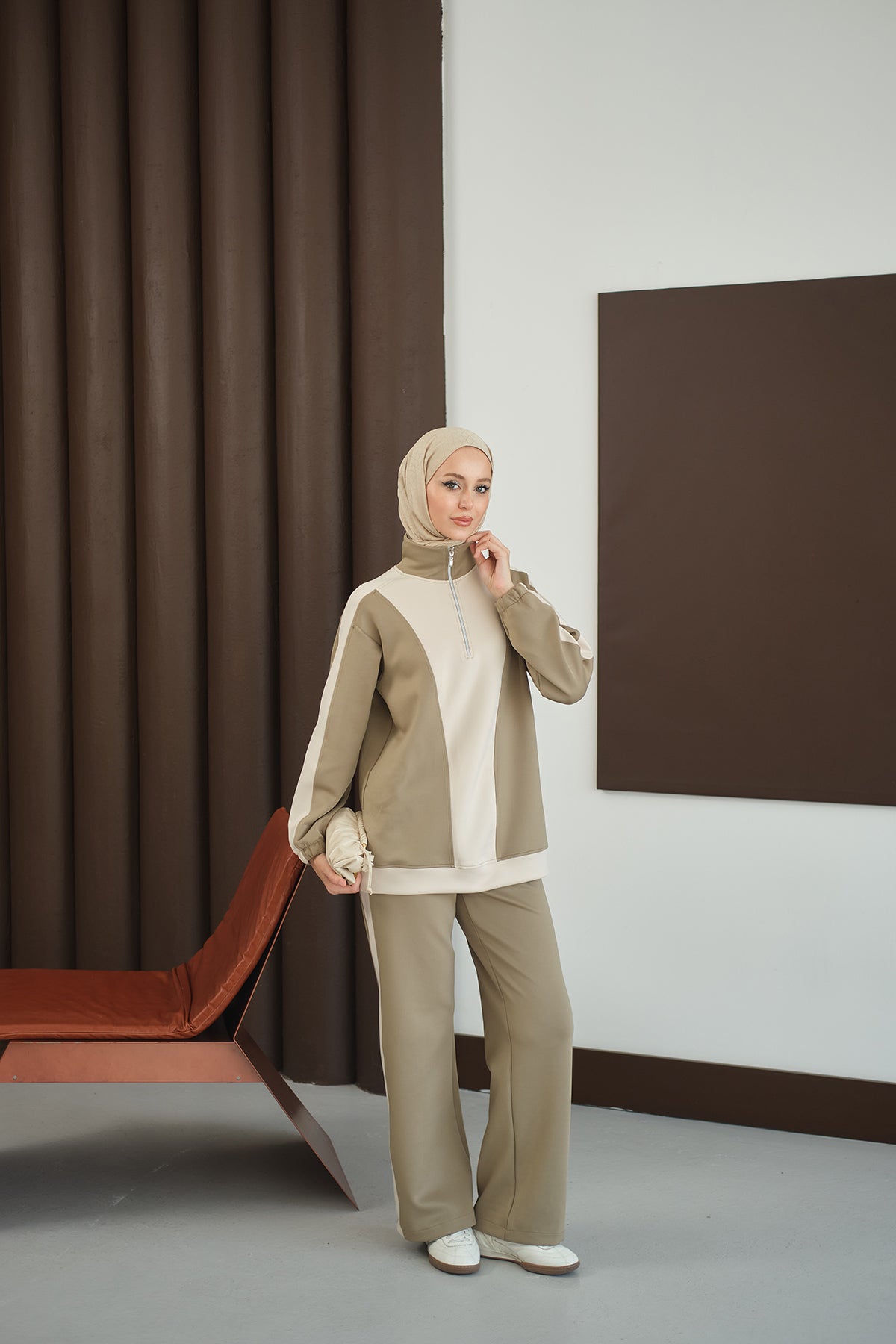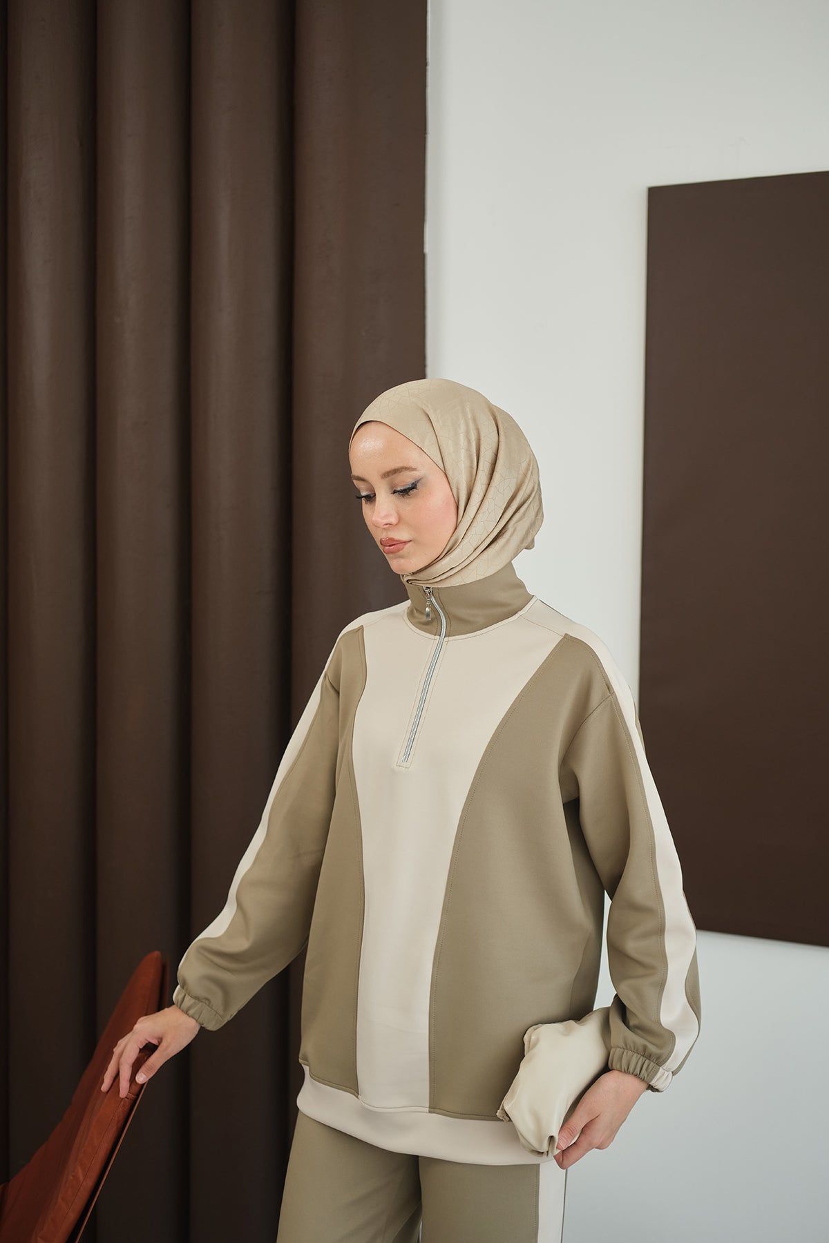 Two-Tone Zipper Detail Set - Green