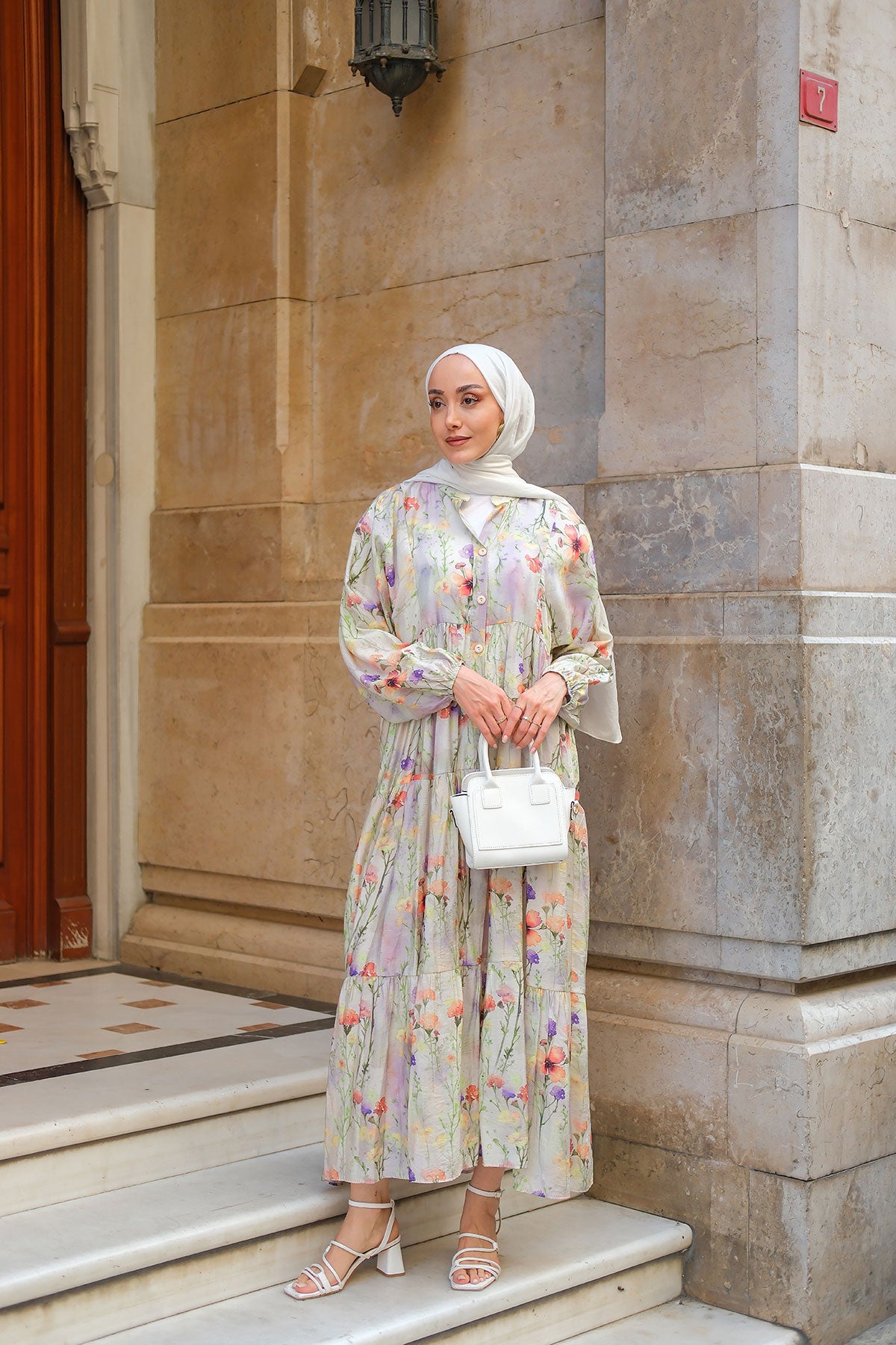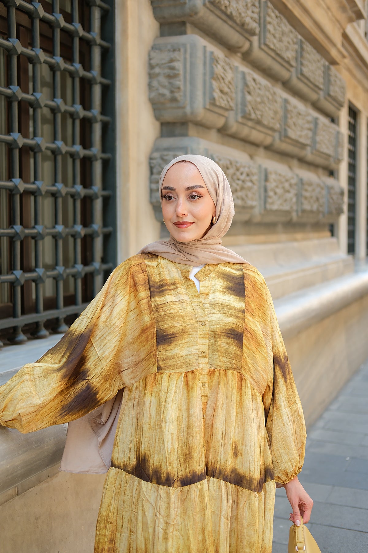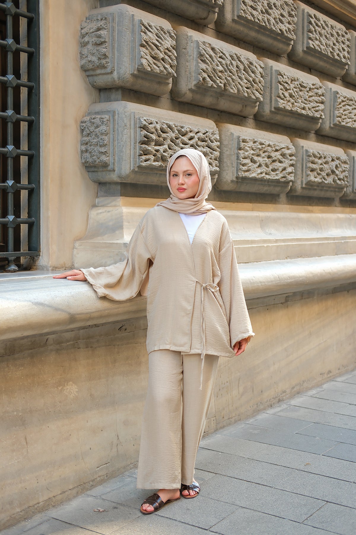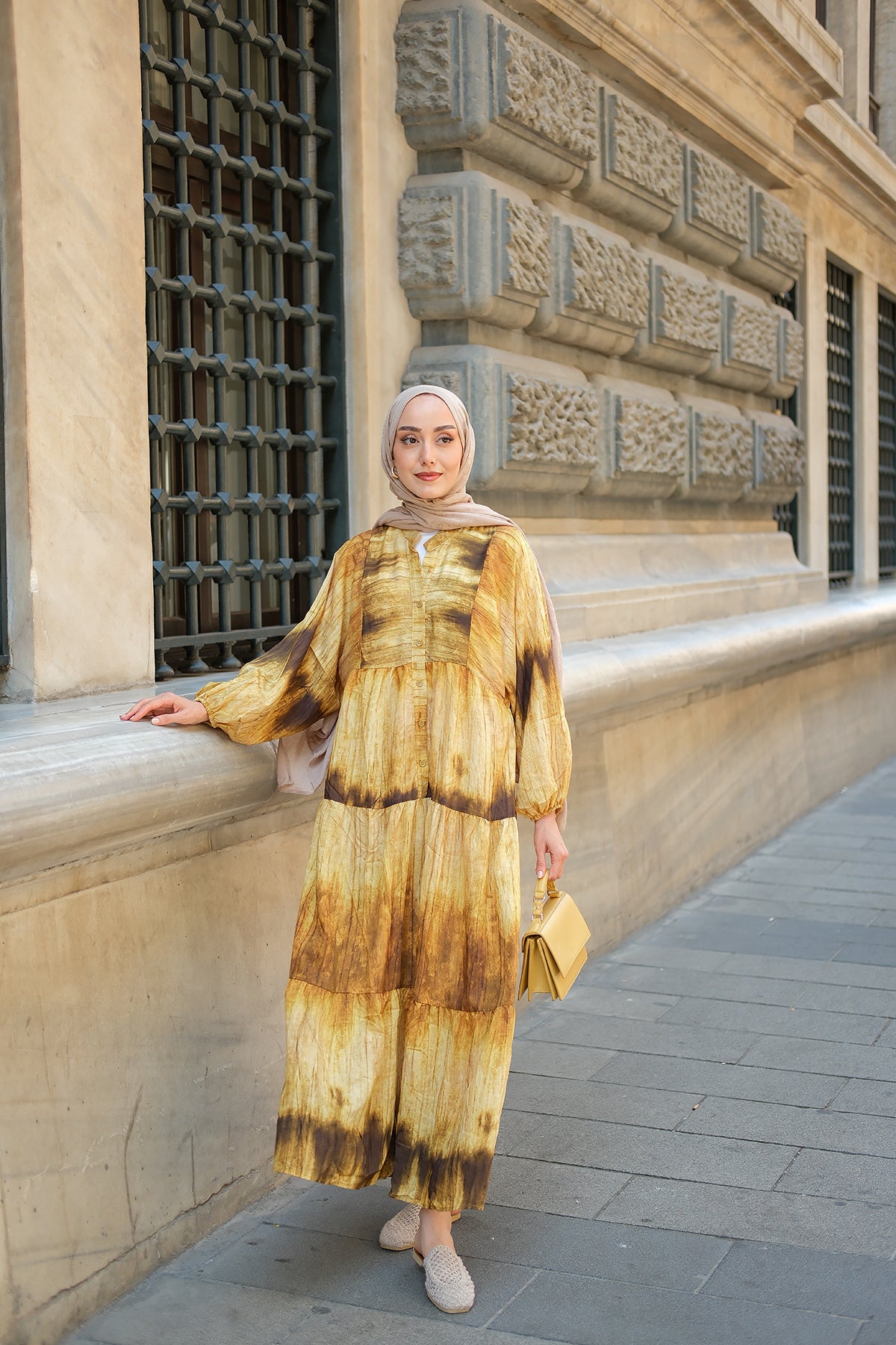 Women's Front-Lace Lined Linen Modest Dress - Stone