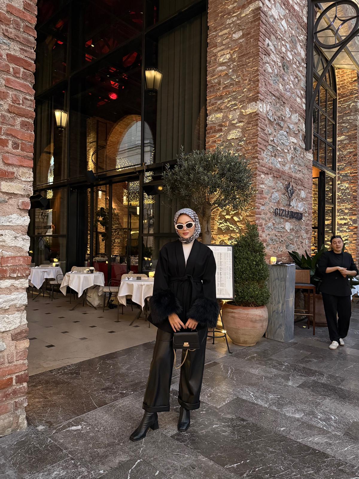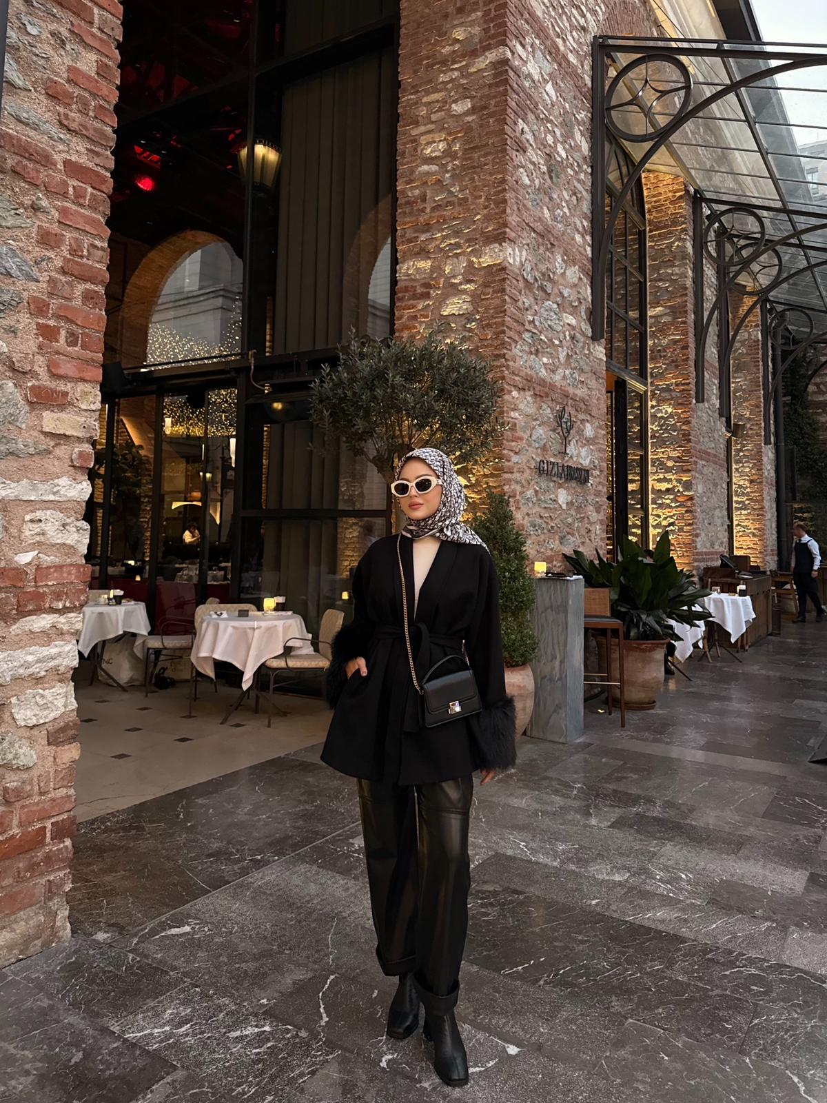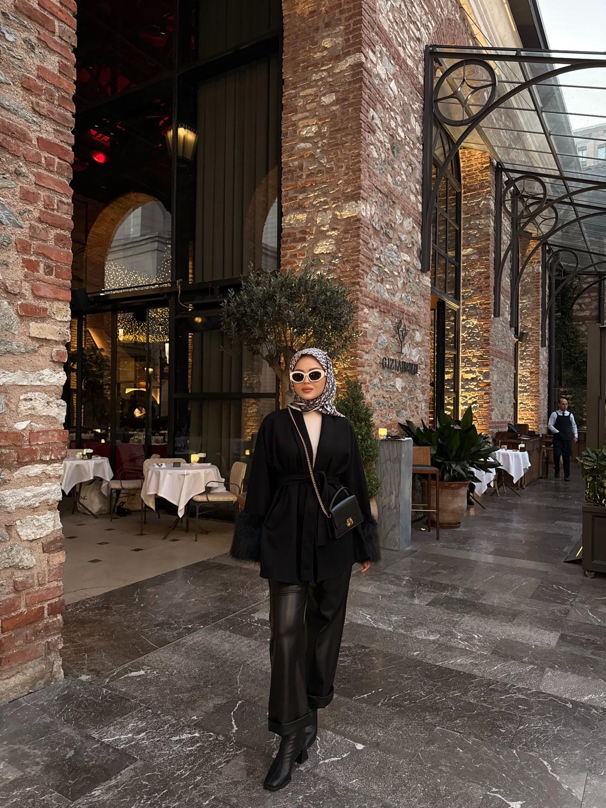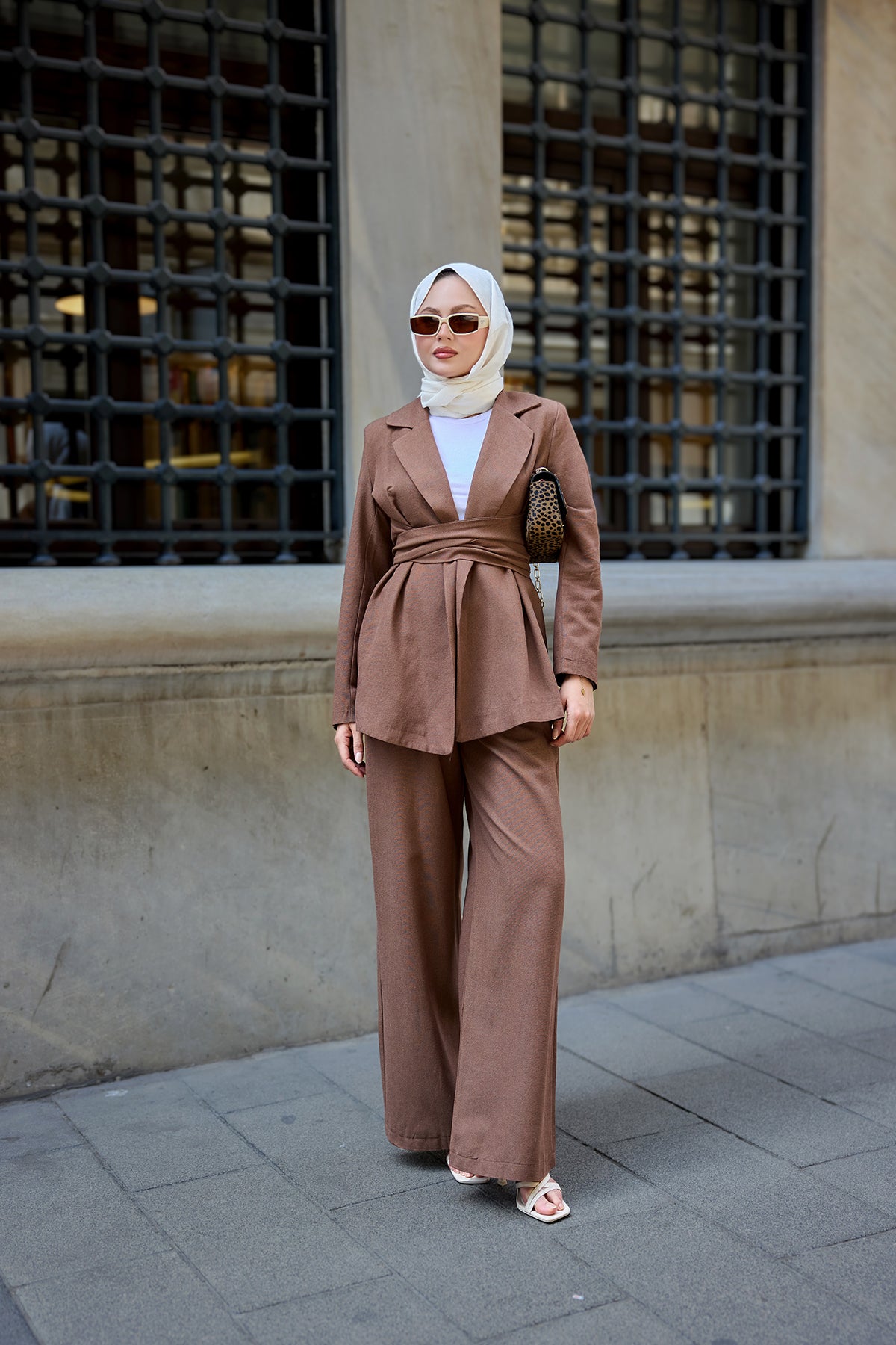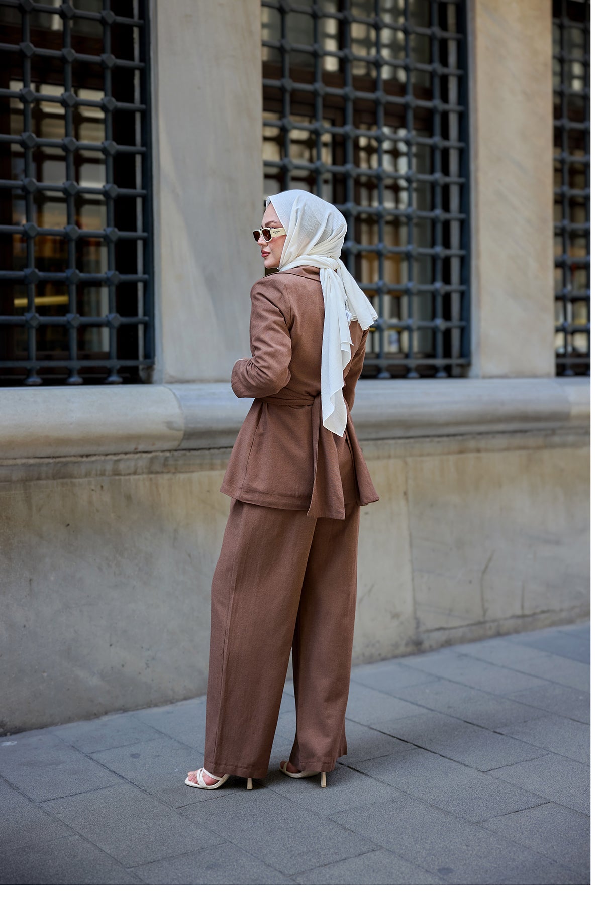 Wool Coat with Fur Trim and Bow Collar - Brown