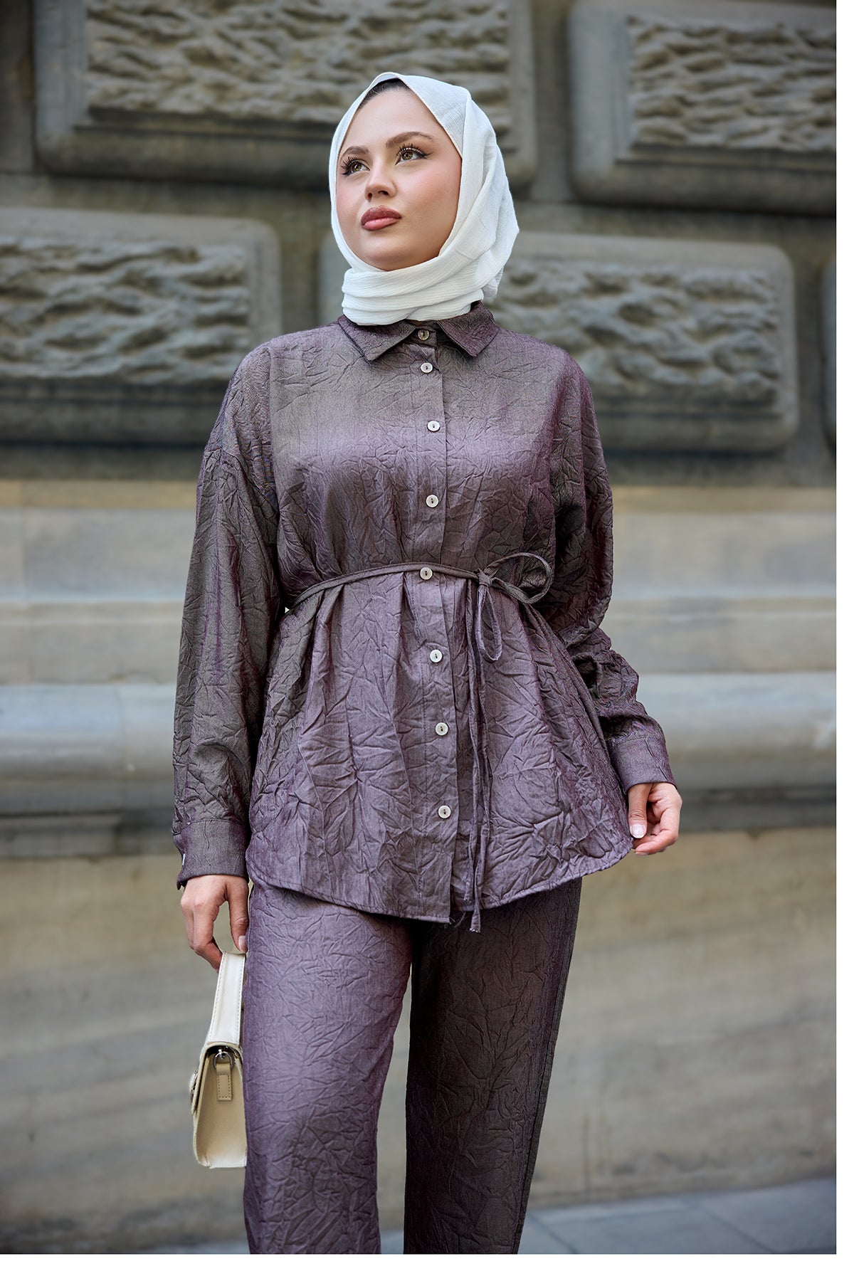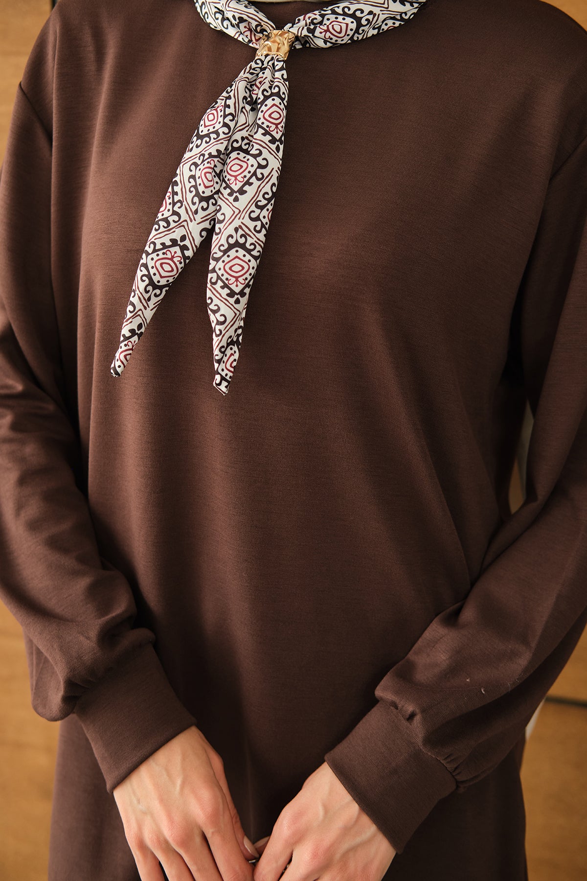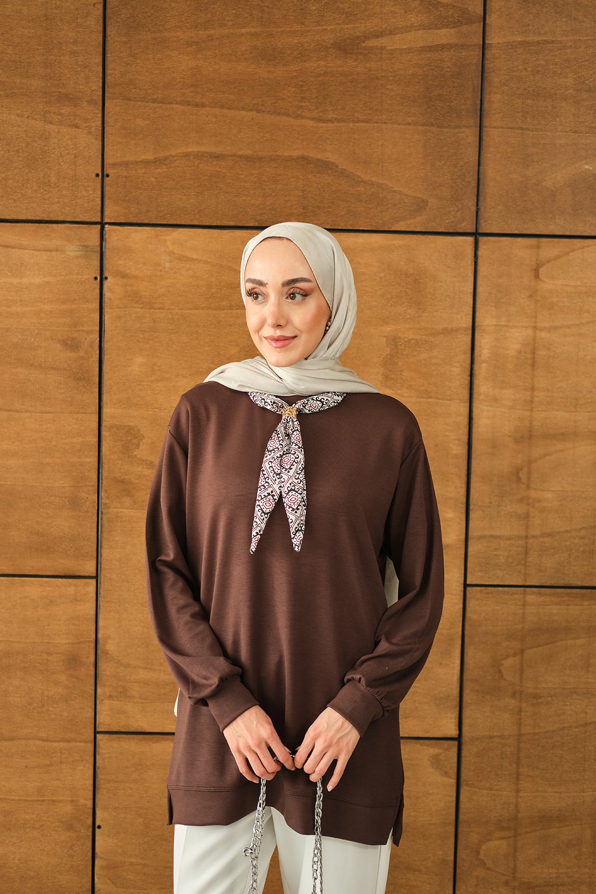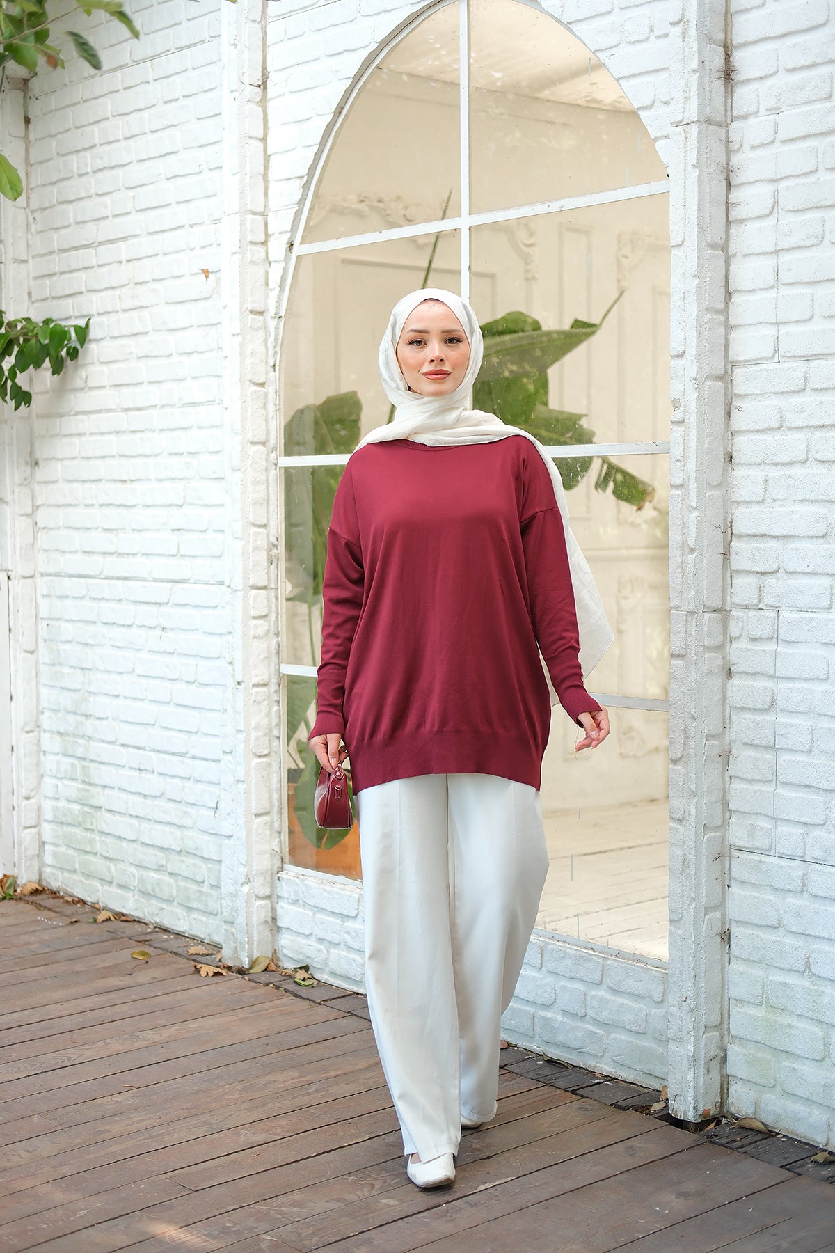 Wrist-Length Tunic with Gold Accessory Details – Burgundy