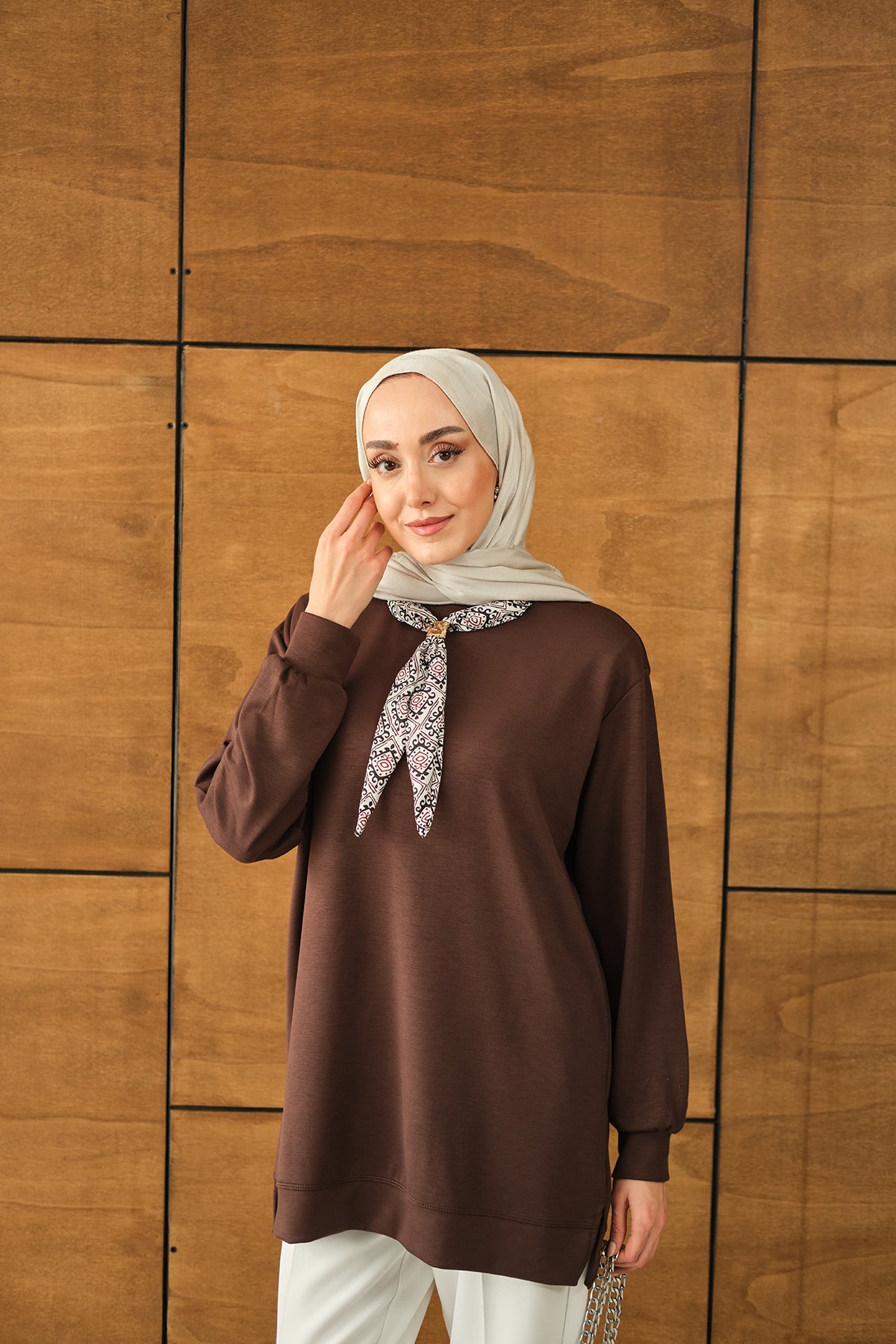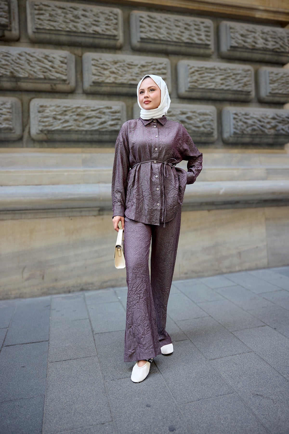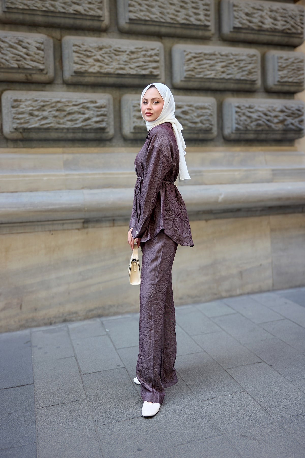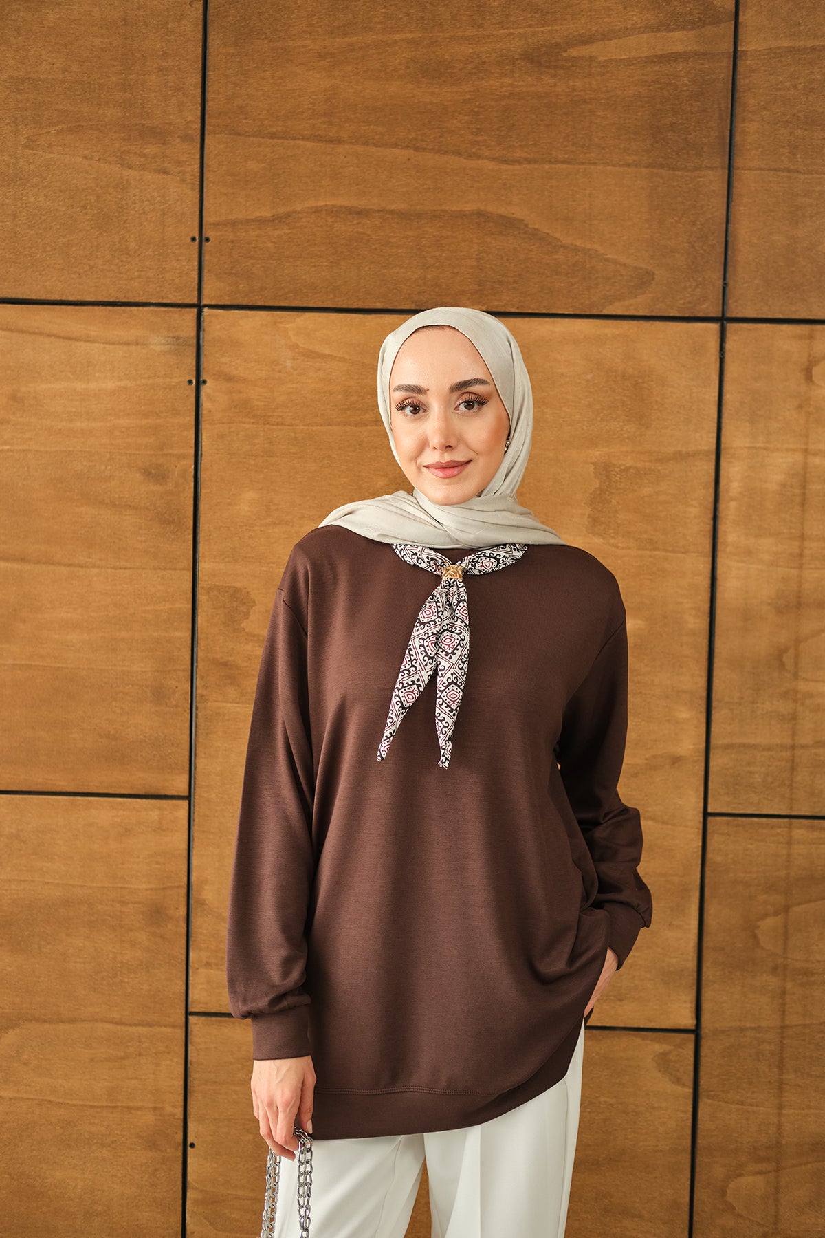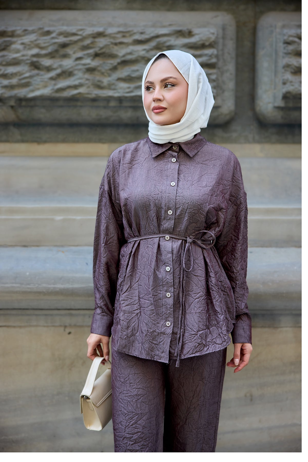 Wrist-Length Tunic with Gold Accessory Details – Burgundy