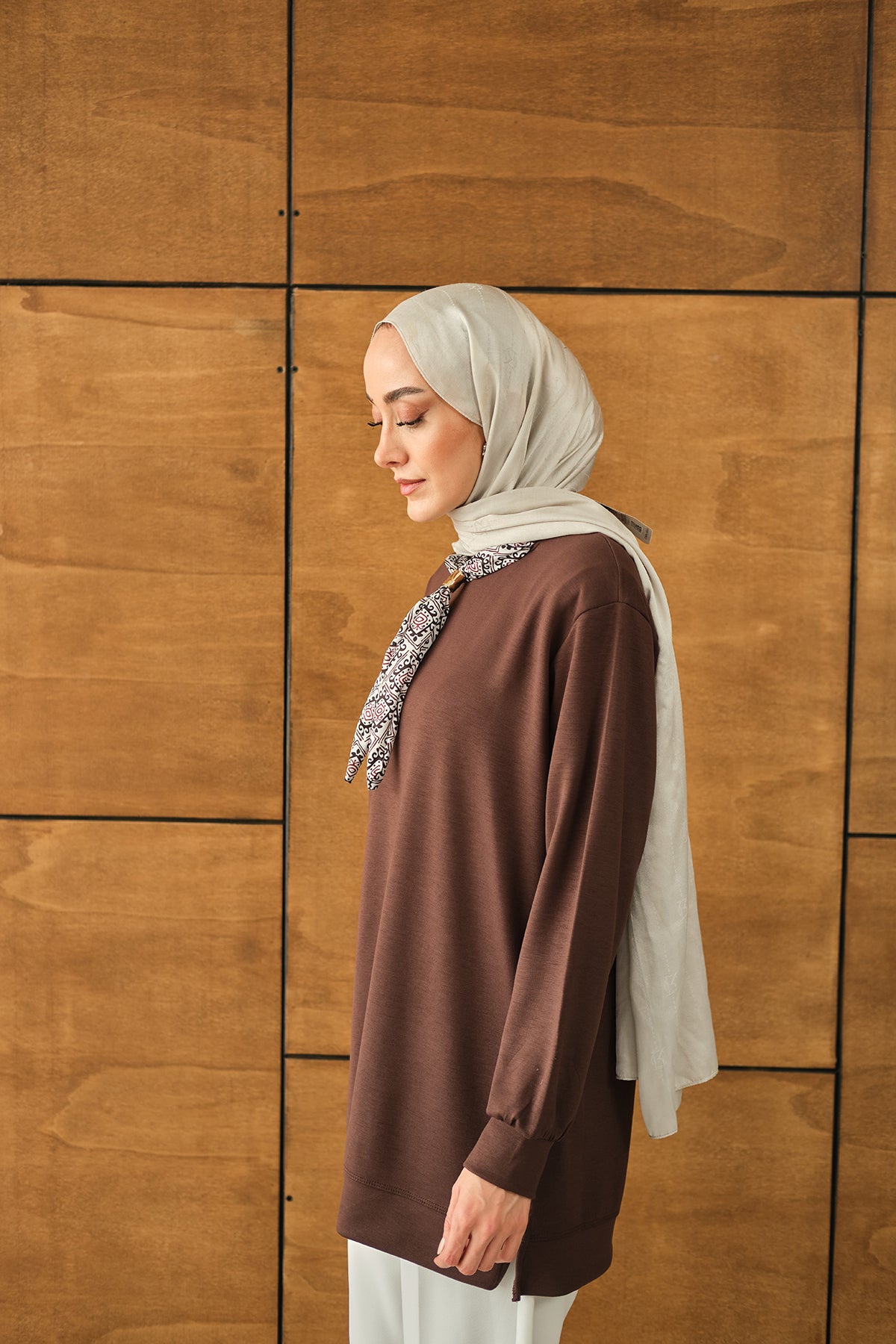 Wrist-Length Tunic with Gold Accessory Details – Sage Green