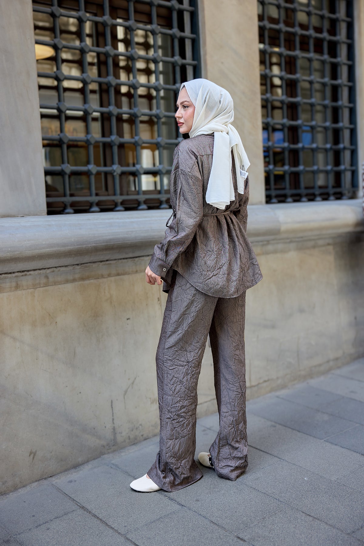 Wrist-Length Tunic with Gold Accessory Details – Charcoal Gray