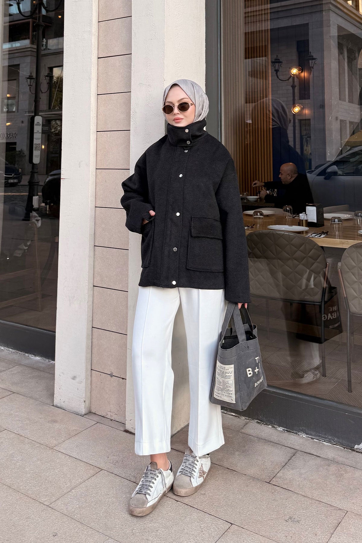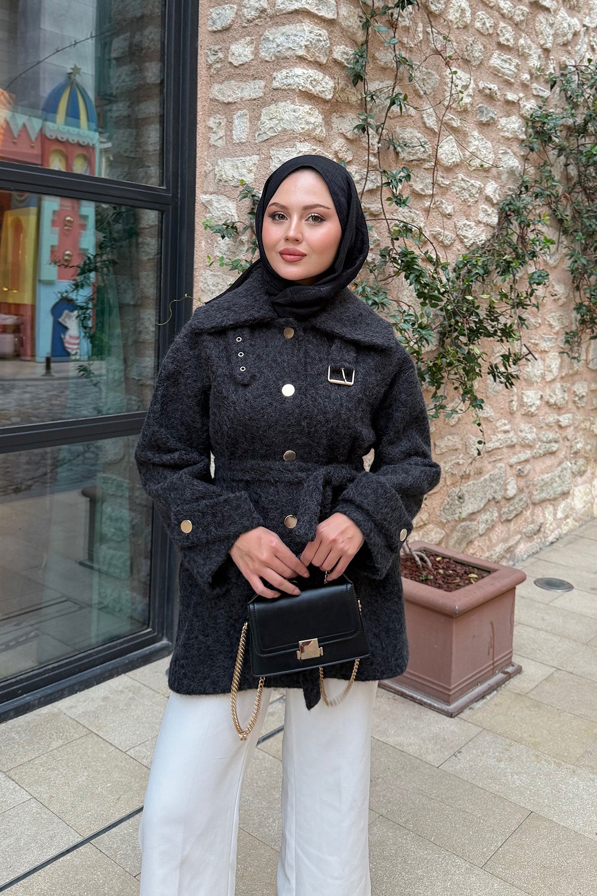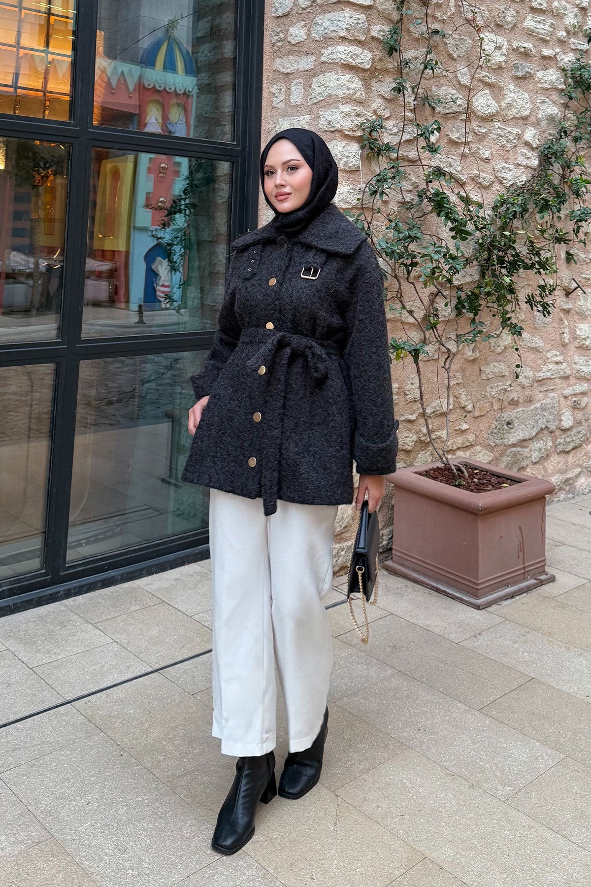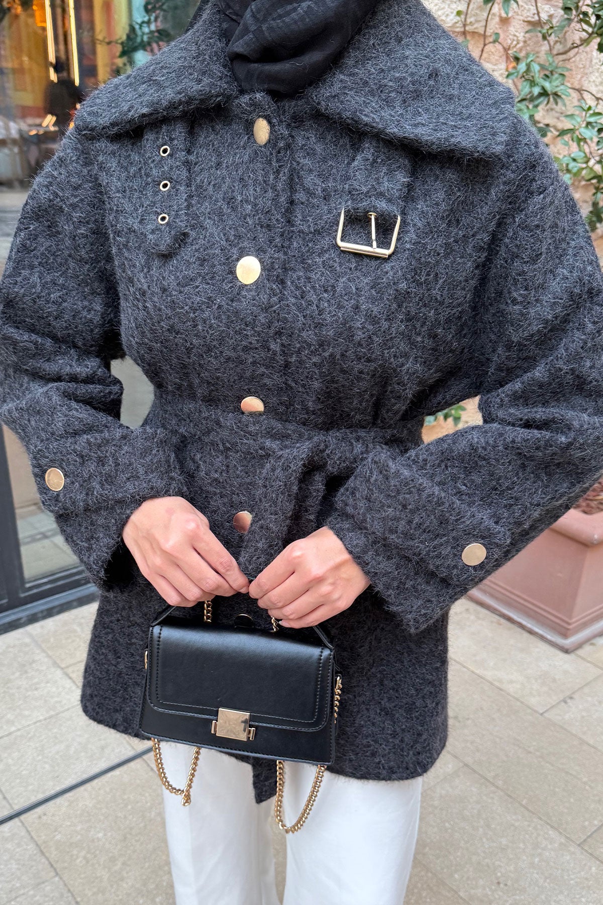 Yaka Kemer Detay Ceket Siyah