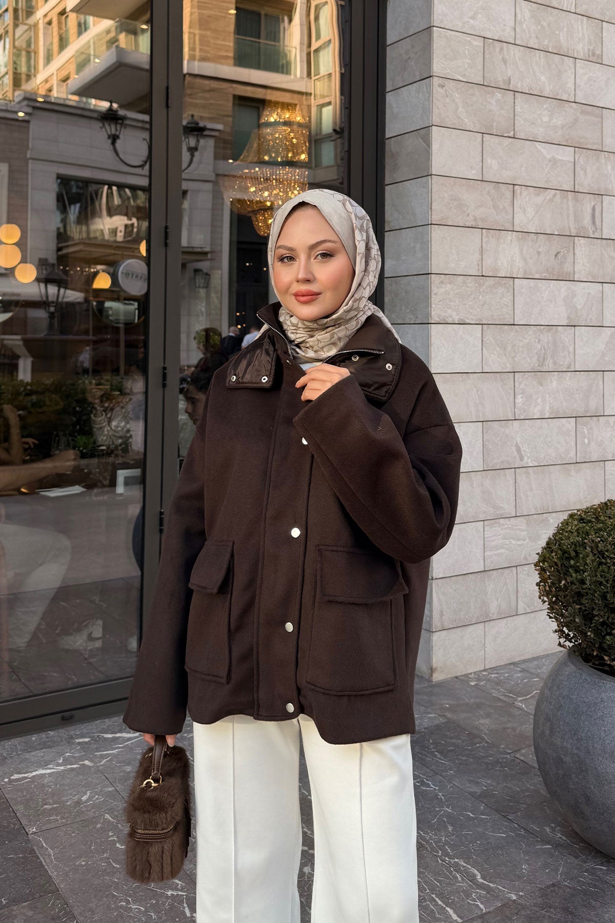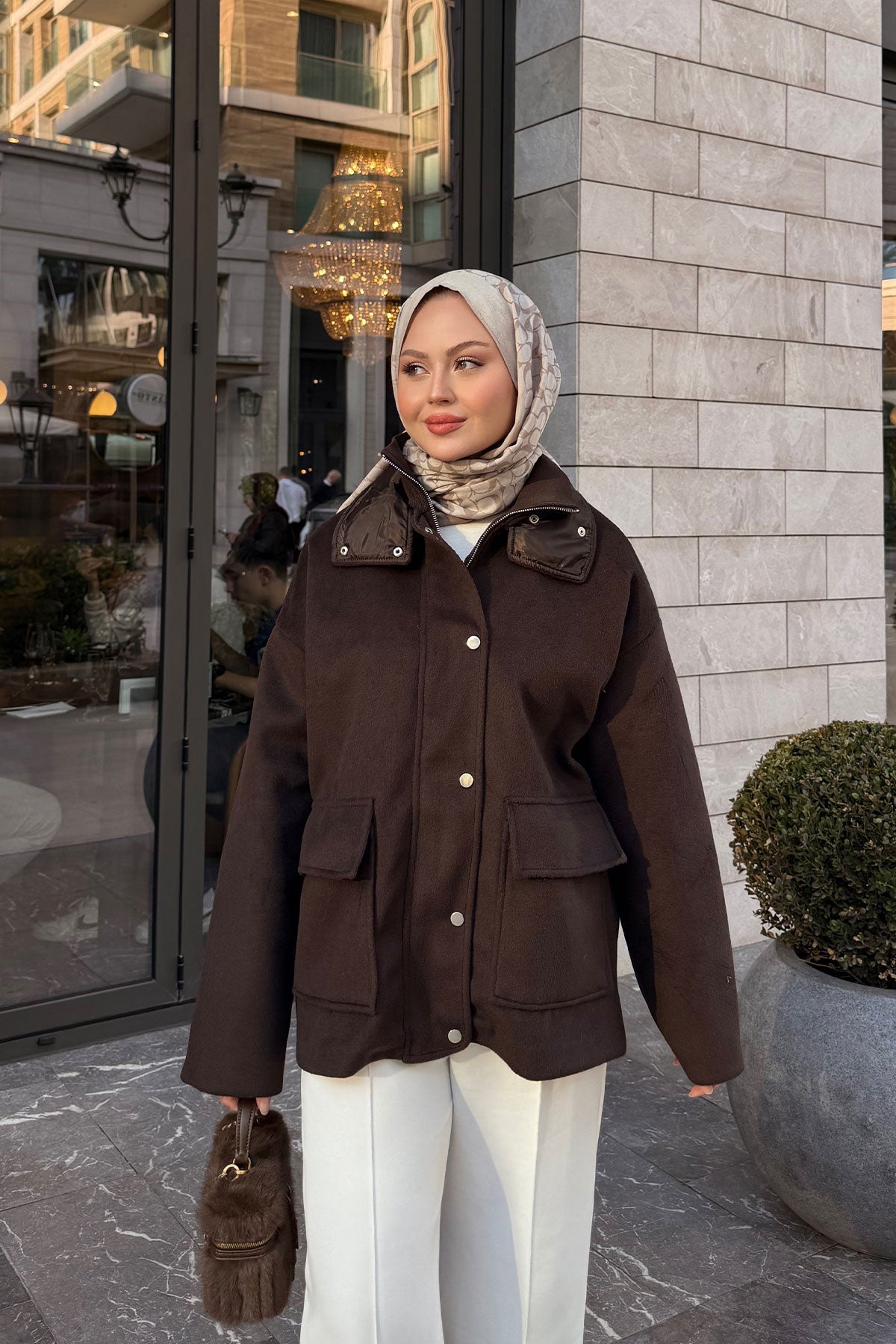 Yakası Lastik Detaylı Ceket Kahverengi