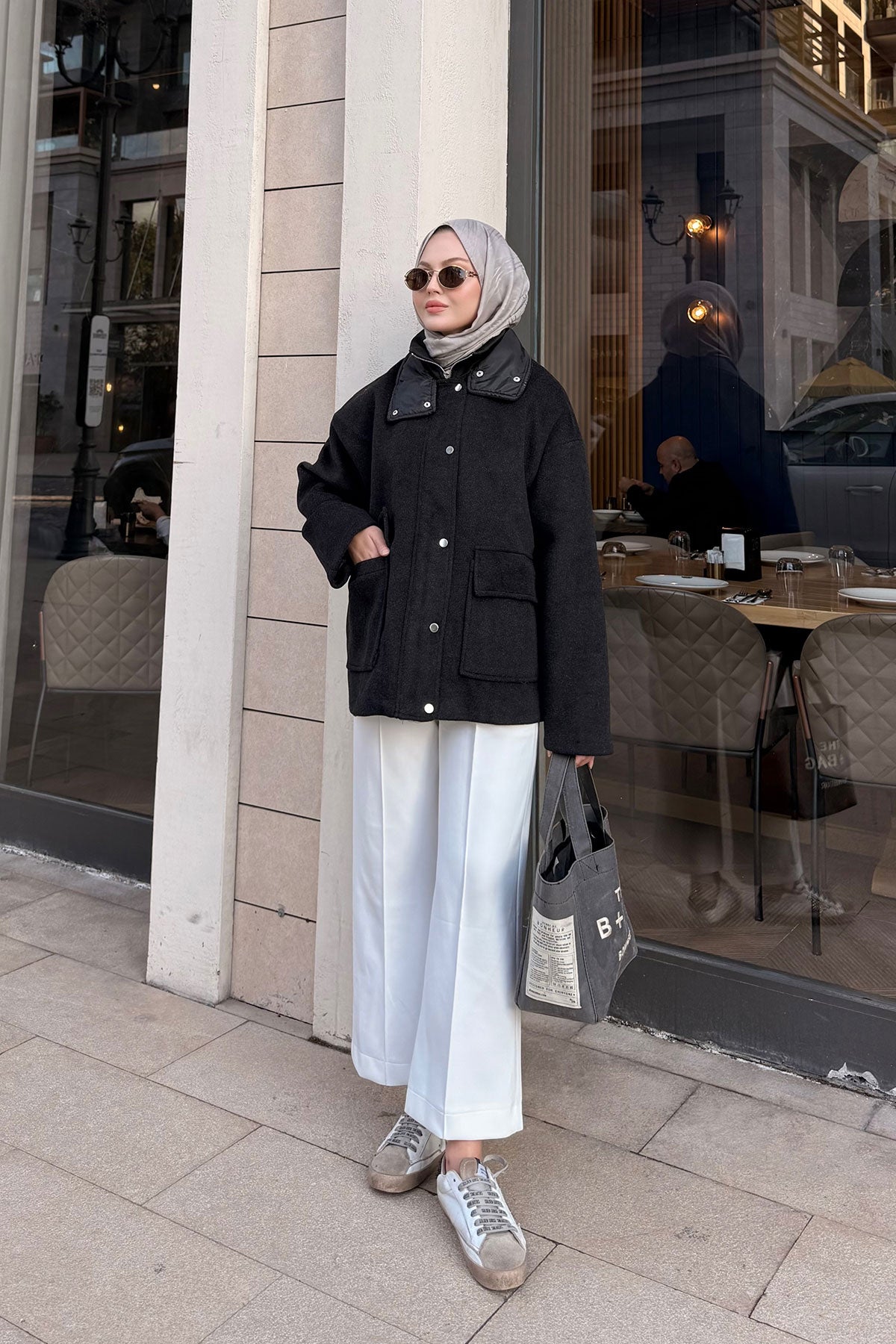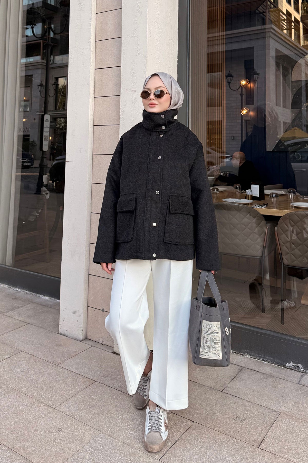 Yaka Kürklü Dikiş Detay Mont Siyah