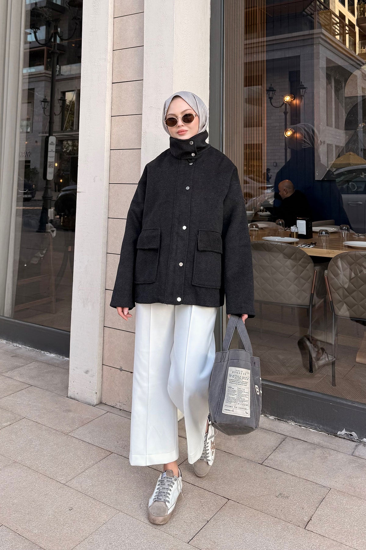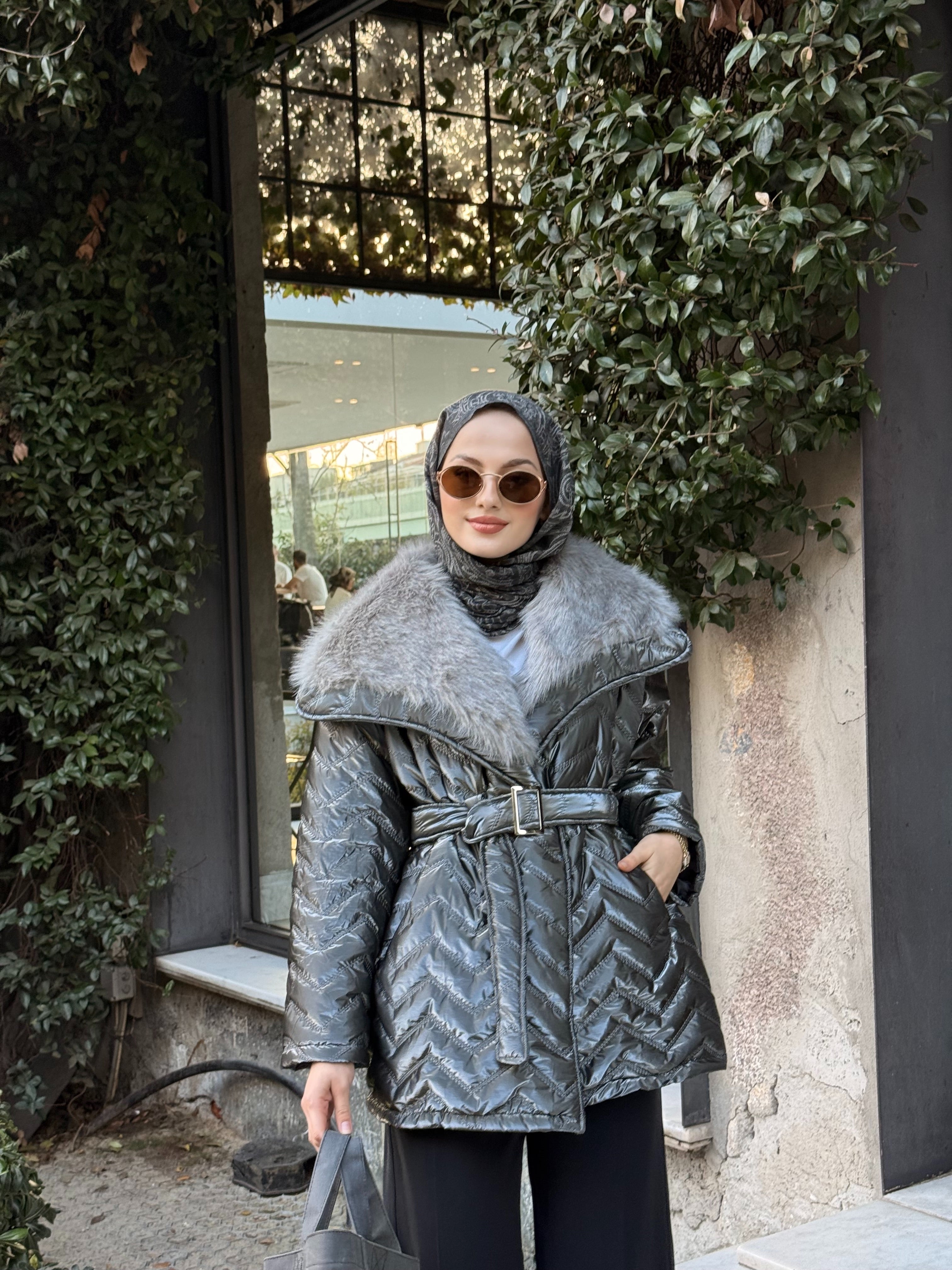 Yaka Kürklü Dikiş Detay Mont Antrasit