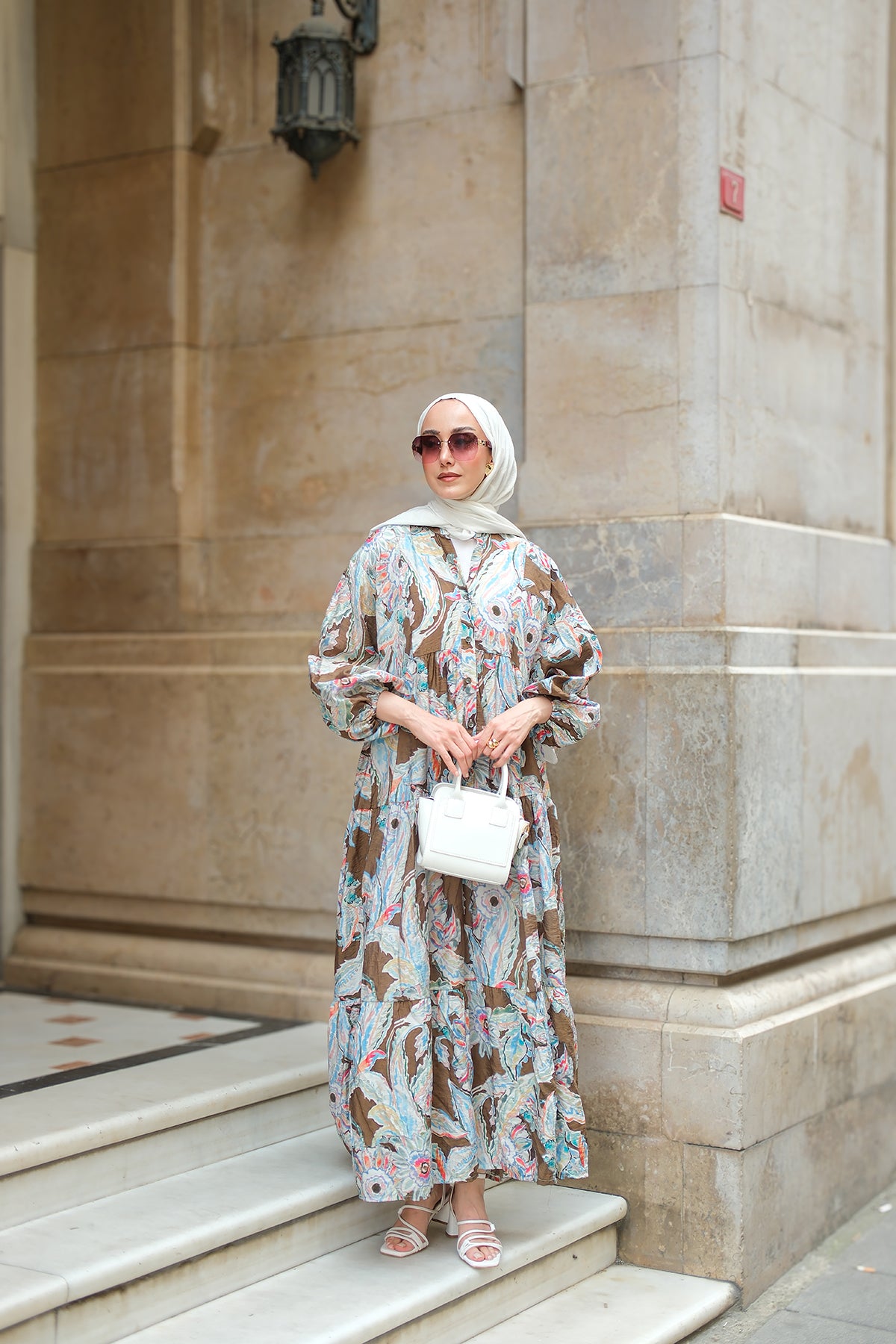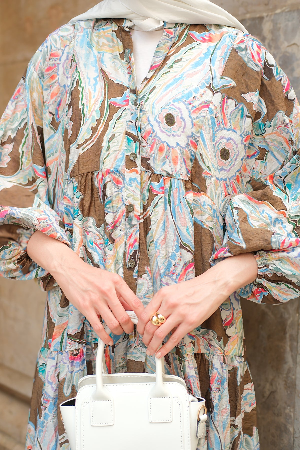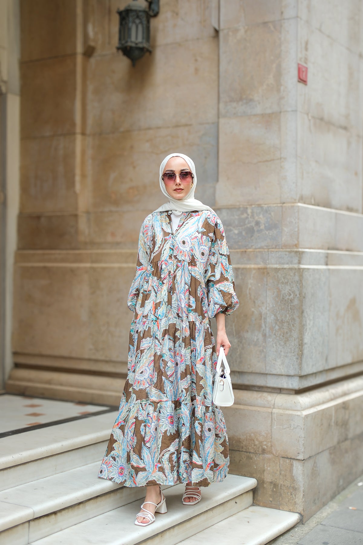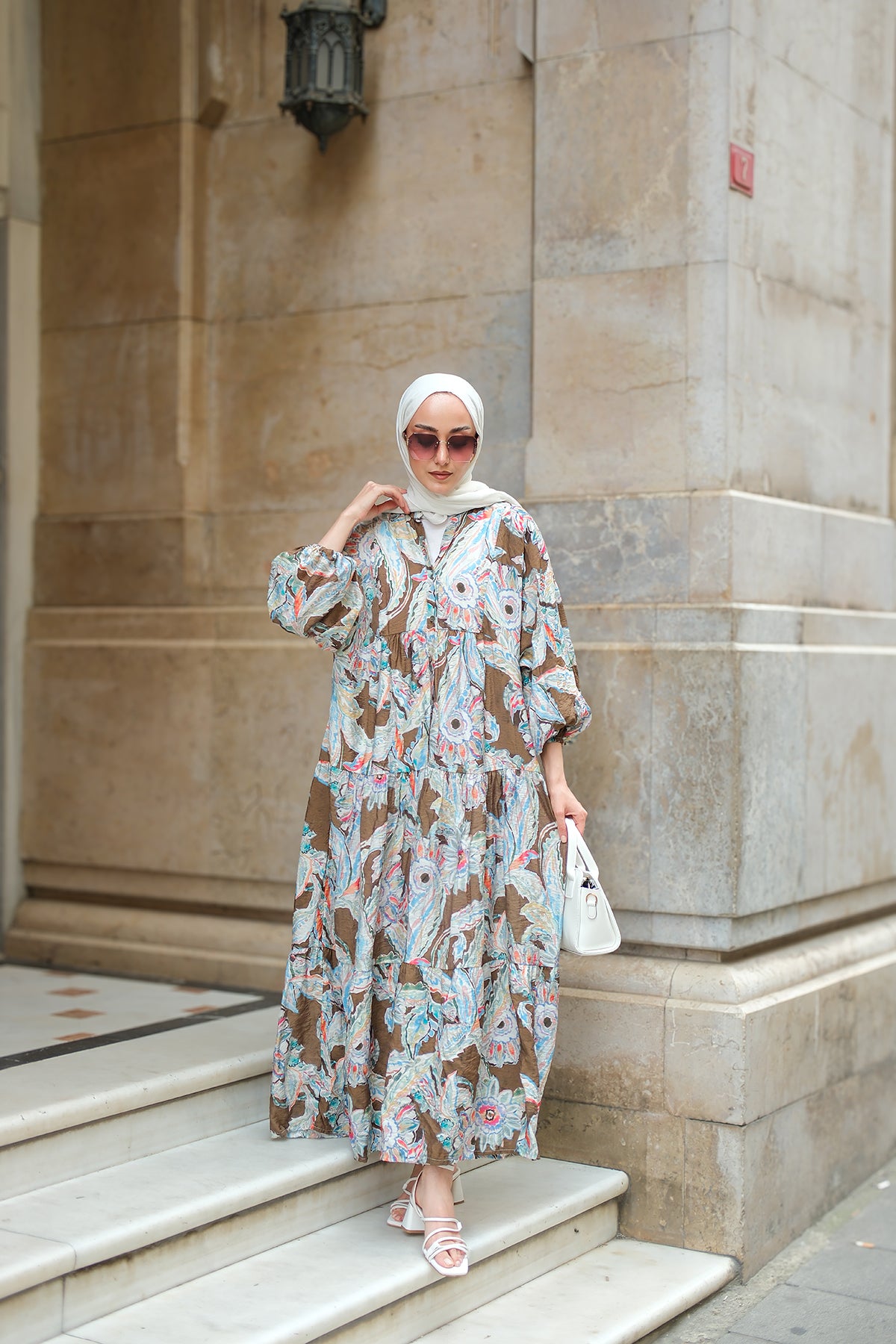 Yakamoz Desenli Elbise Haki Yeşil