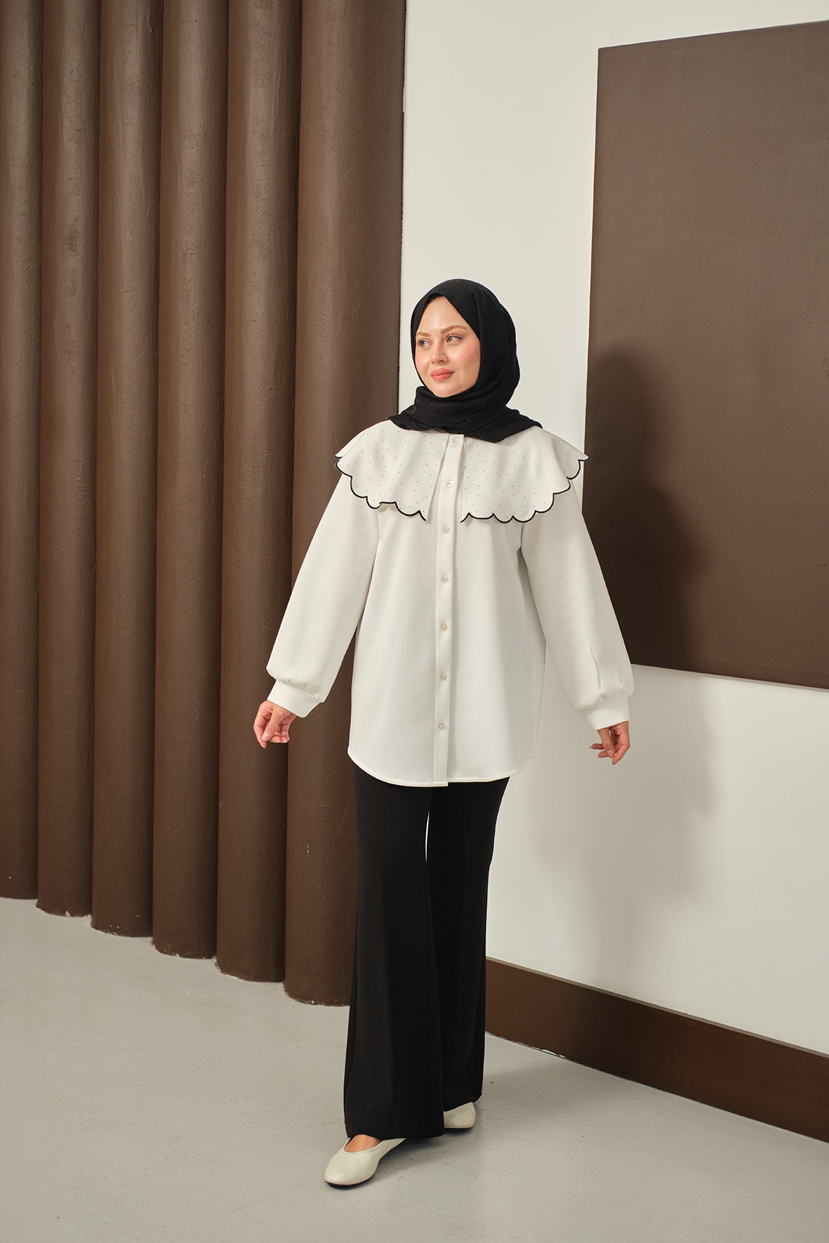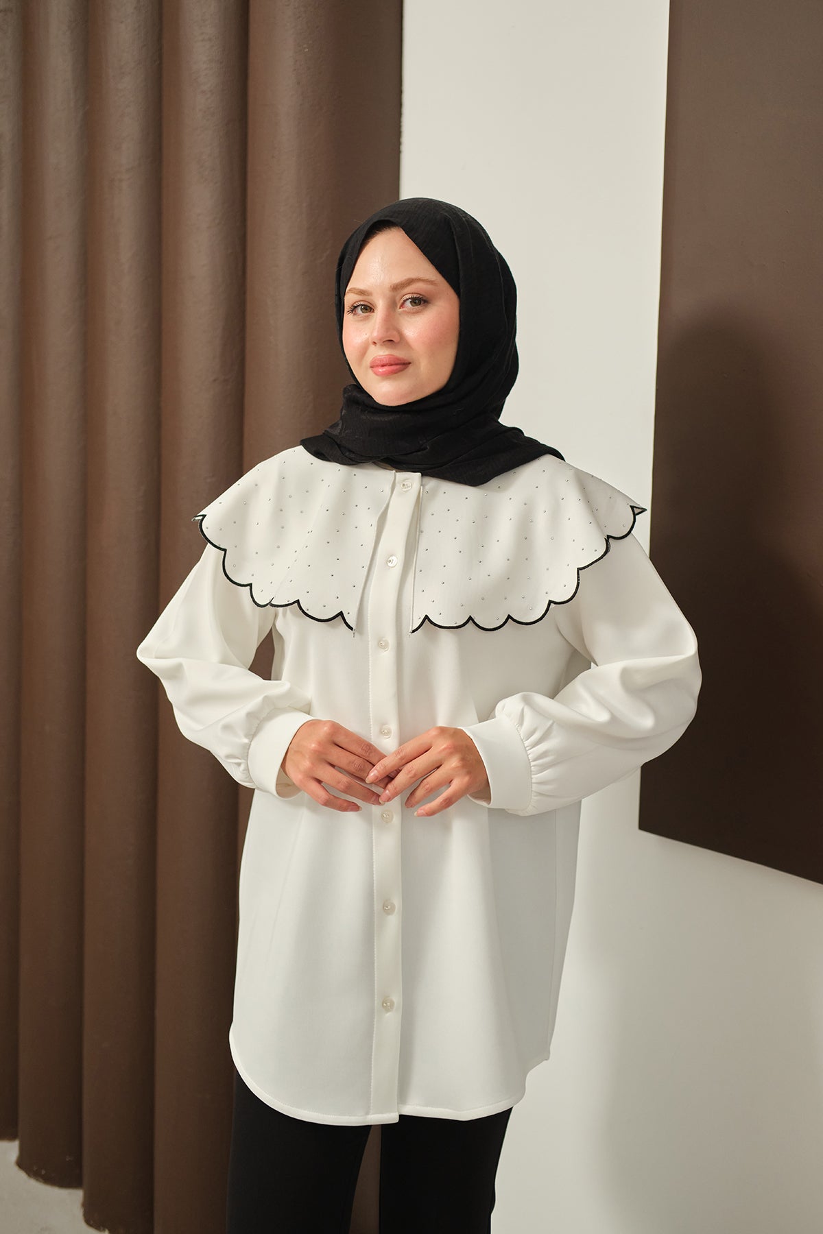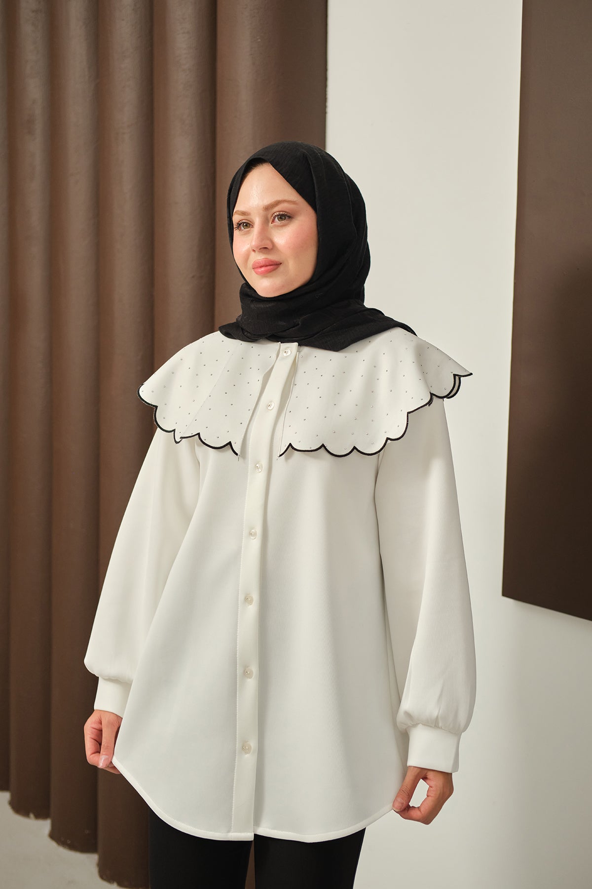 Yakası Taşlı Tunik Beyaz