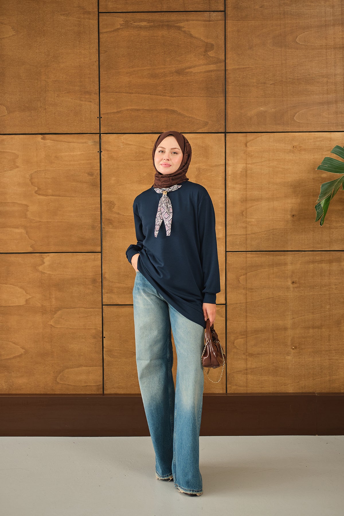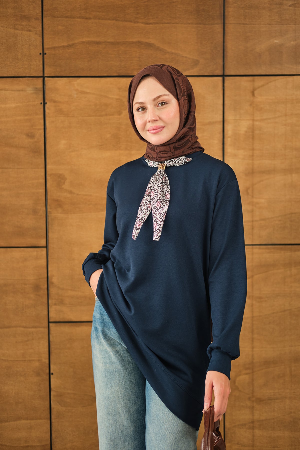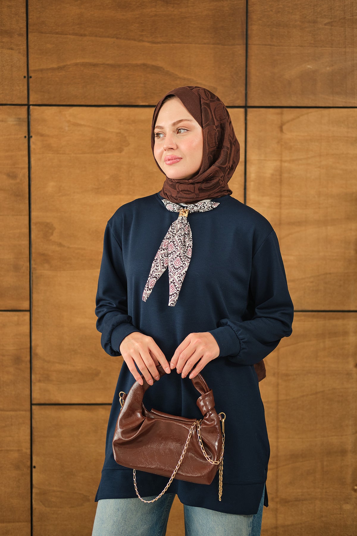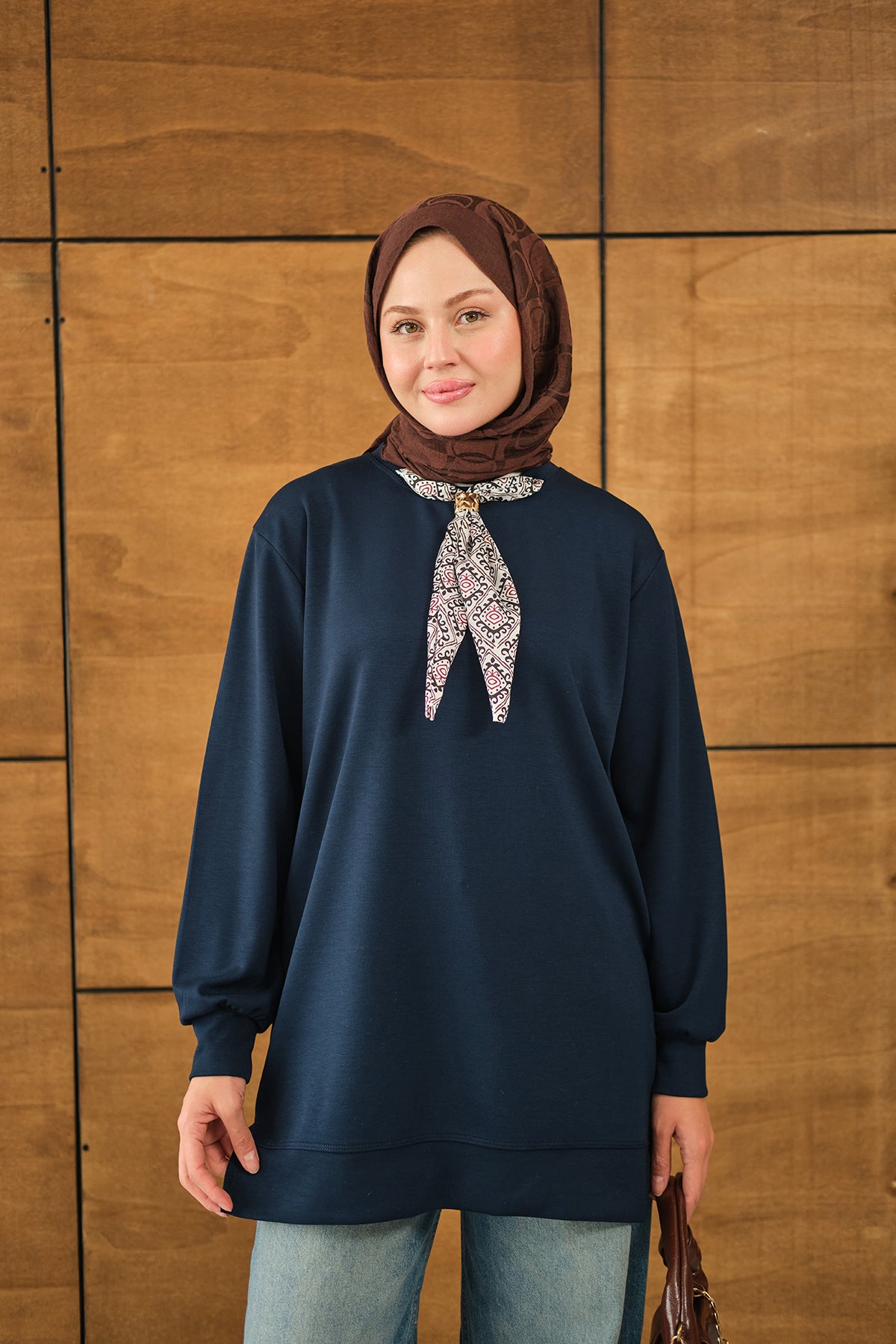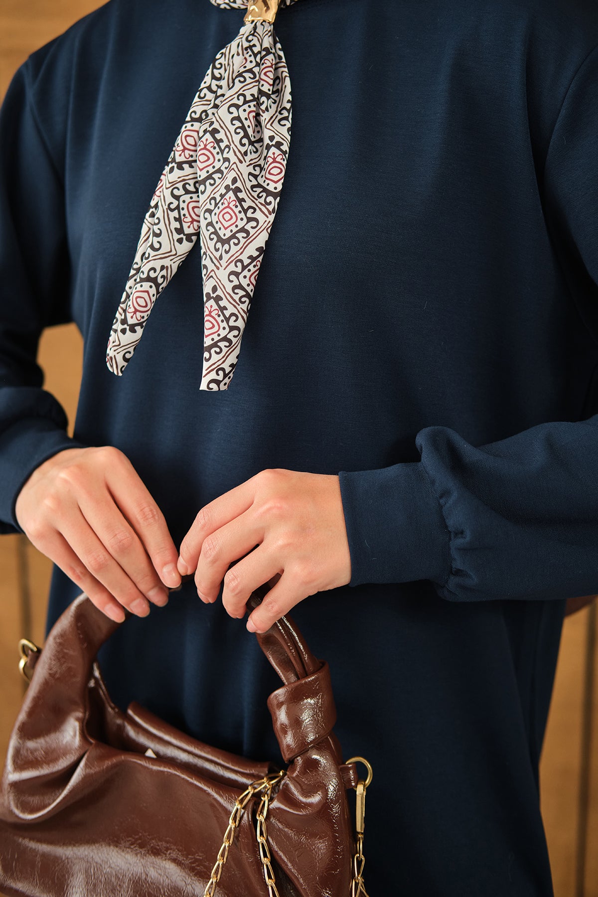 Yaka Fularlı Tunik Lacivert
