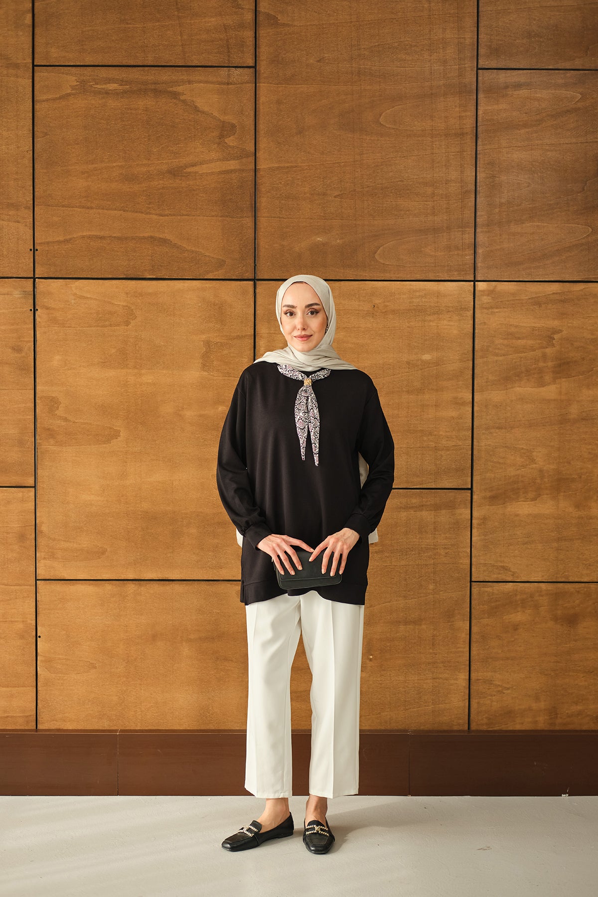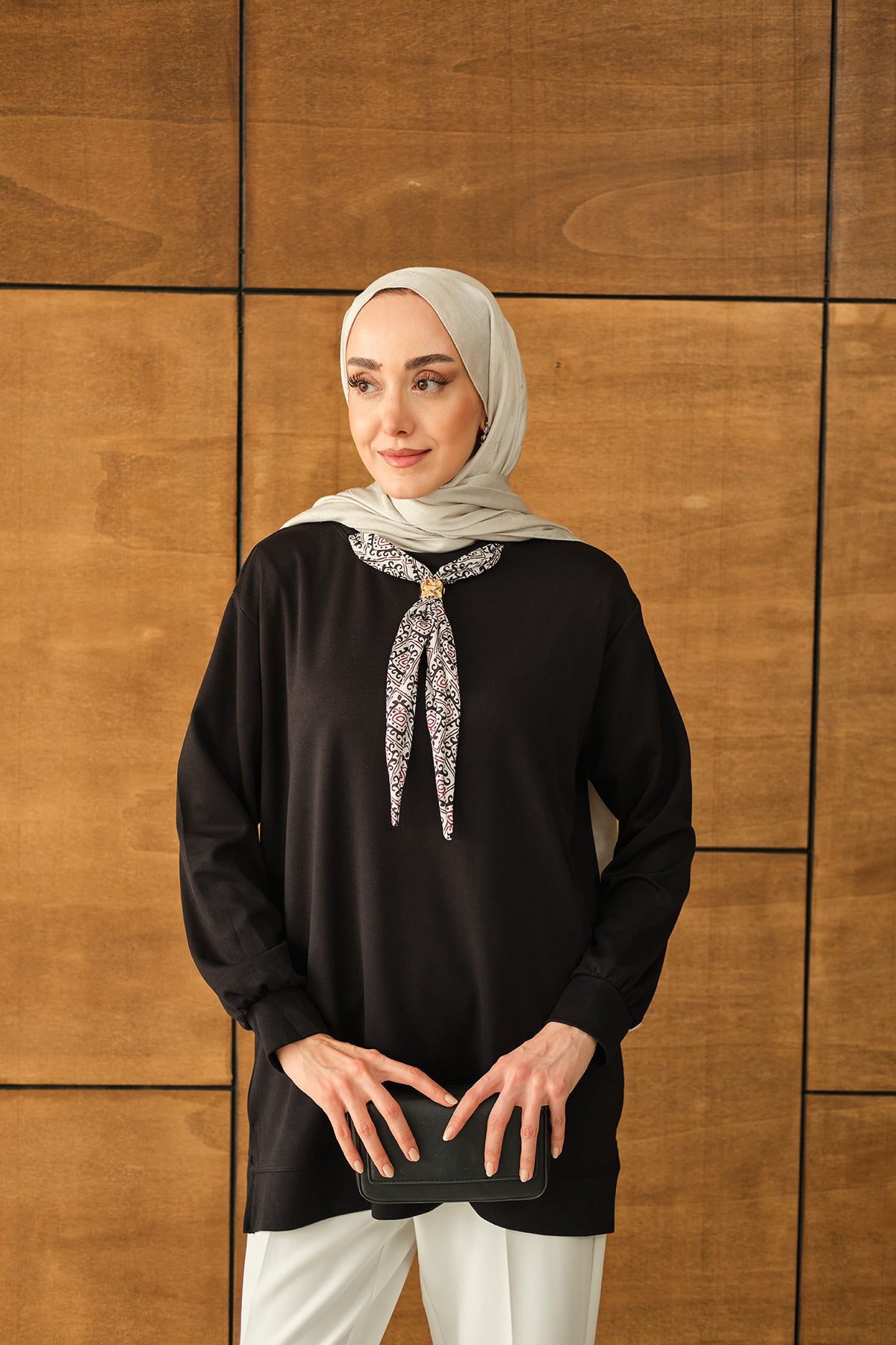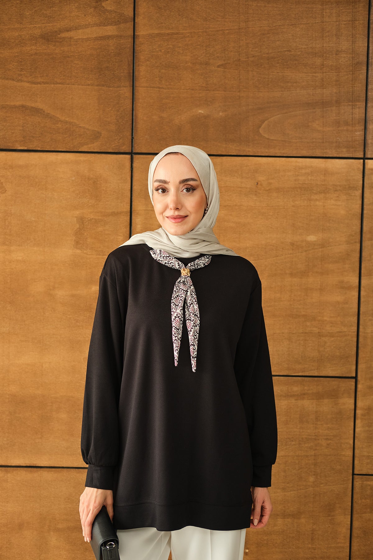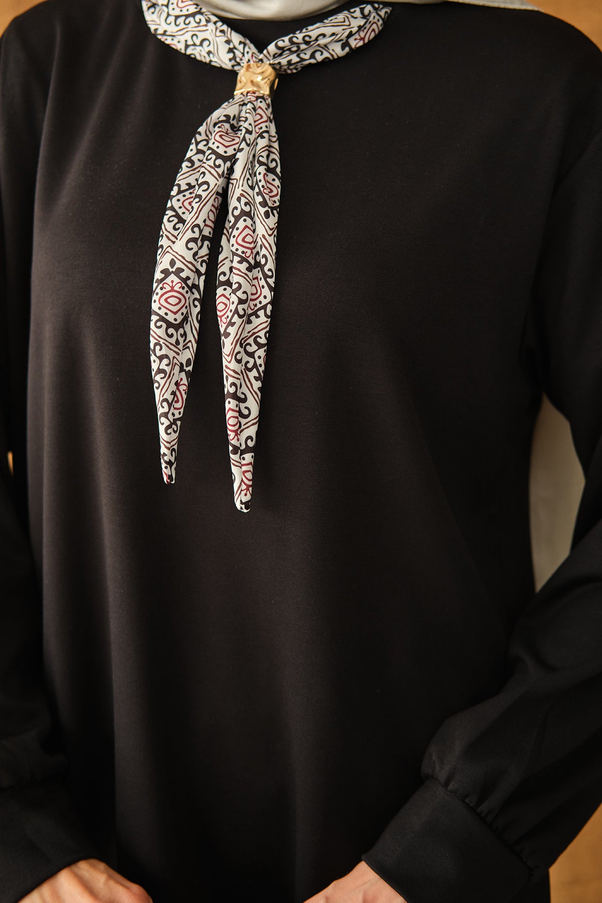 Yaka Fularlı Tunik Siyah