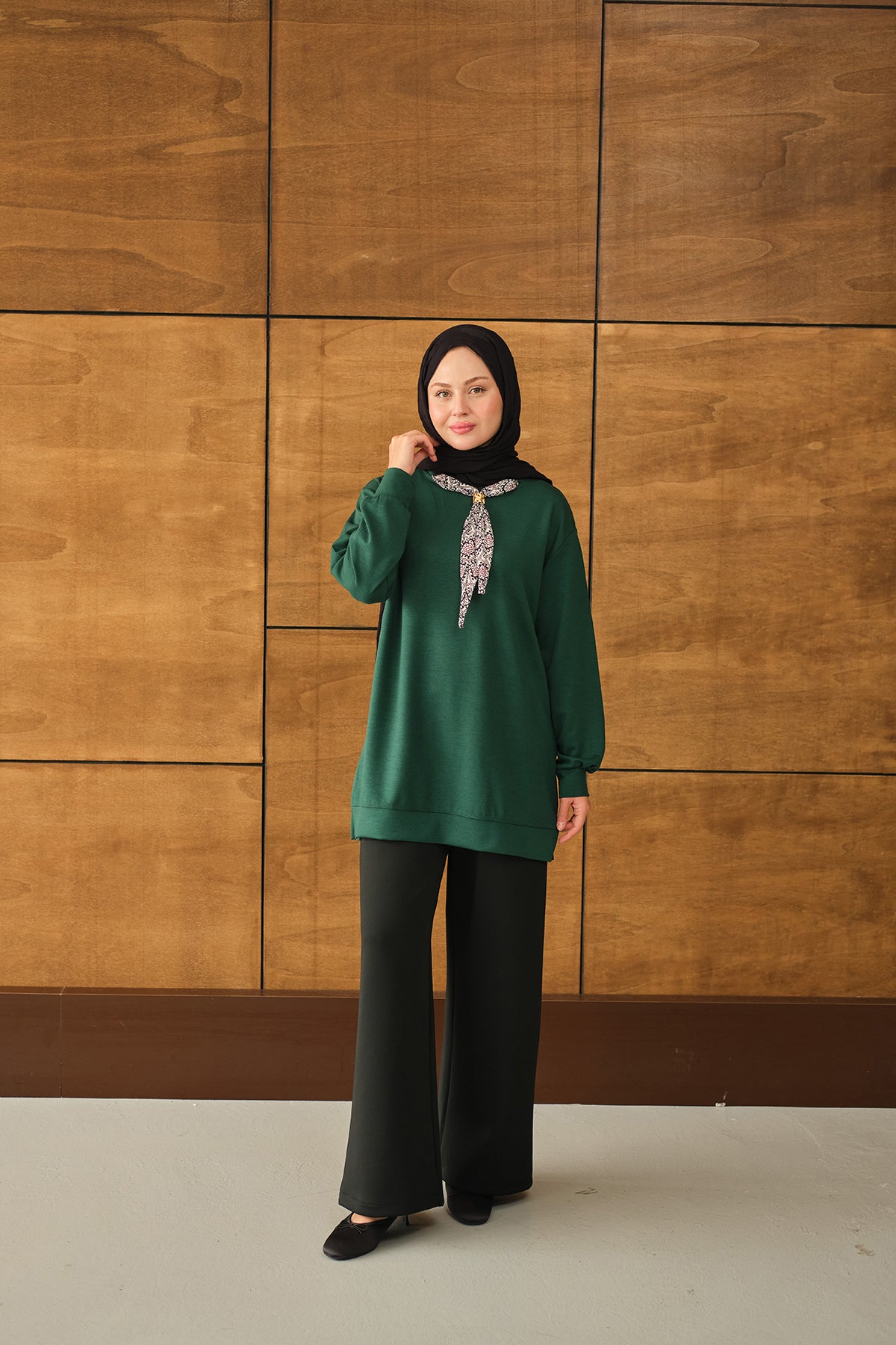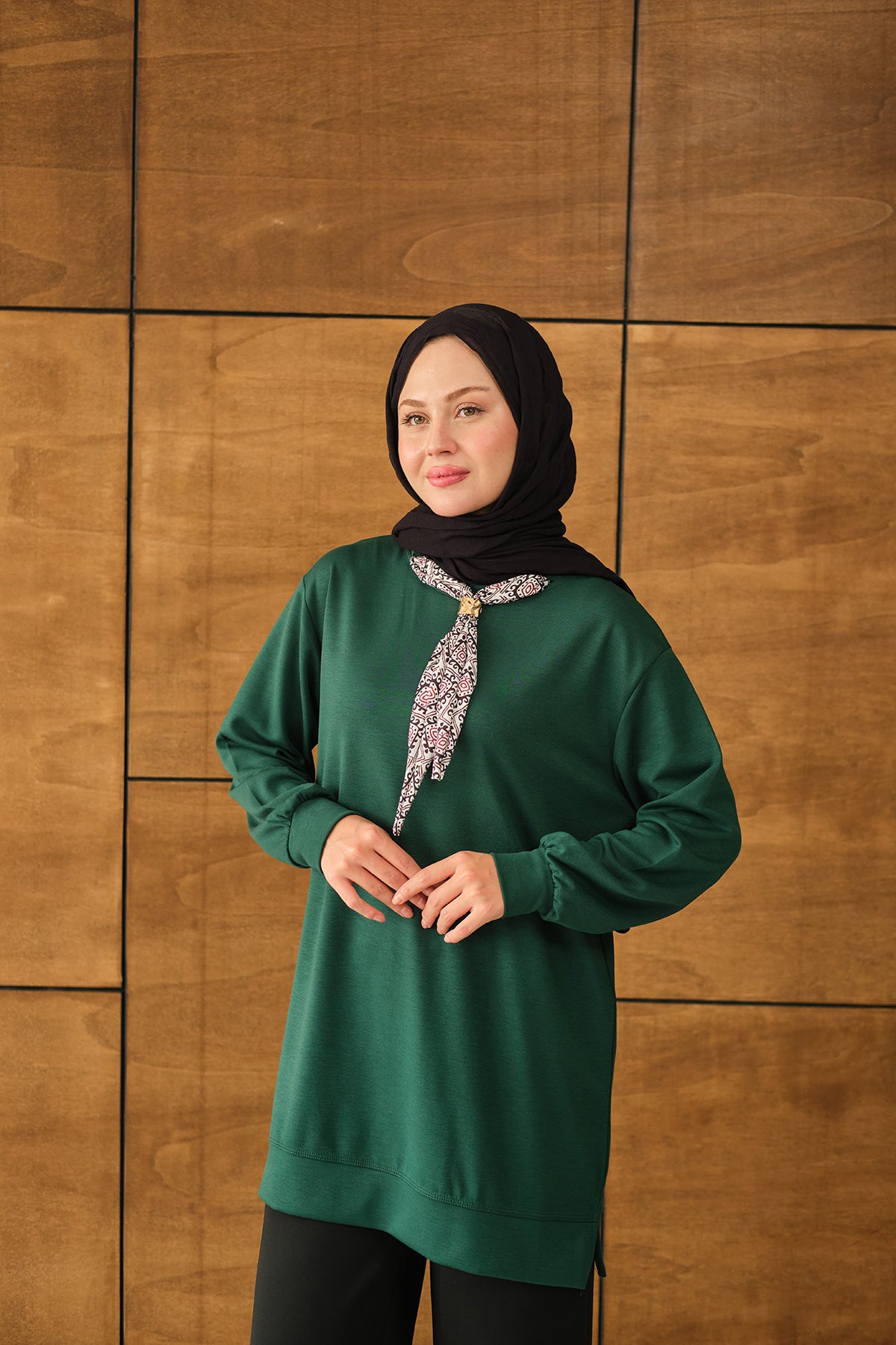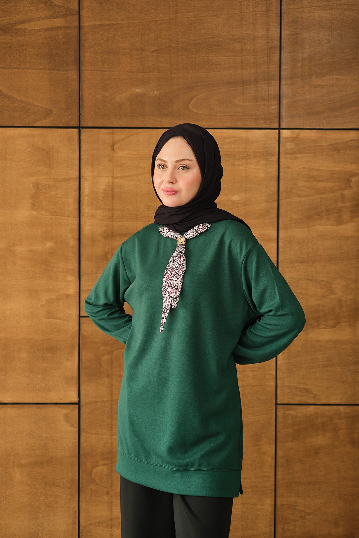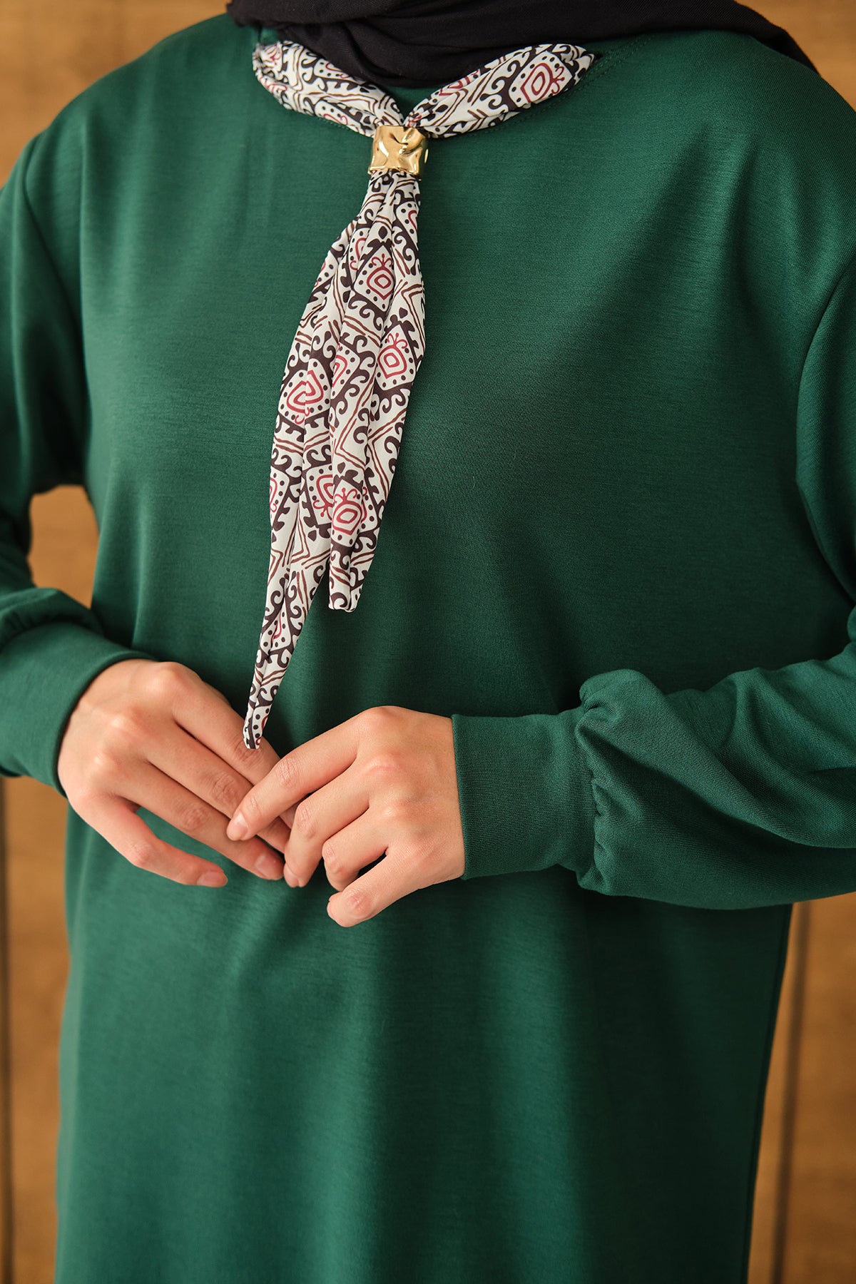 Yaka Fularlı Tunik Zümrüt Yeşil