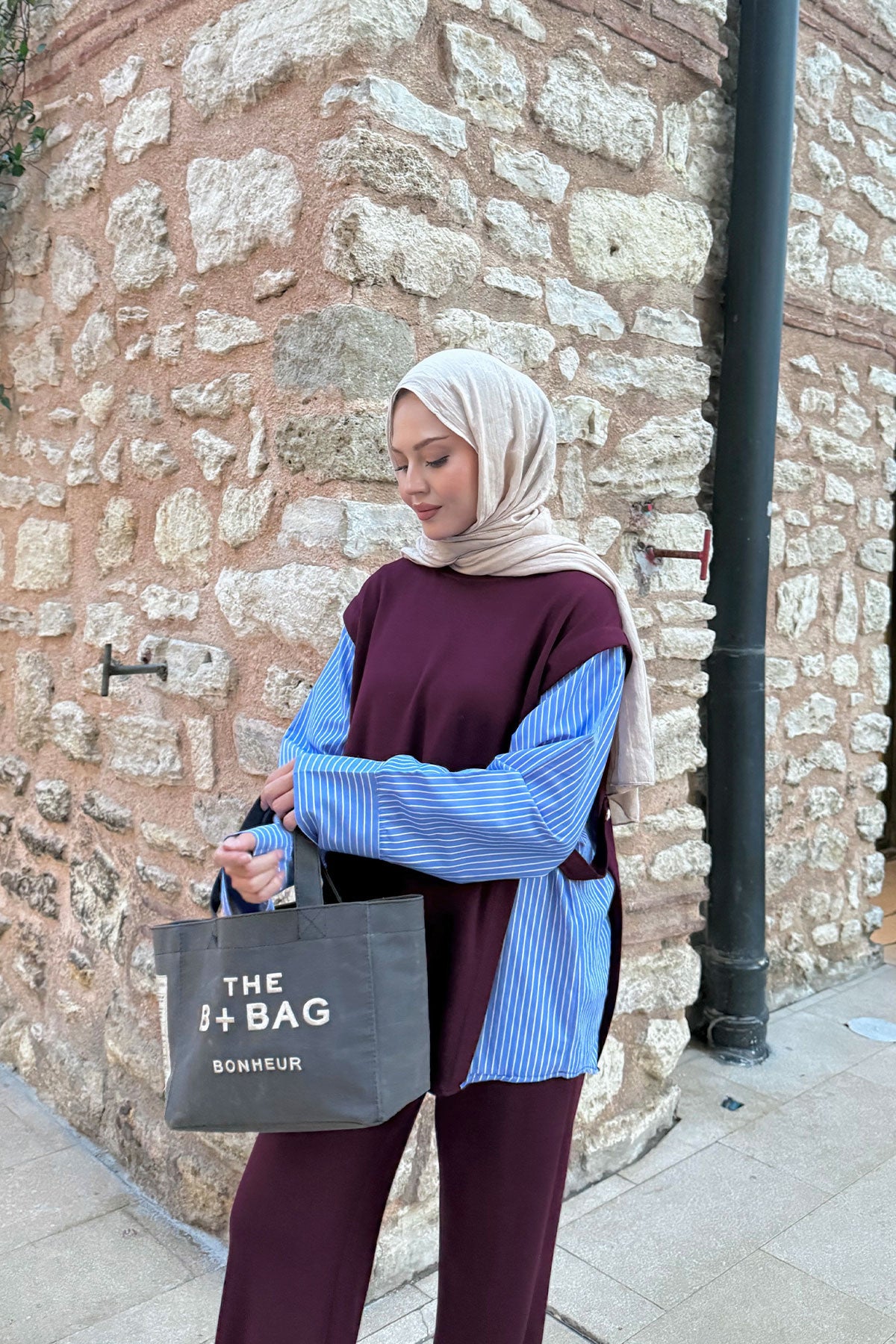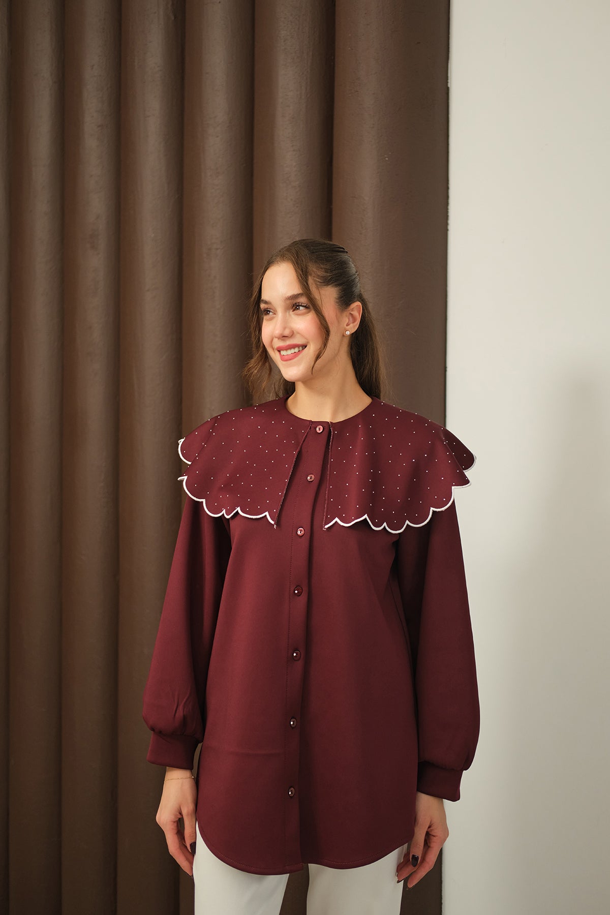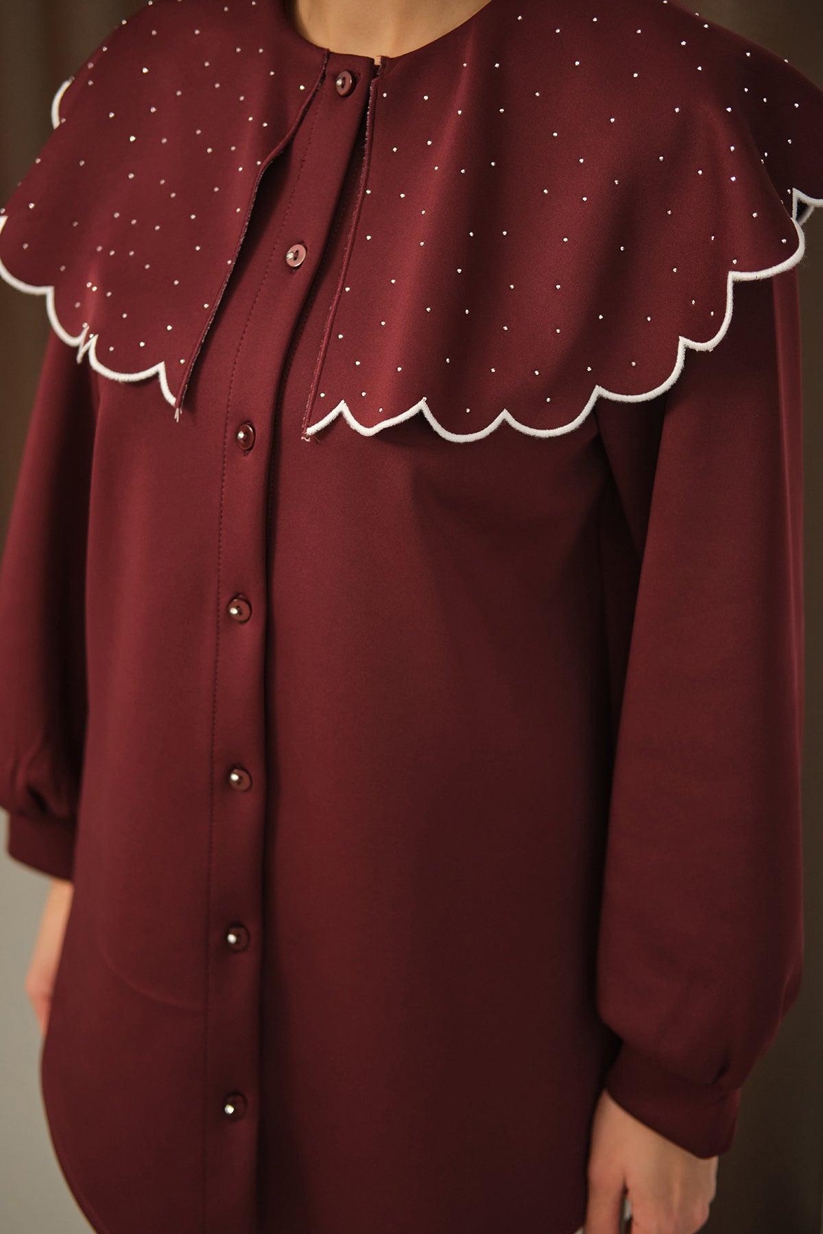 Yakası Taşlı Tunik Bordo