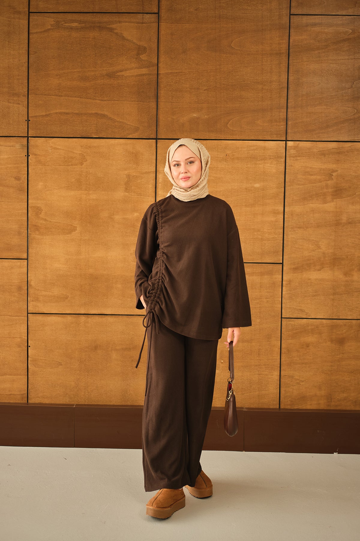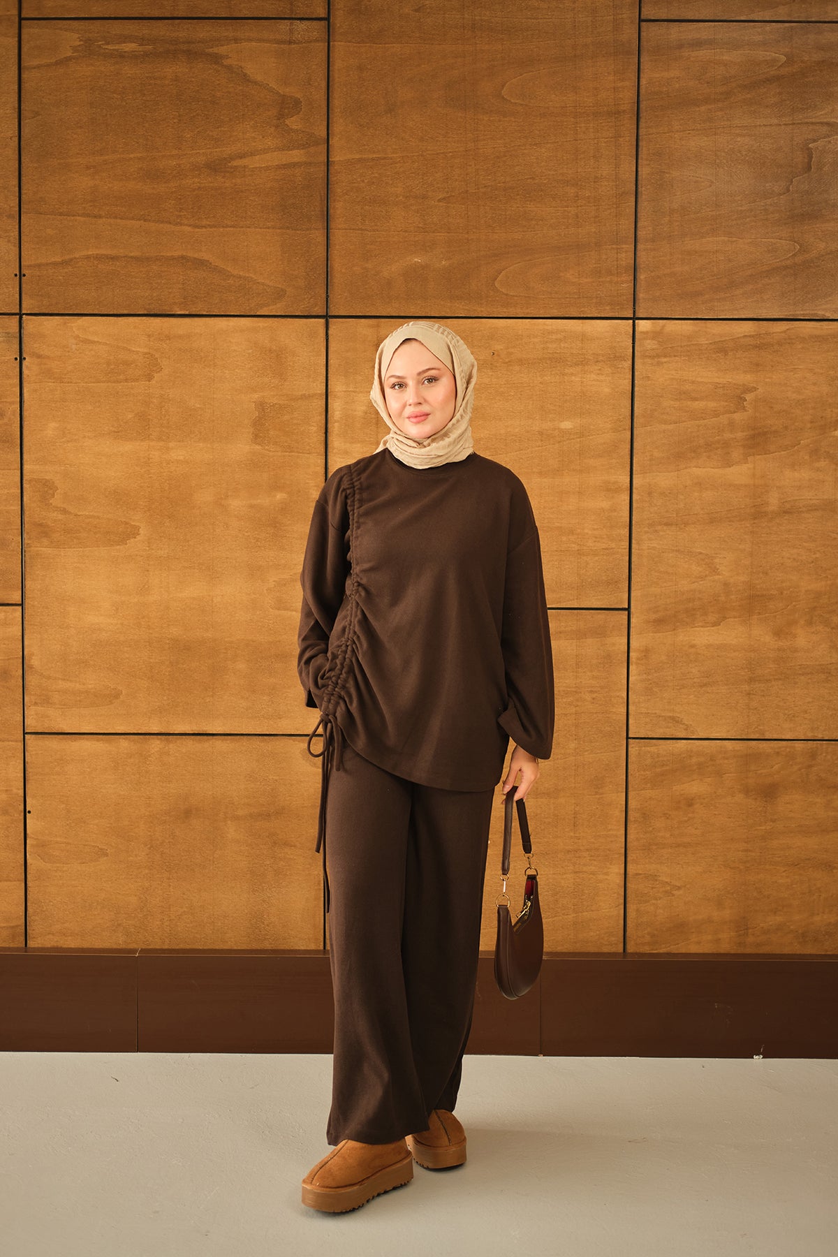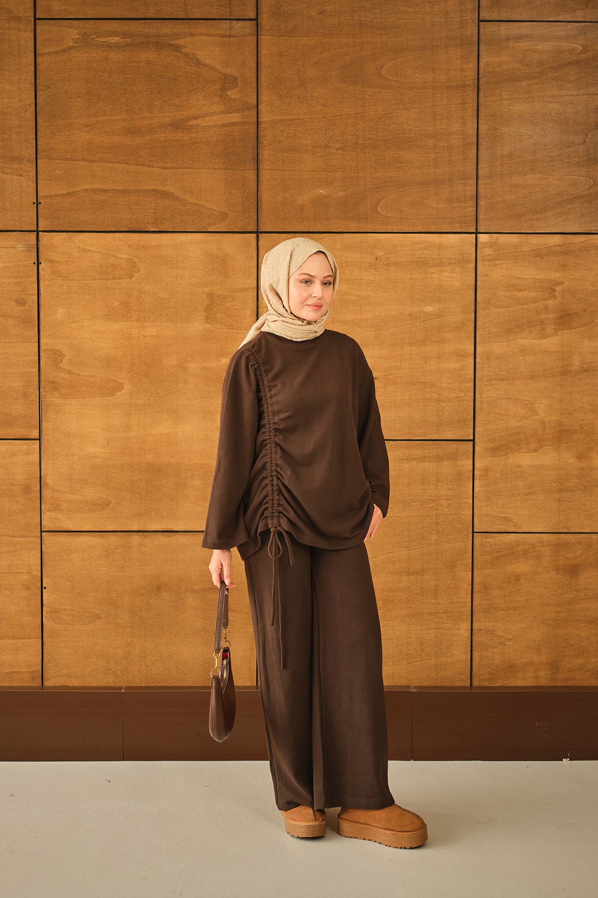 Yan Bağlamalı Takım Kahverengi