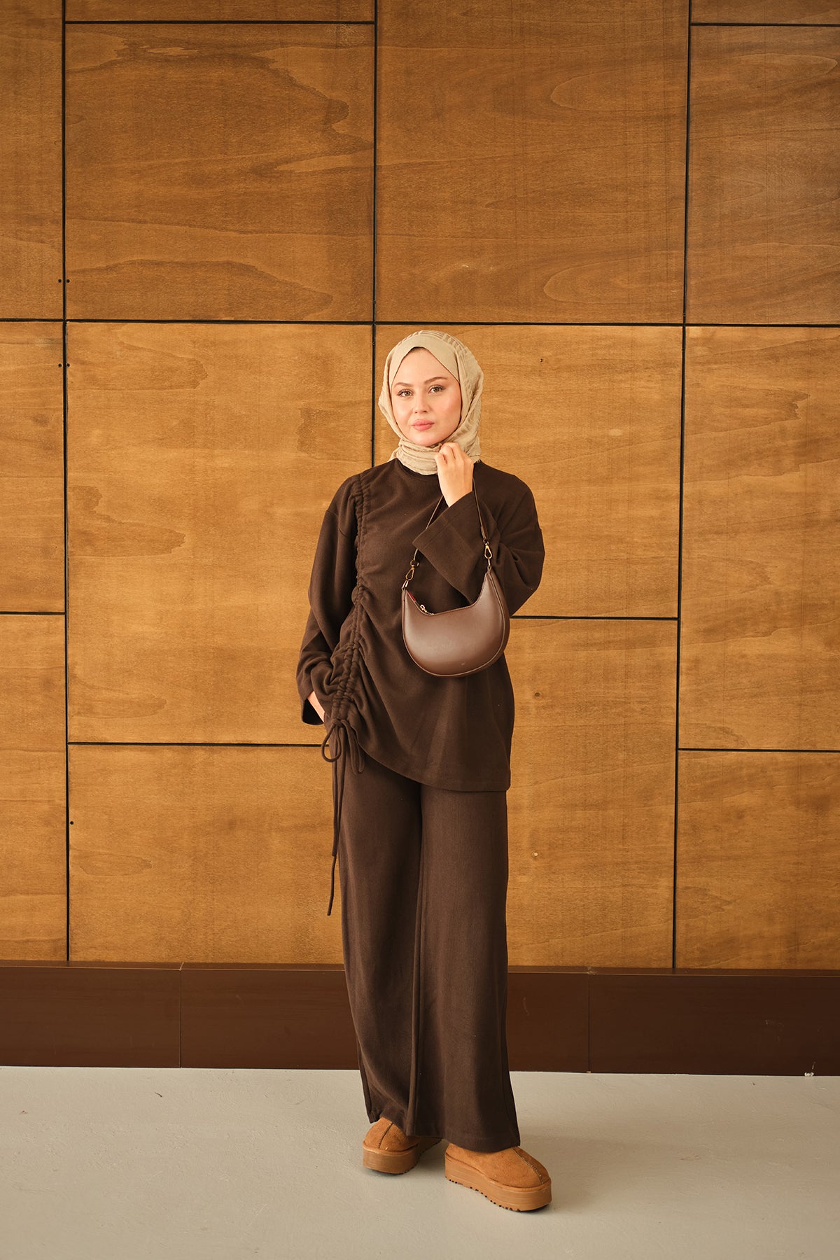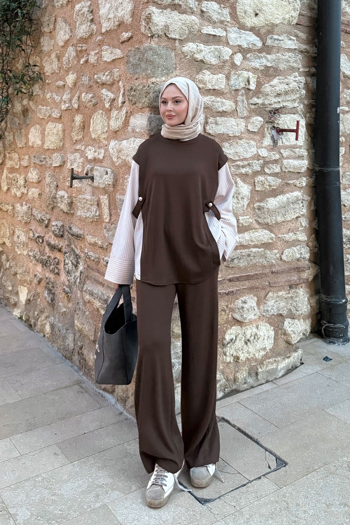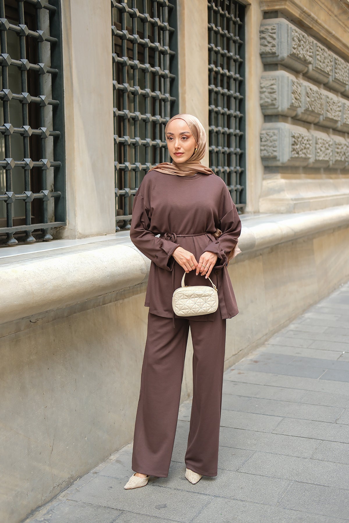 Yan Bağlamalı Takım Kahverengi