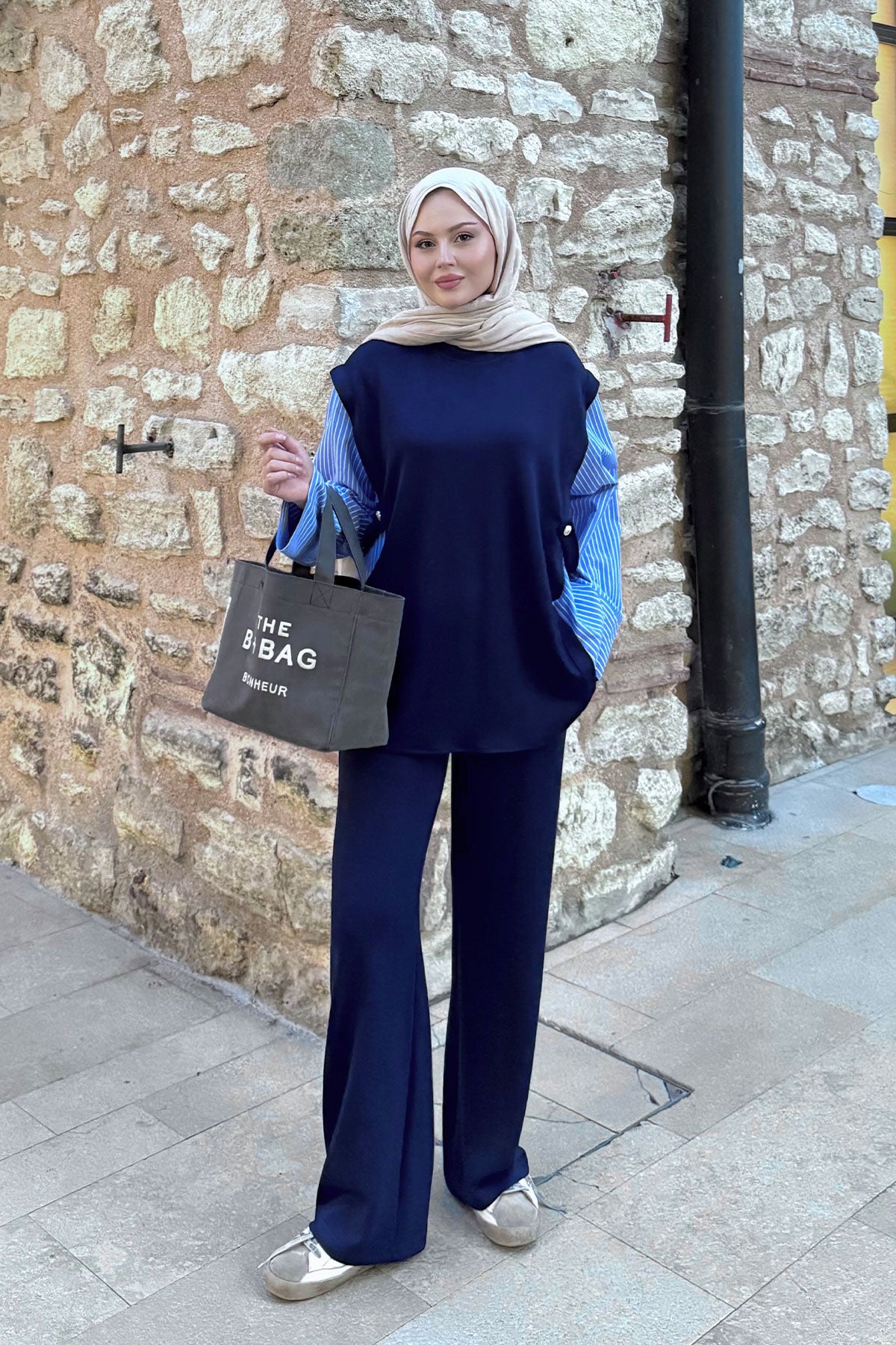 Yandan Yırtmaçlı Scuba Pantolon Lacivert
