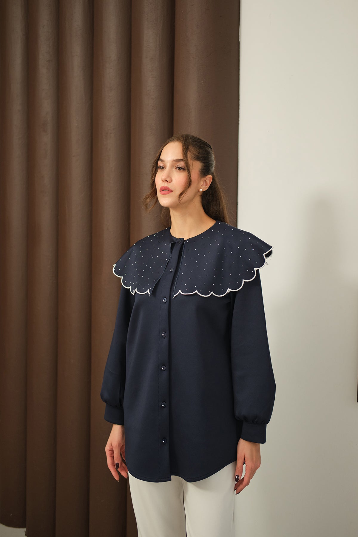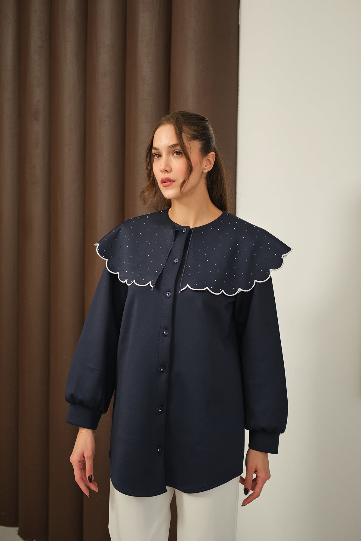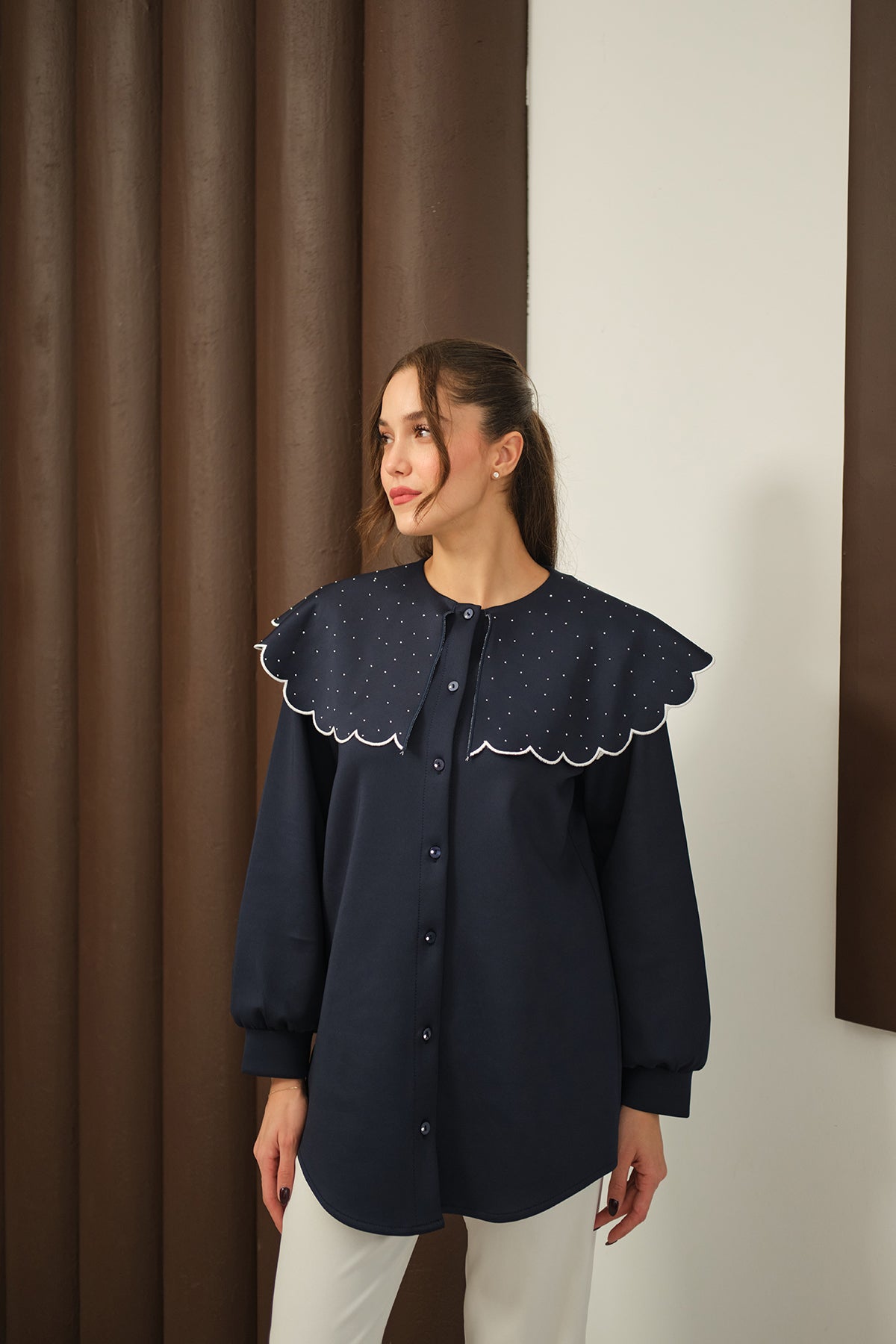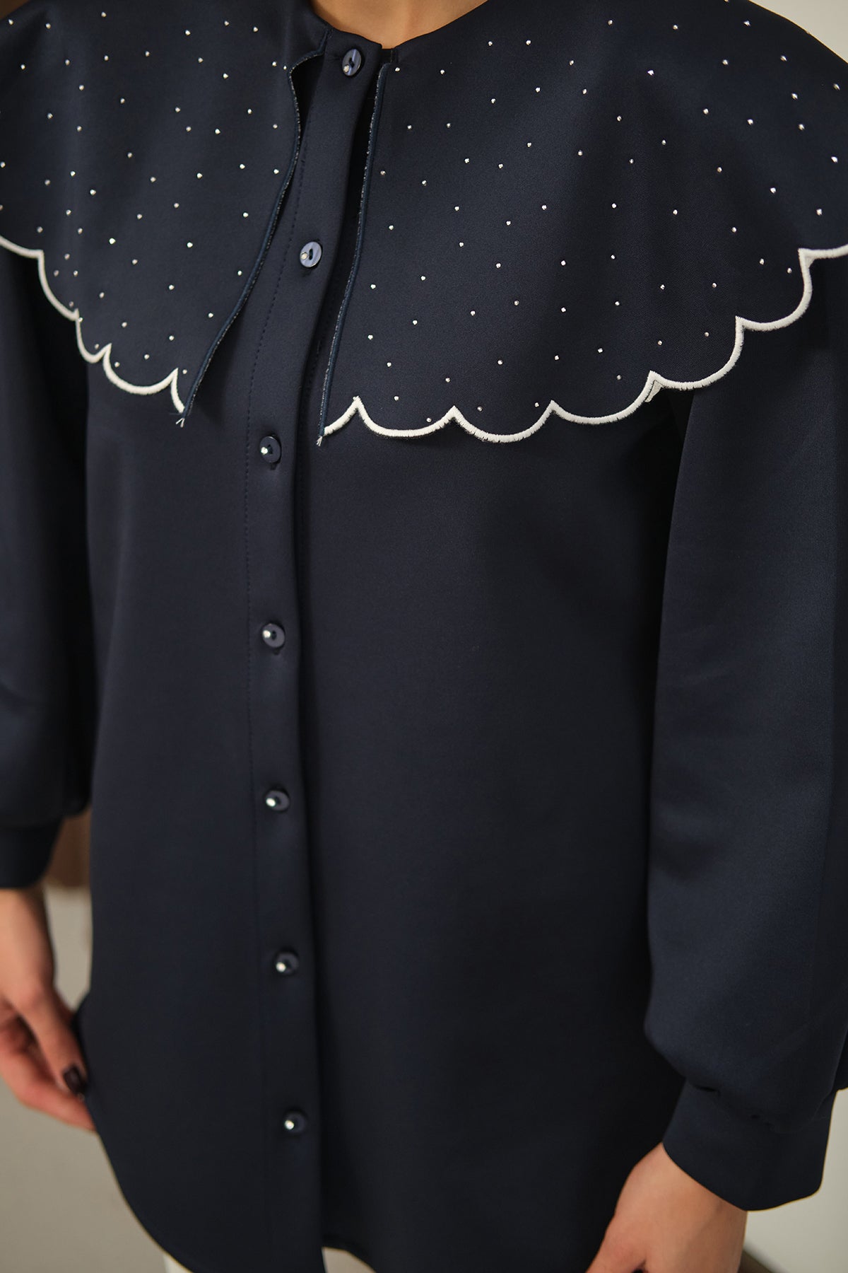 Yakası Taşlı Tunik Lacivert