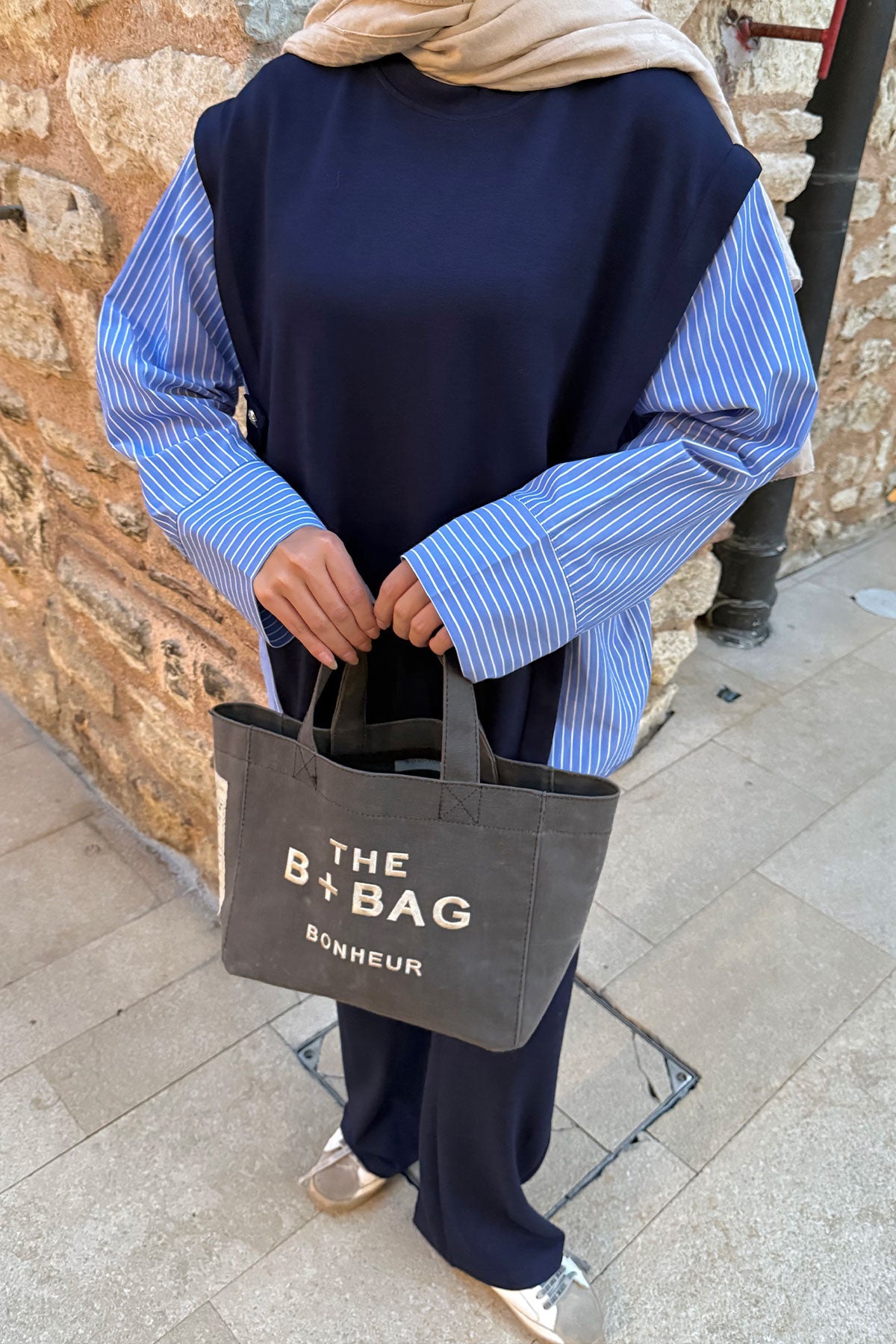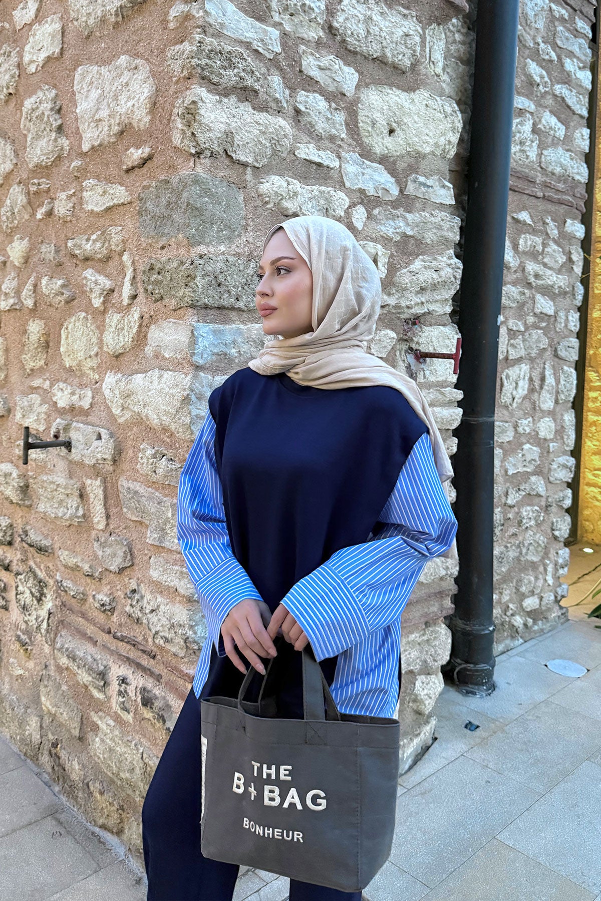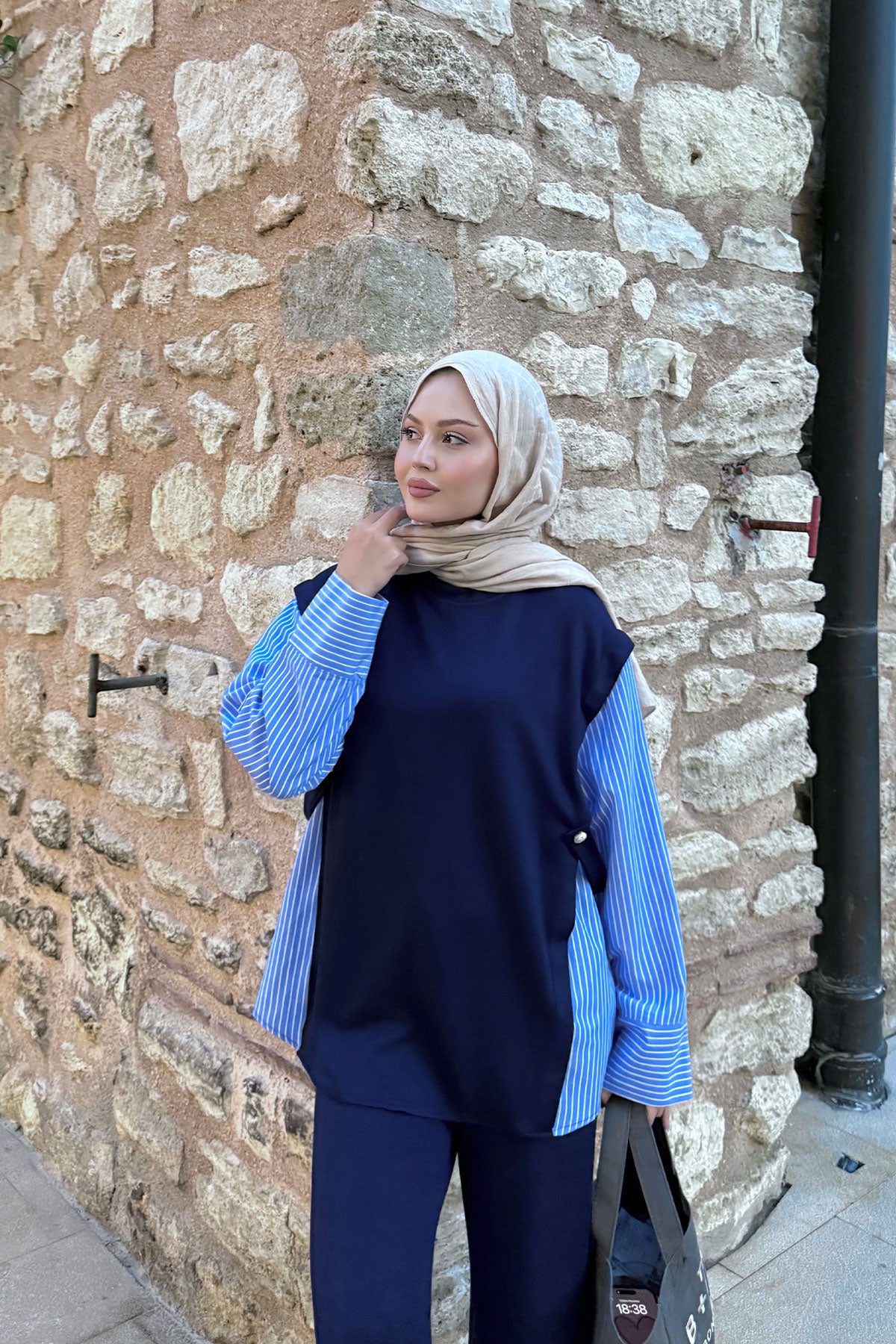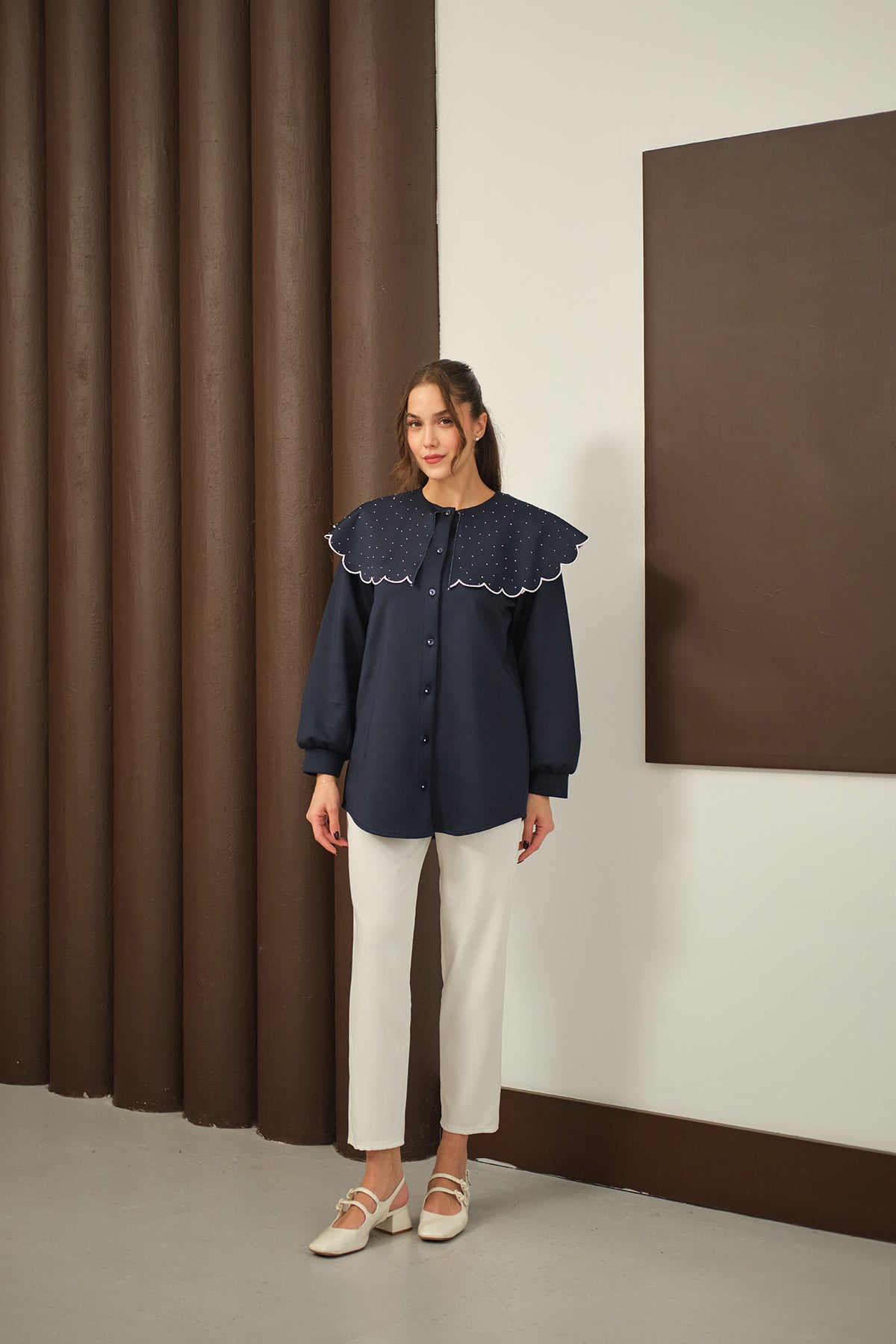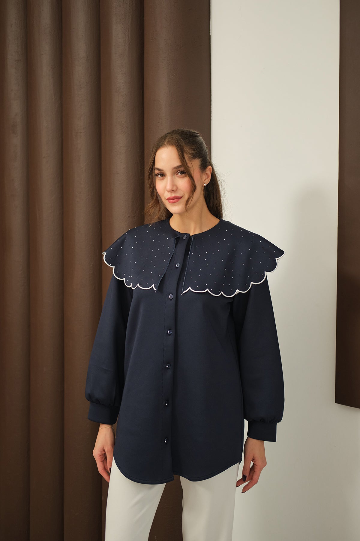 Yakası Taşlı Tunik Lacivert