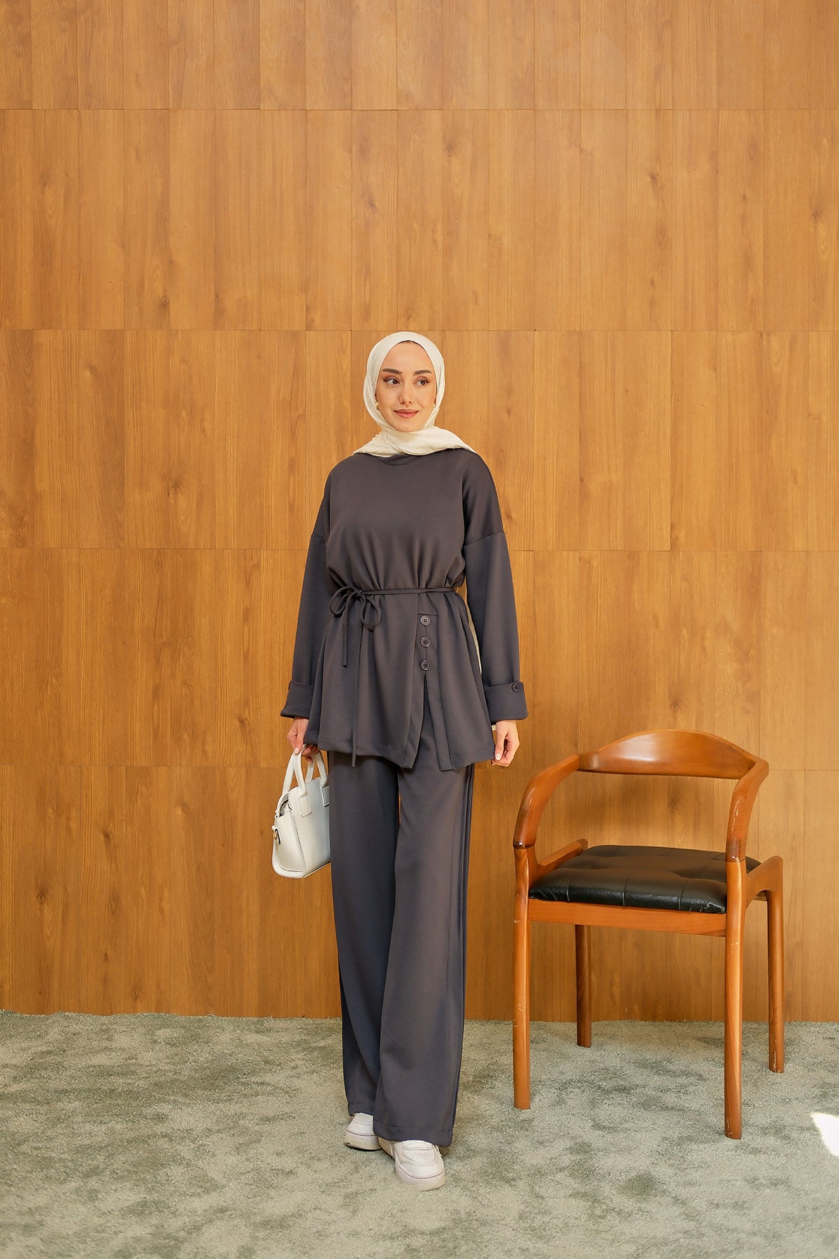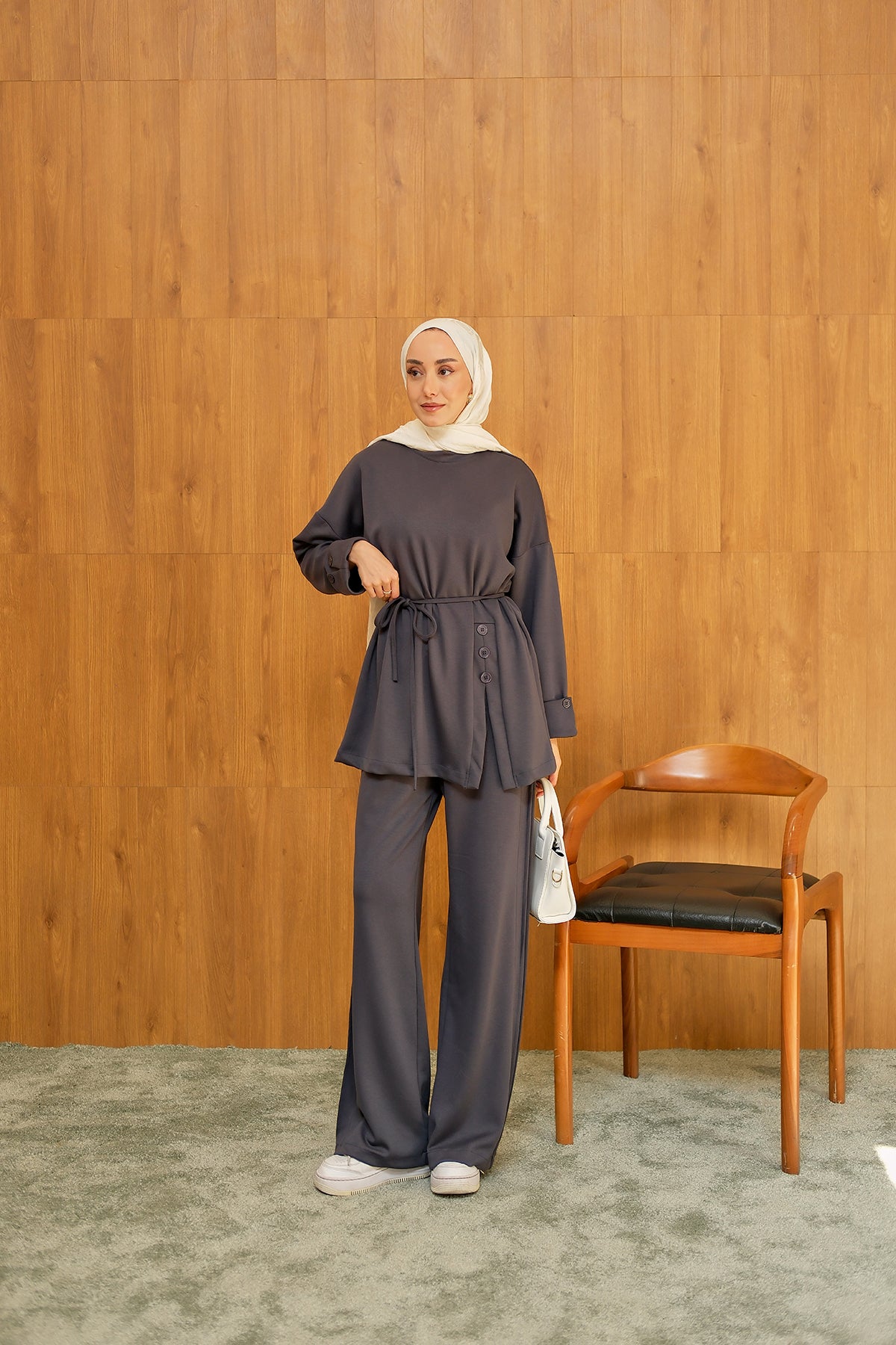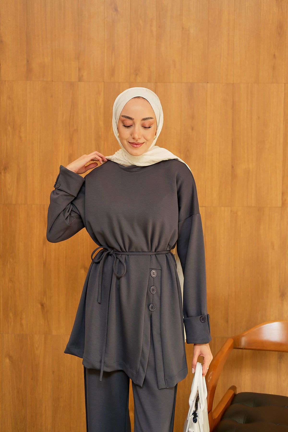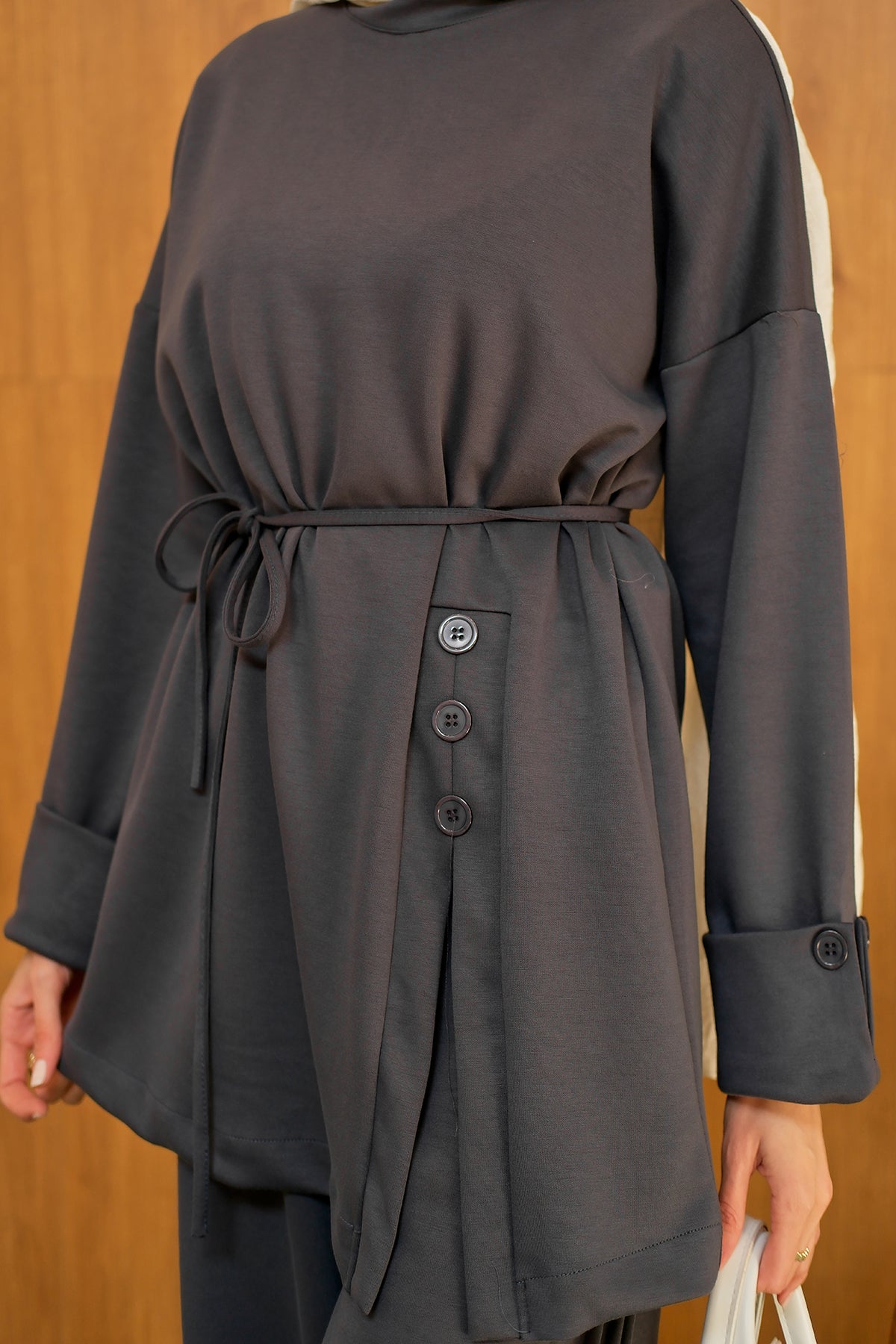 Yan Düğme Detay Takım Antrasit