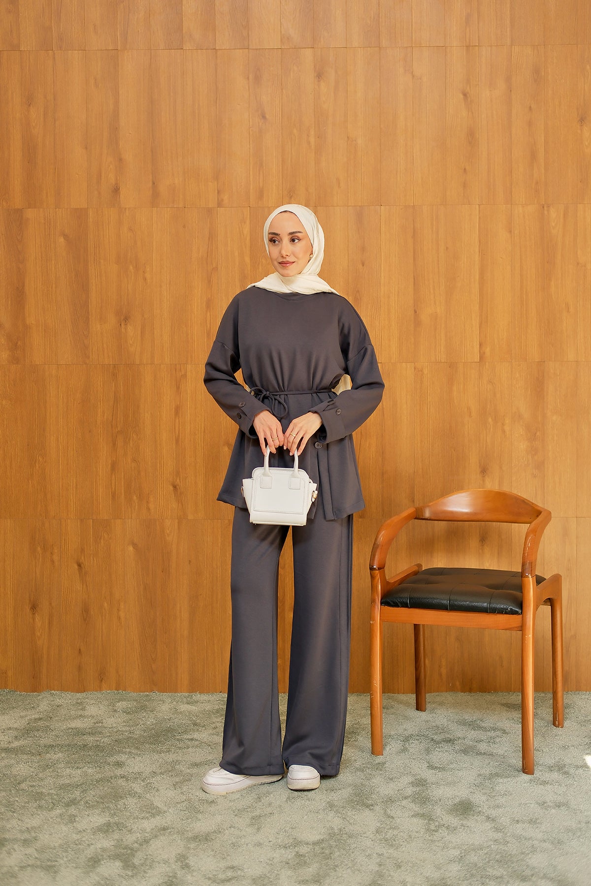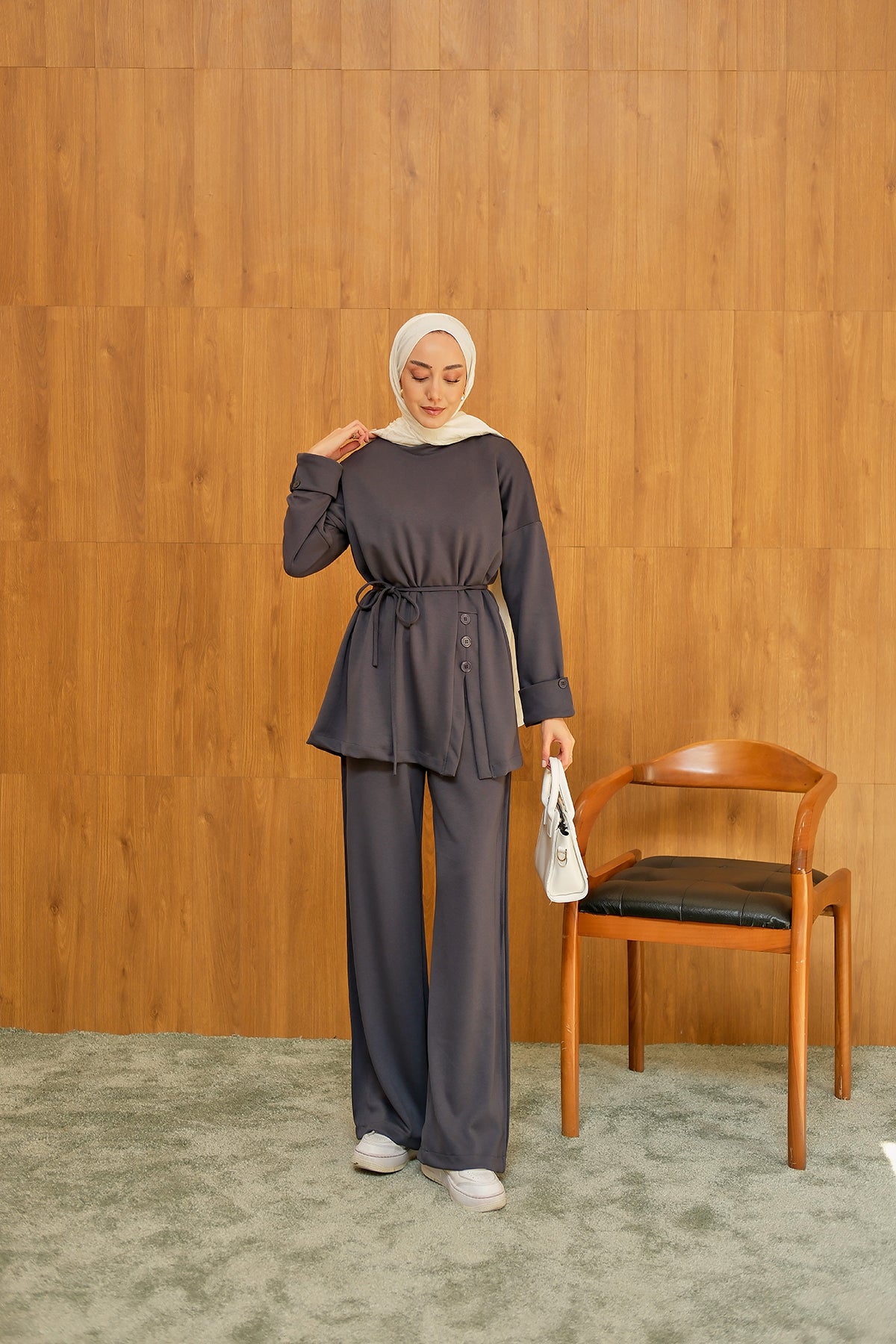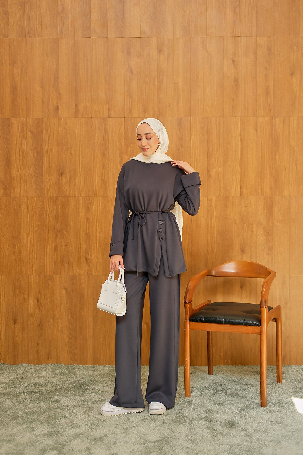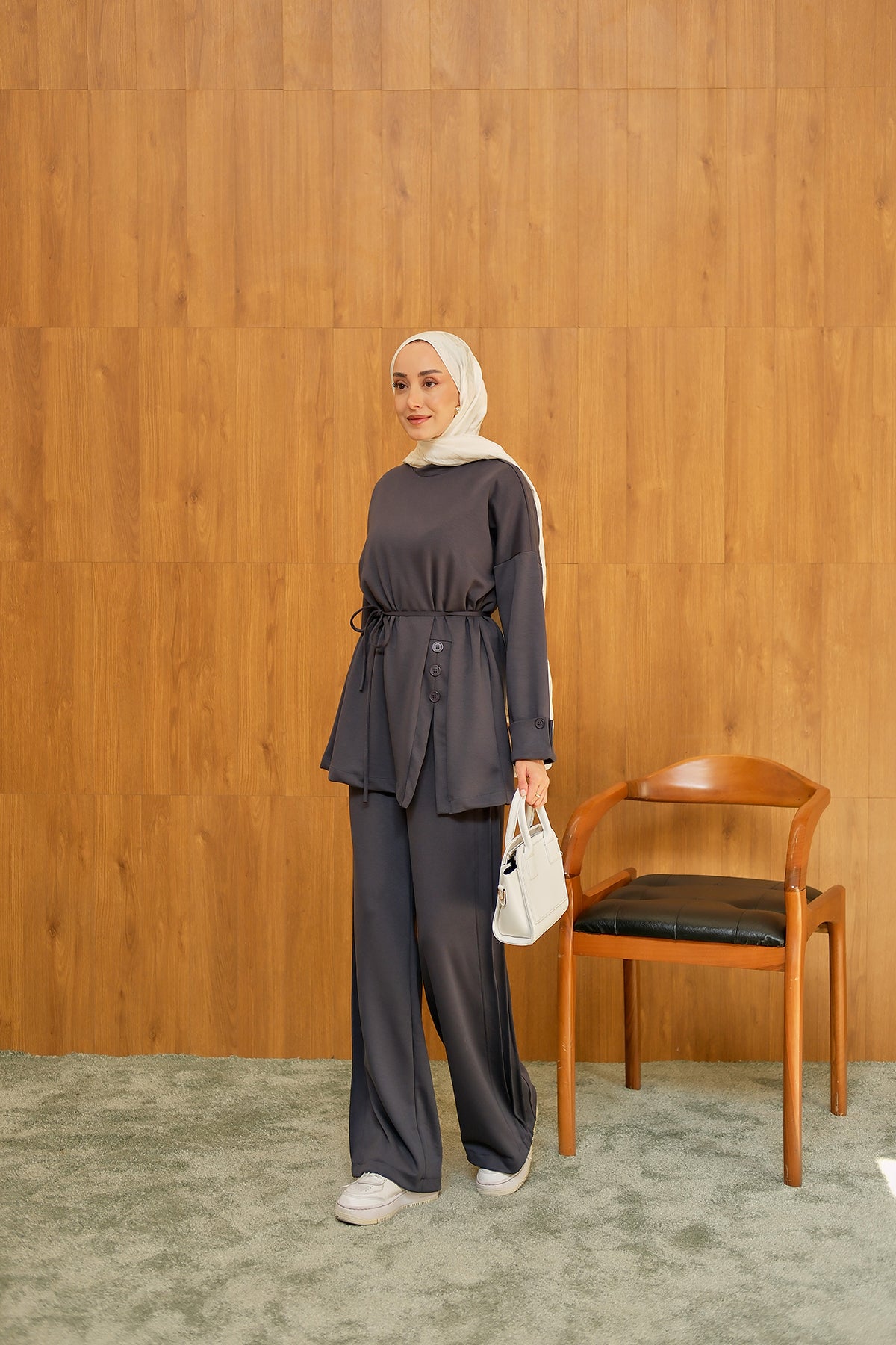 Yan Düğme Detay Takım Antrasit