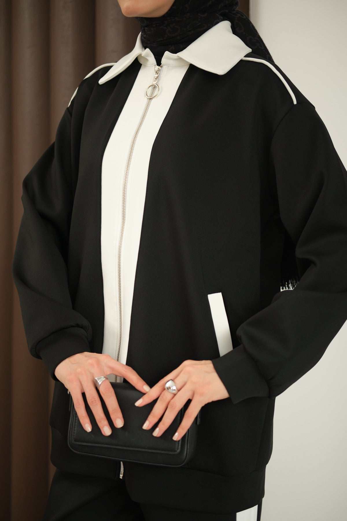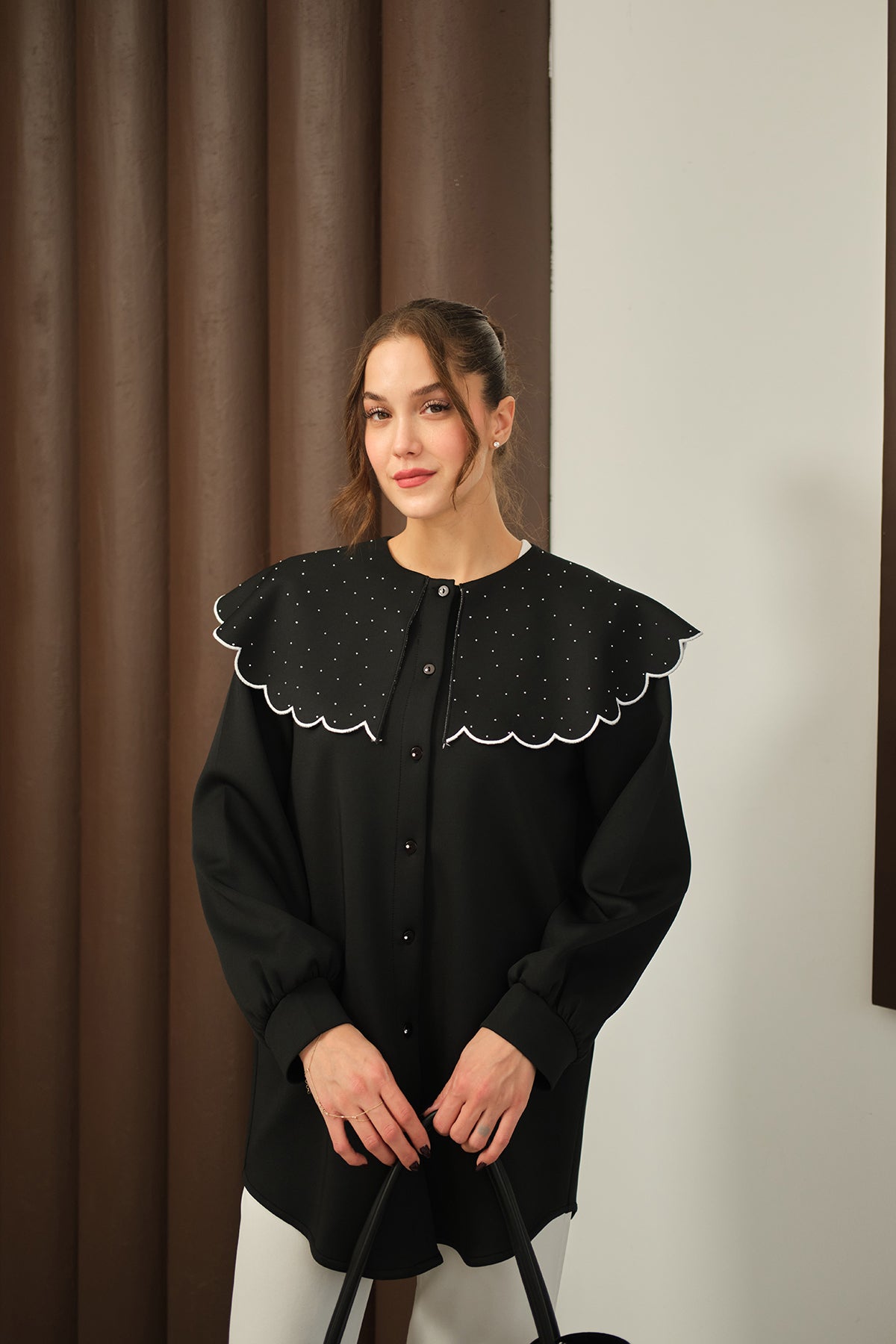 Yakası Taşlı Tunik Siyah