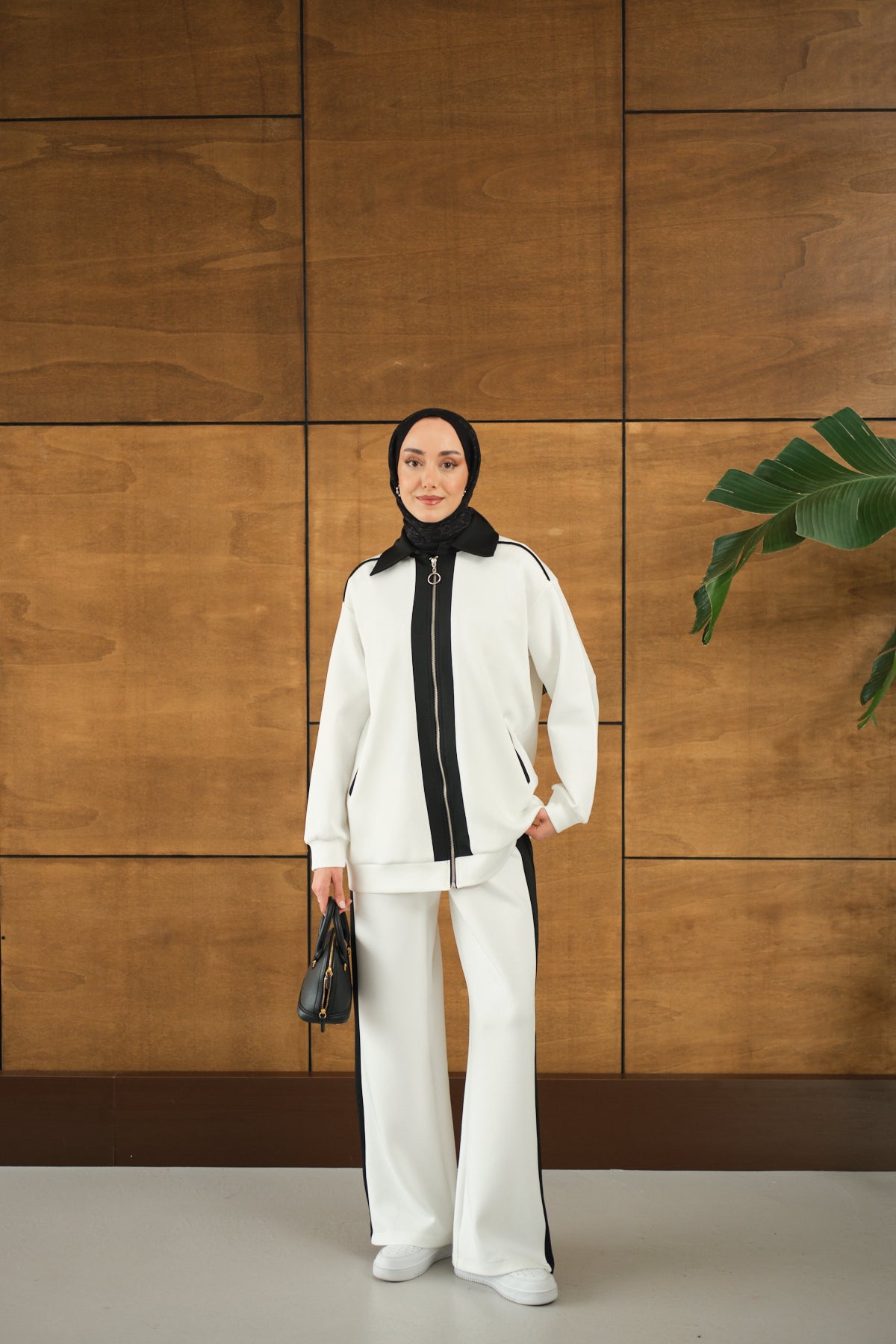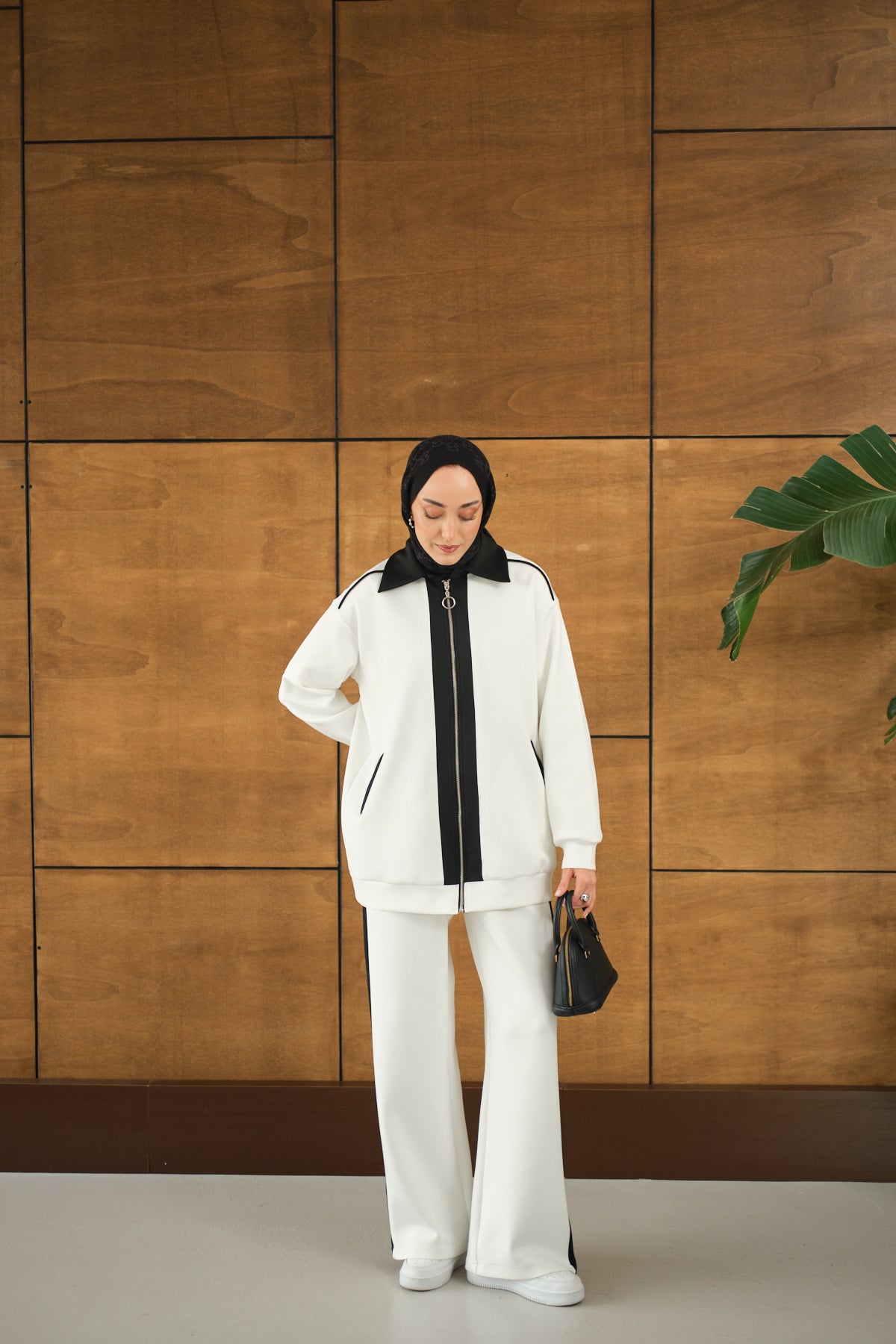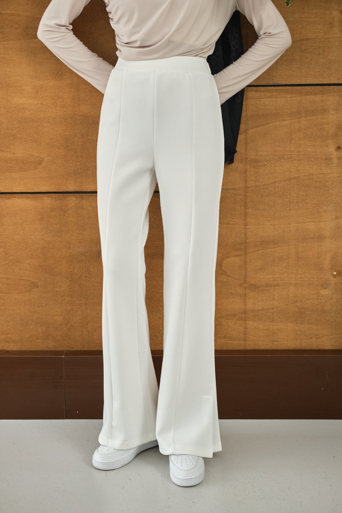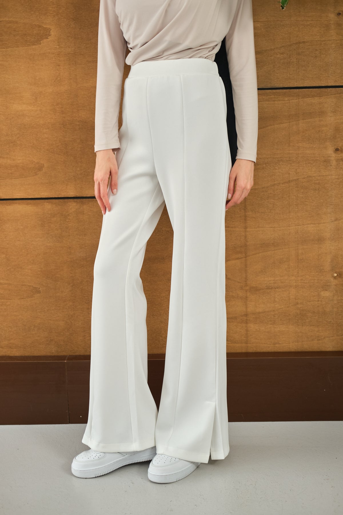 Yandan Yırtmaçlı Scuba Pantolon Beyaz