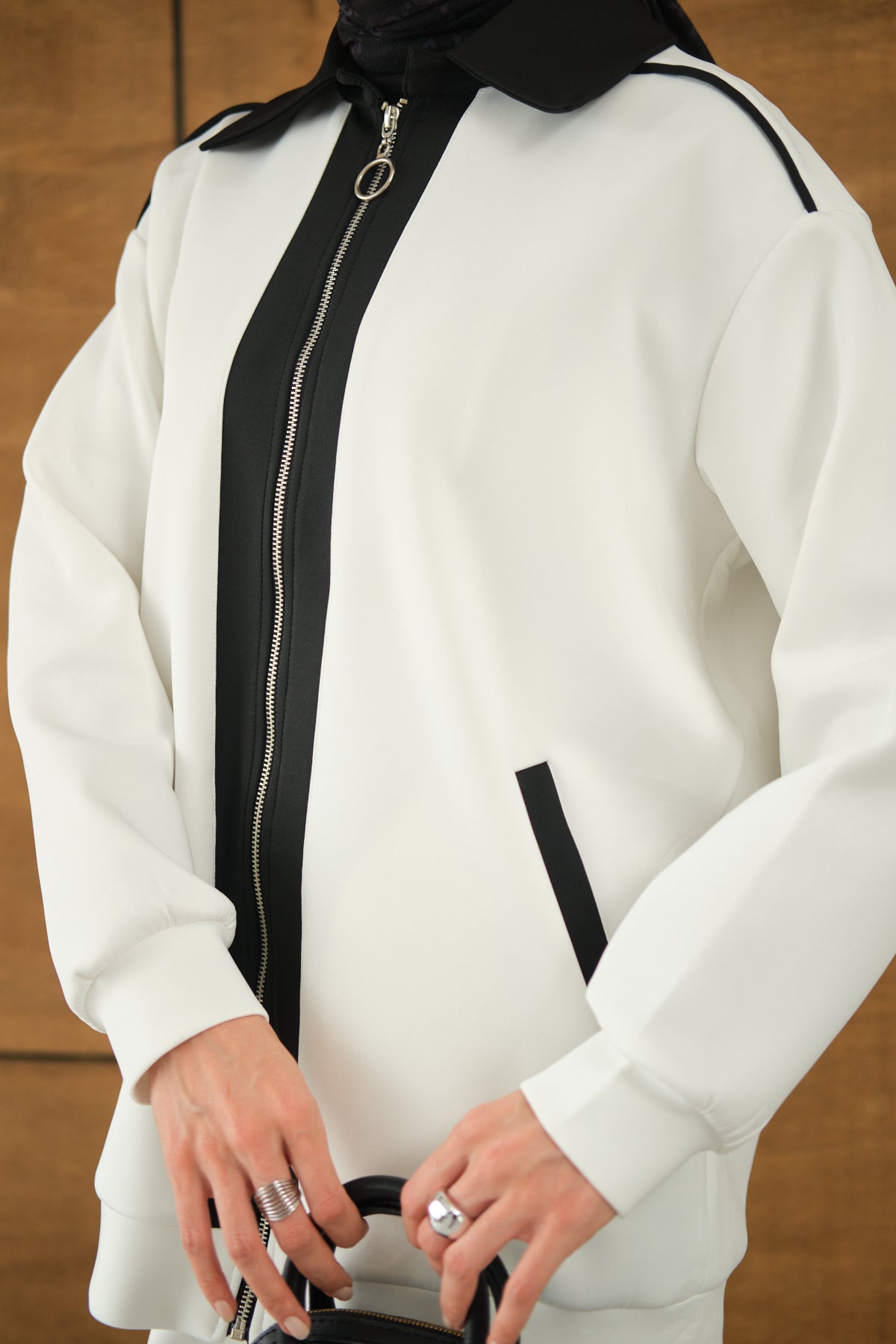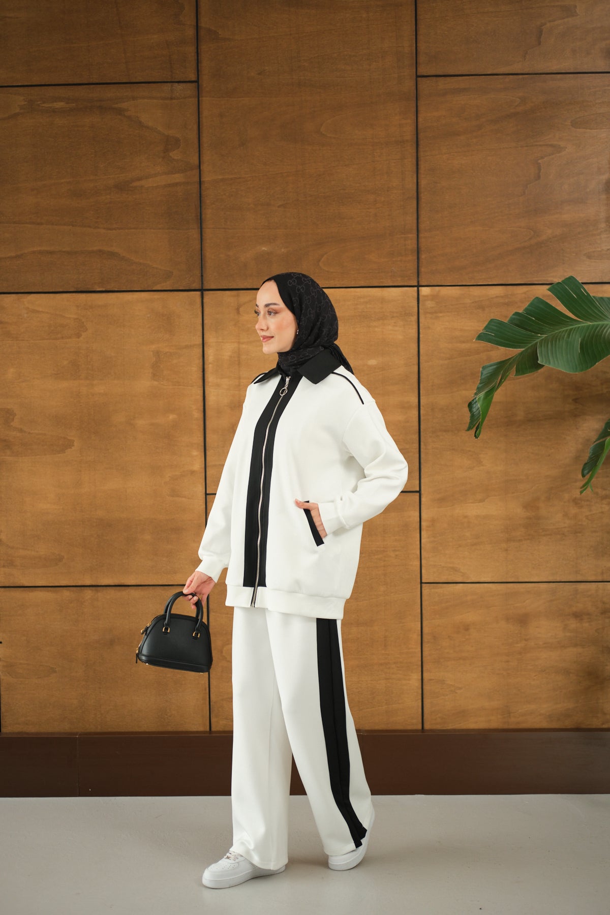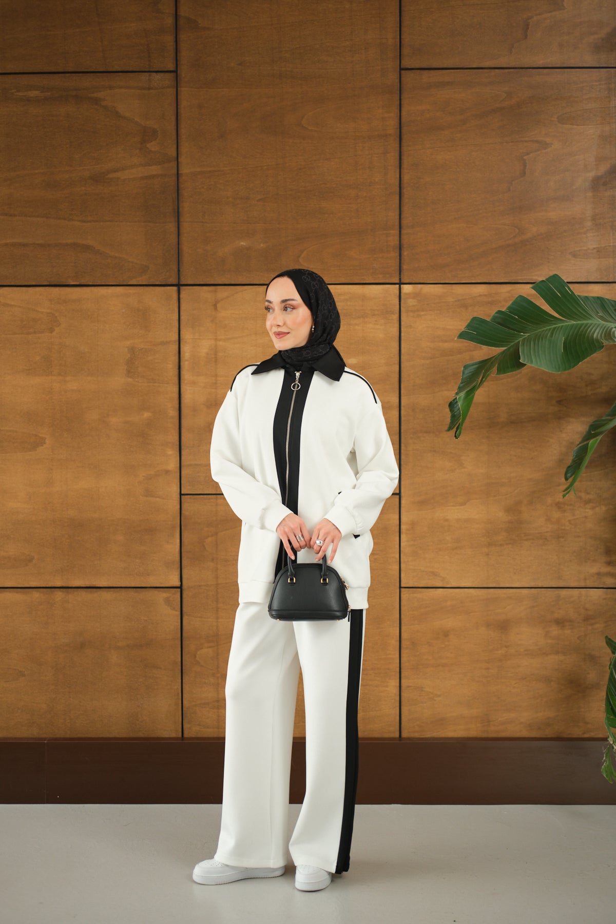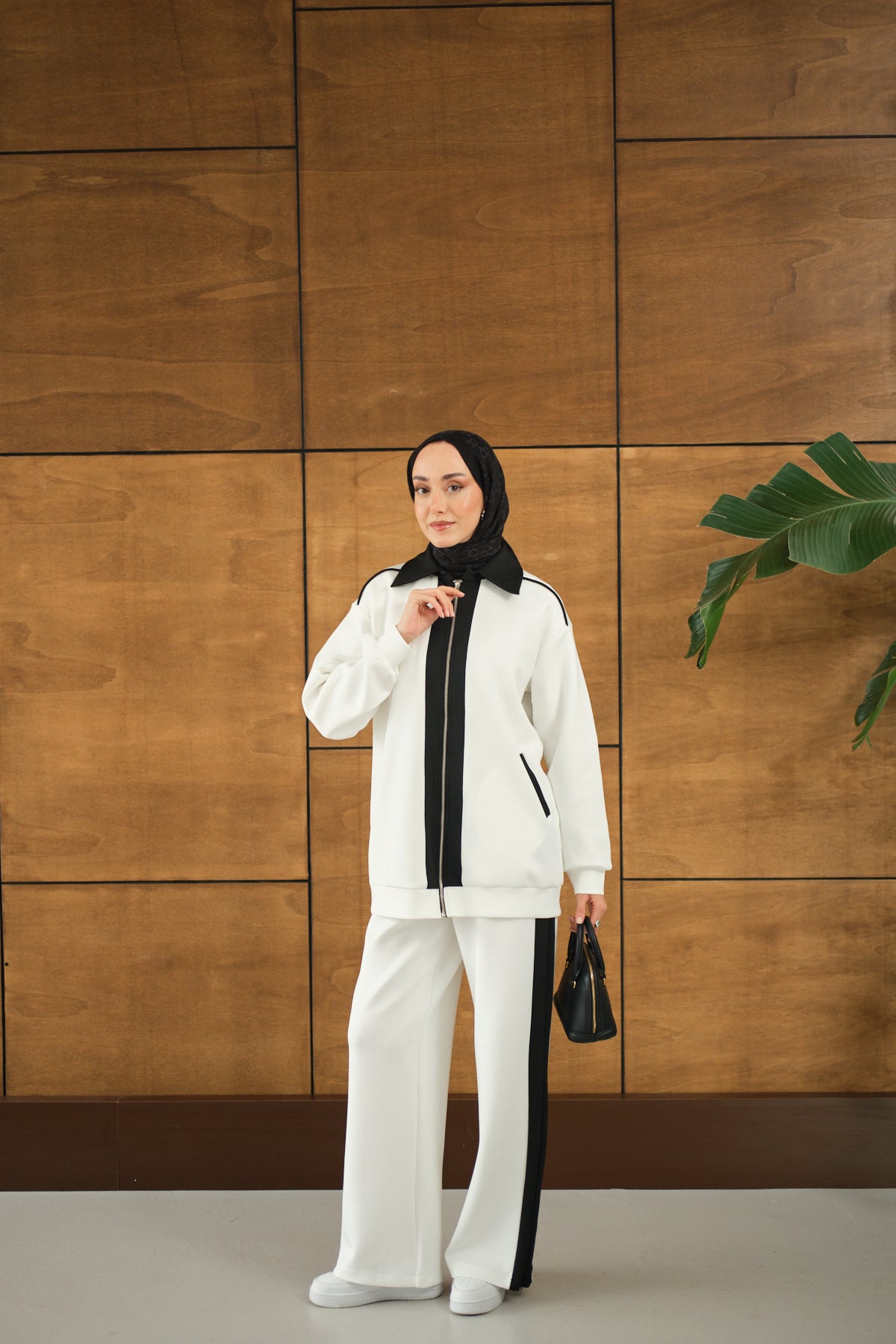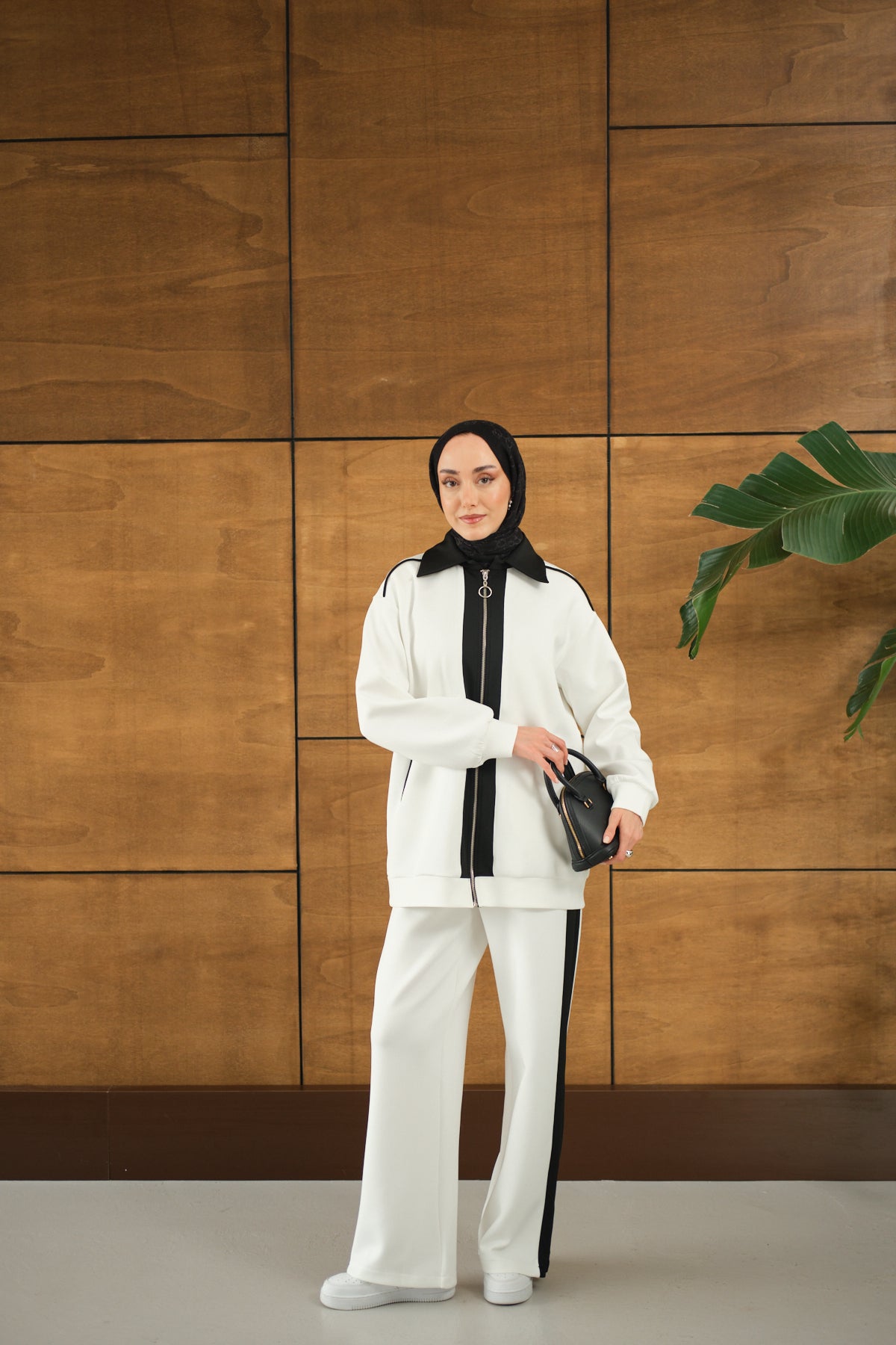 Yandan Yırtmaçlı Scuba Pantolon Beyaz