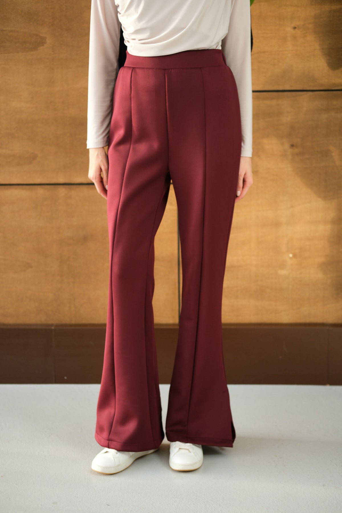 Yandan Yırtmaçlı Scuba Pantolon Bordo