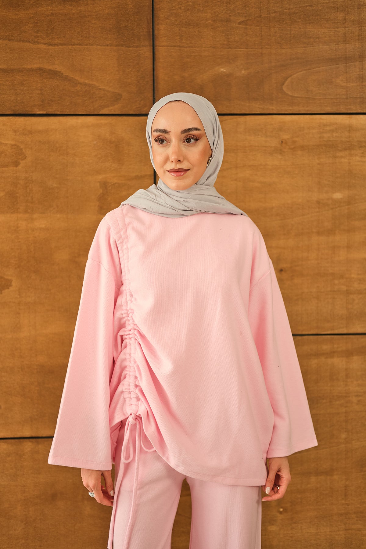 Yandan Biyeli İkili Takım Pembe