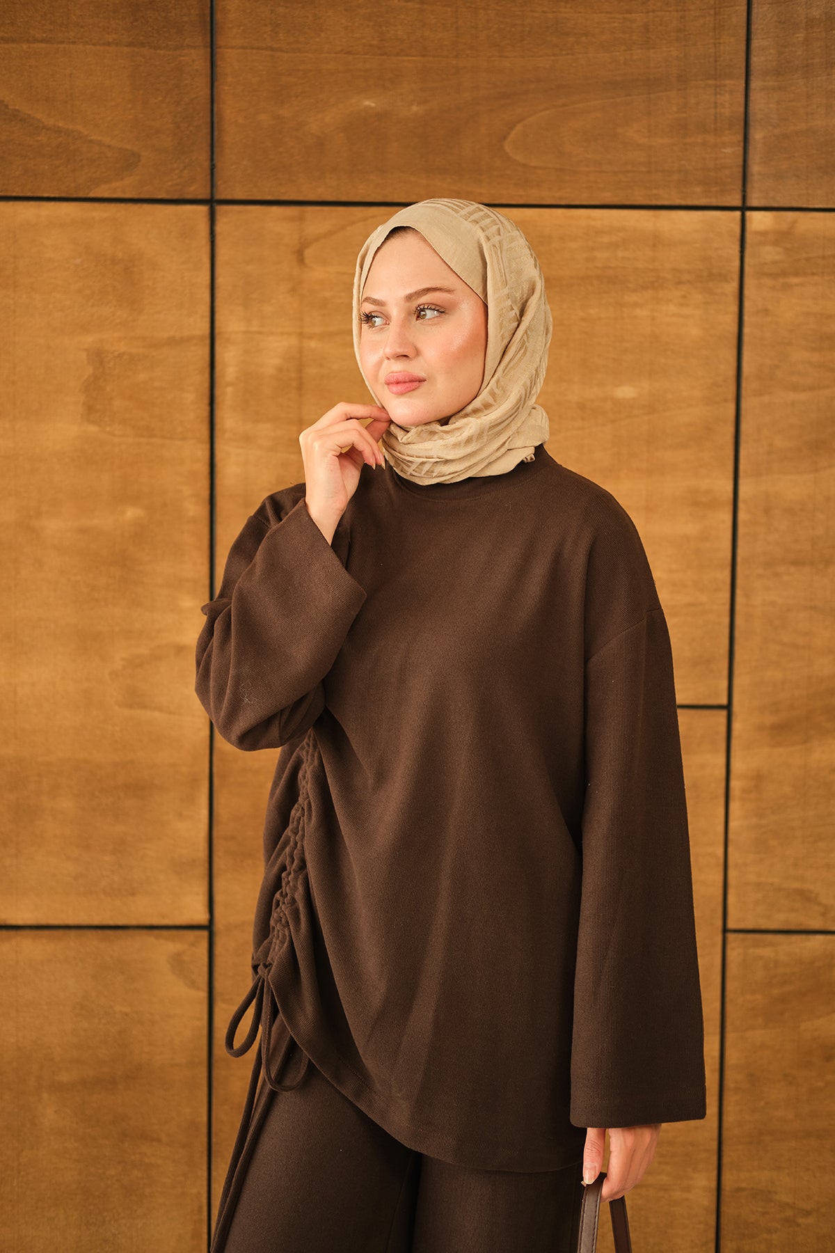 Yandan Biyeli İkili Takım Kahverengi