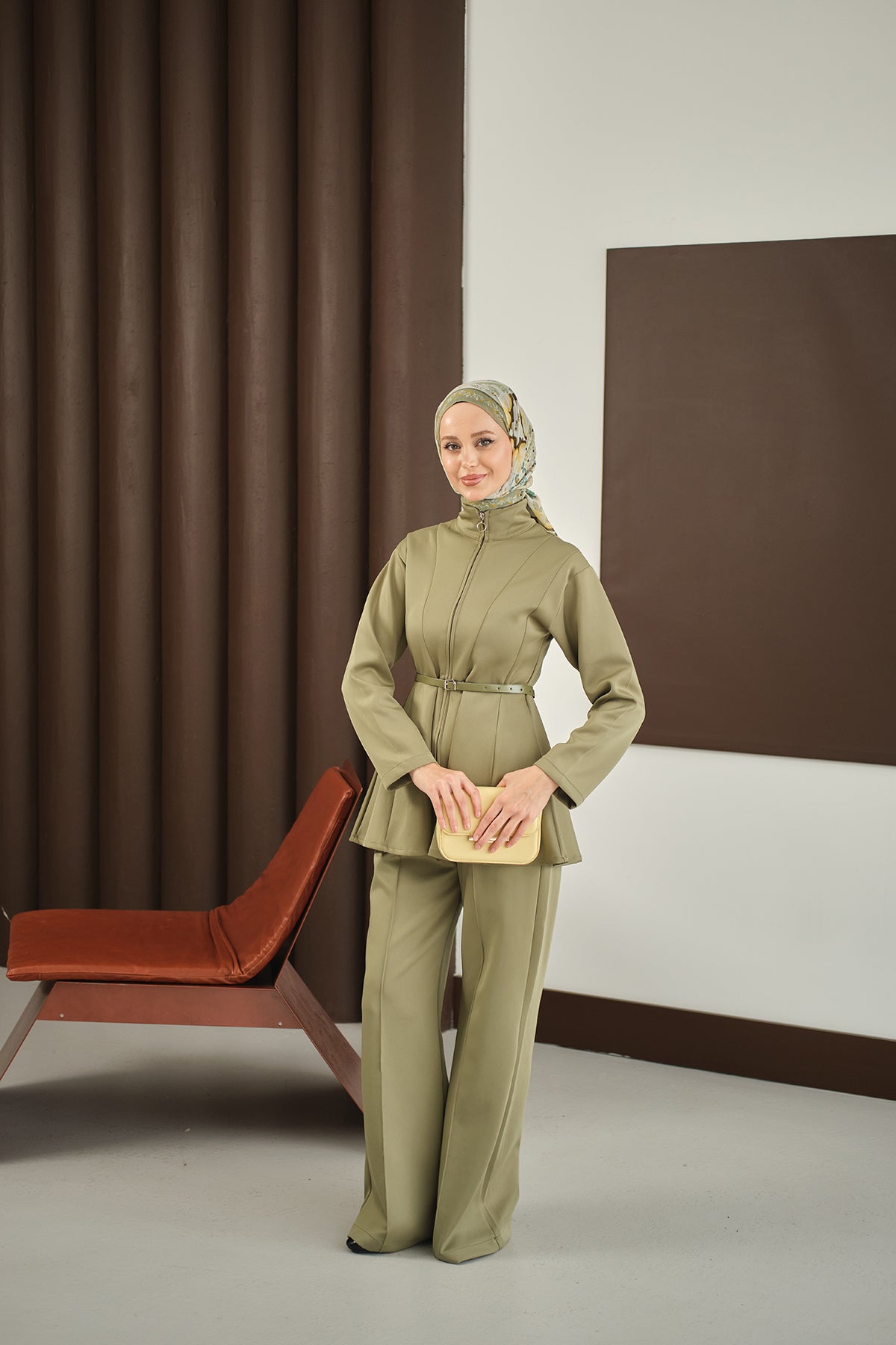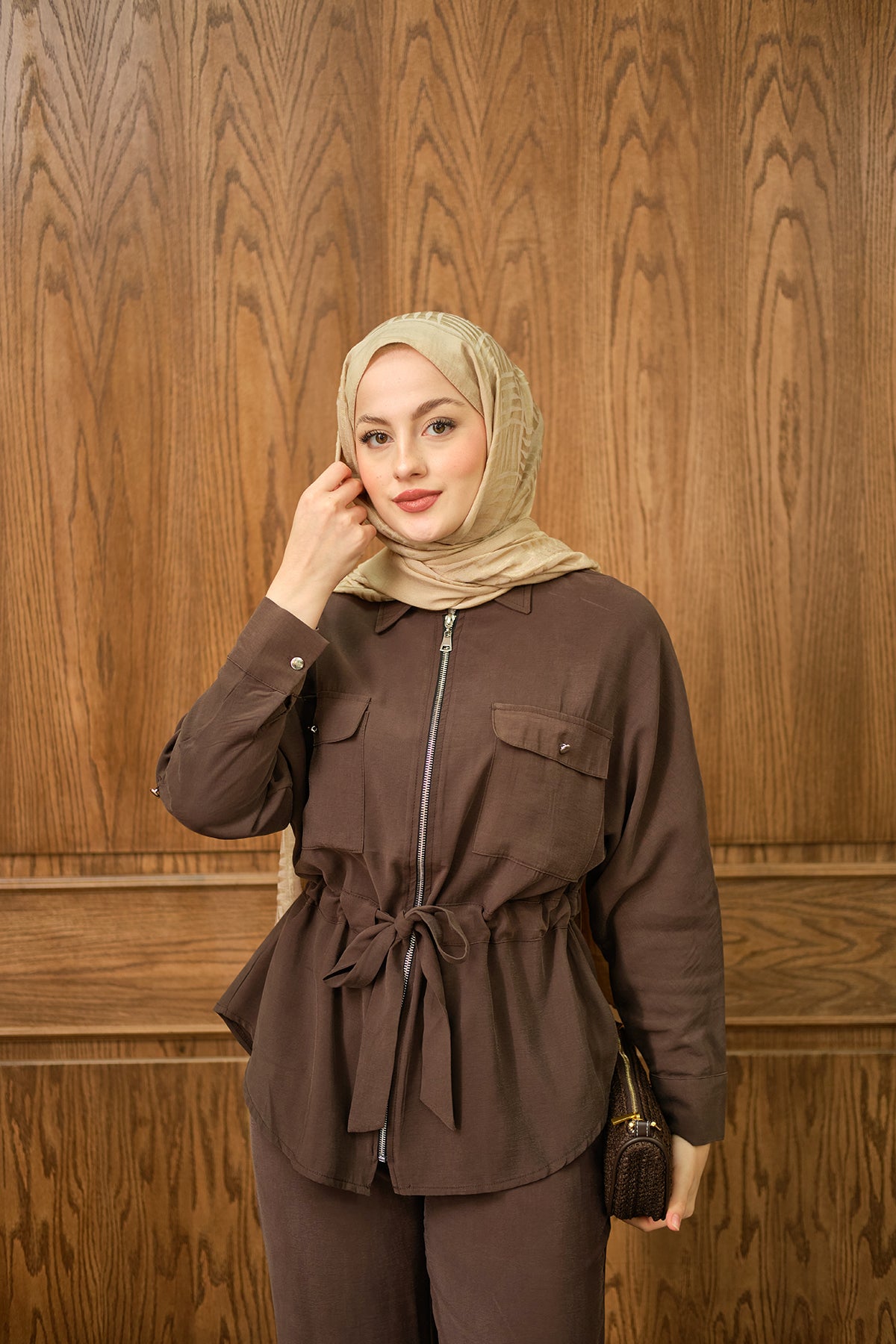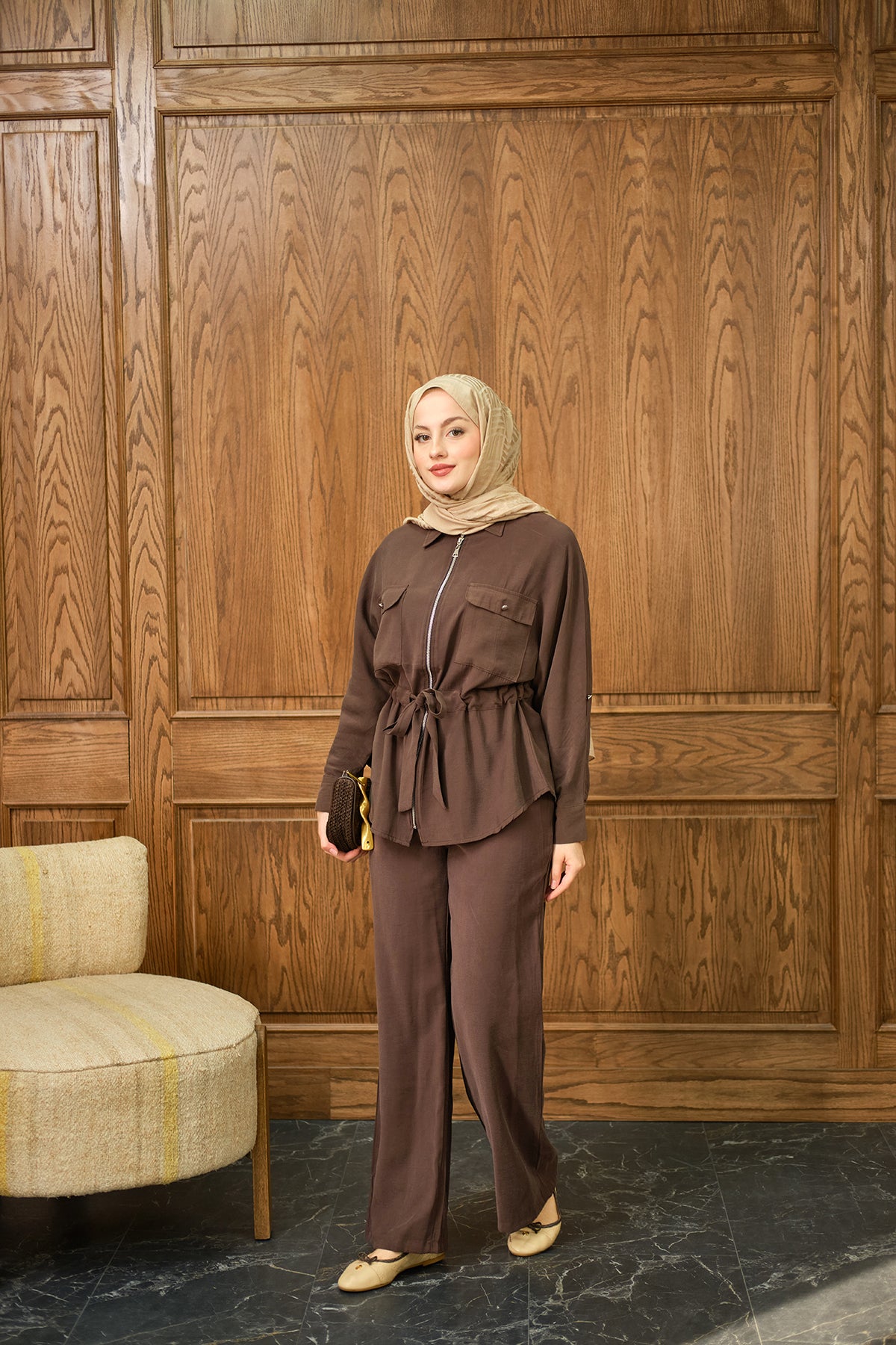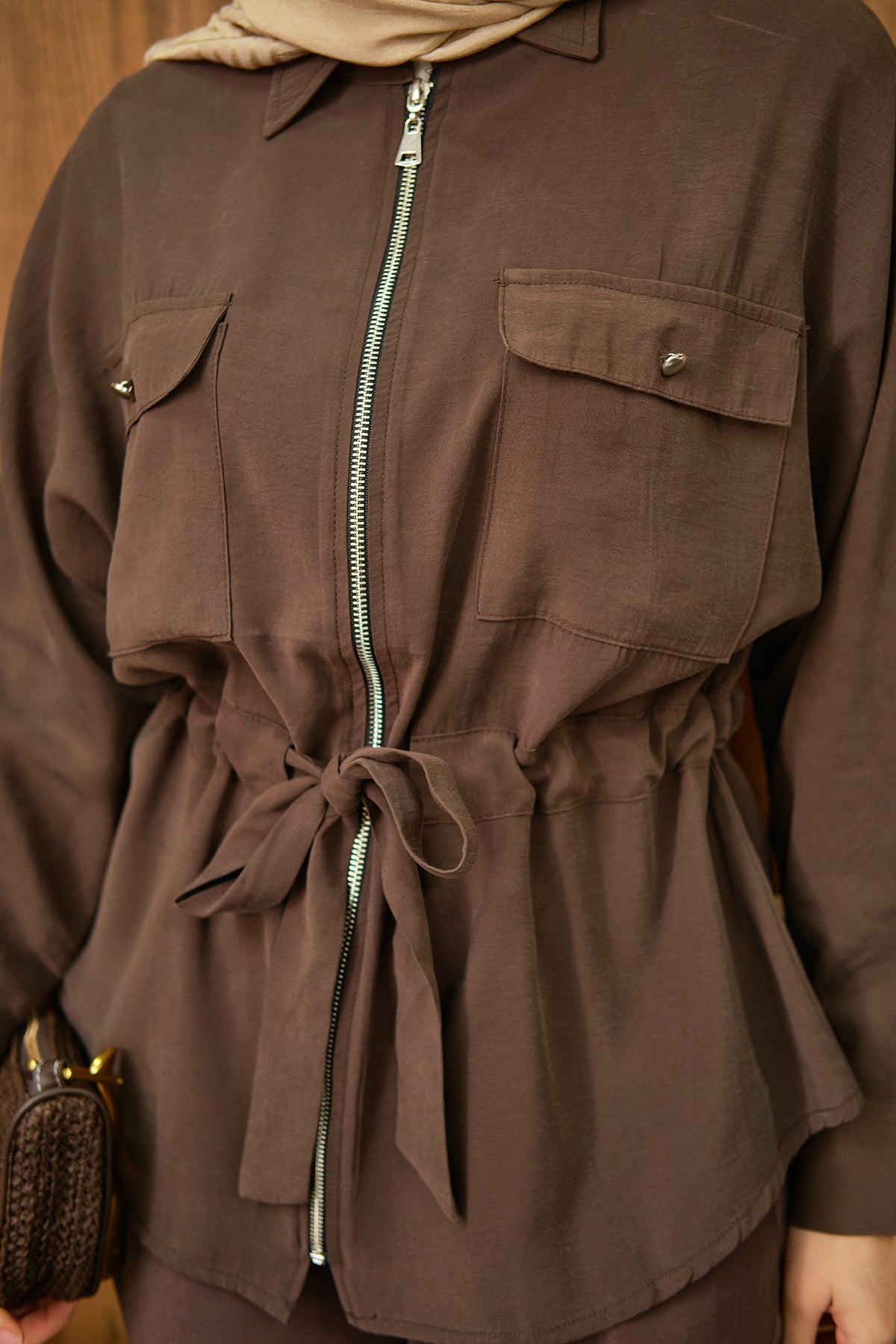 Zippered Two-Piece Suit - Brown