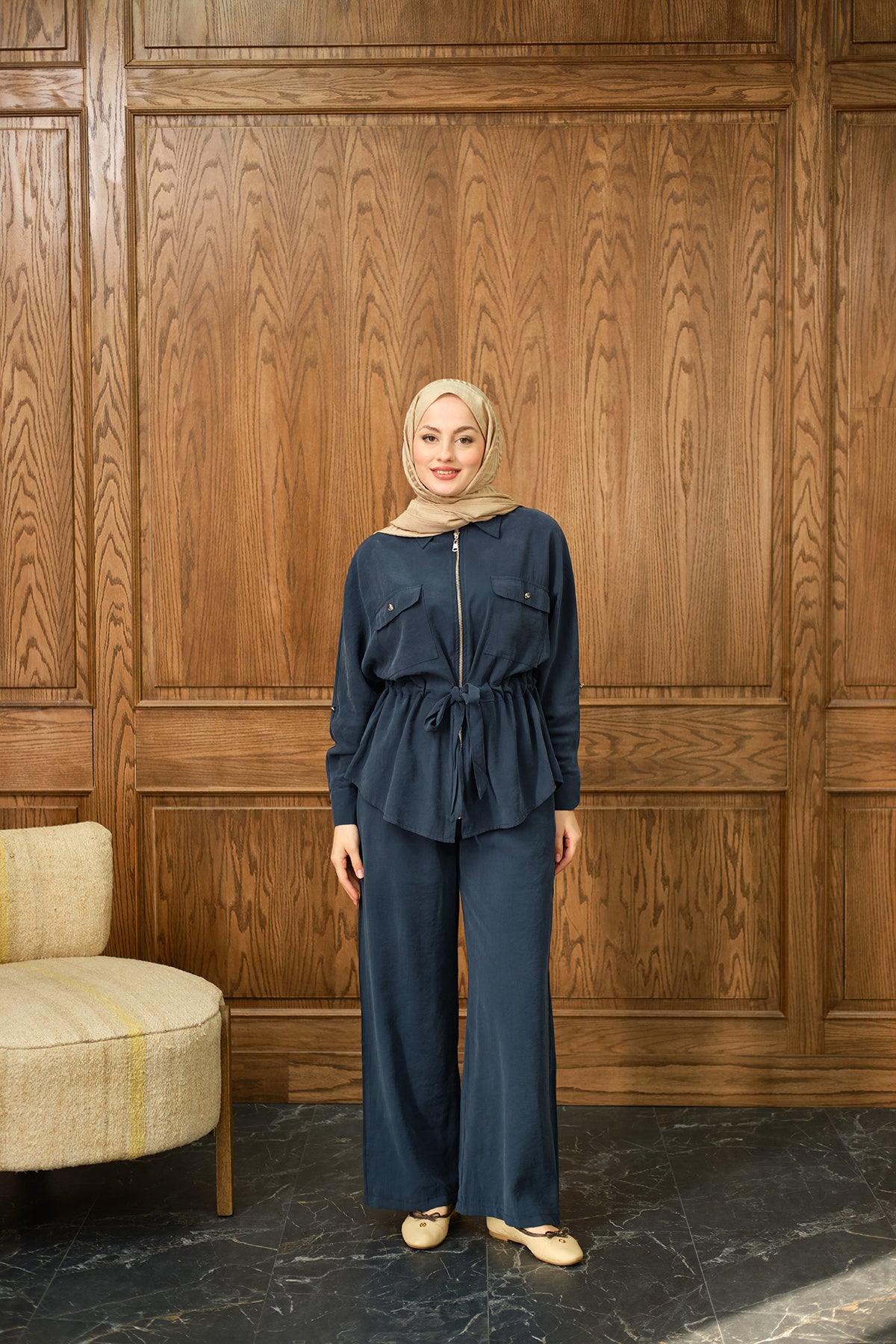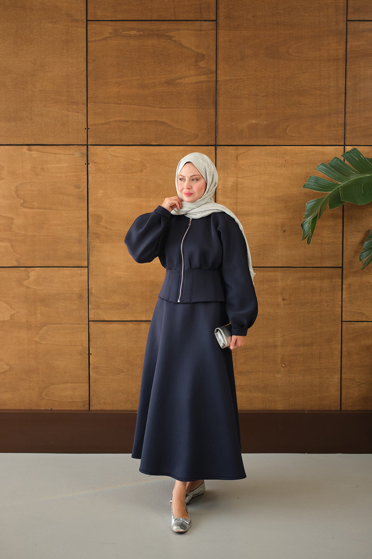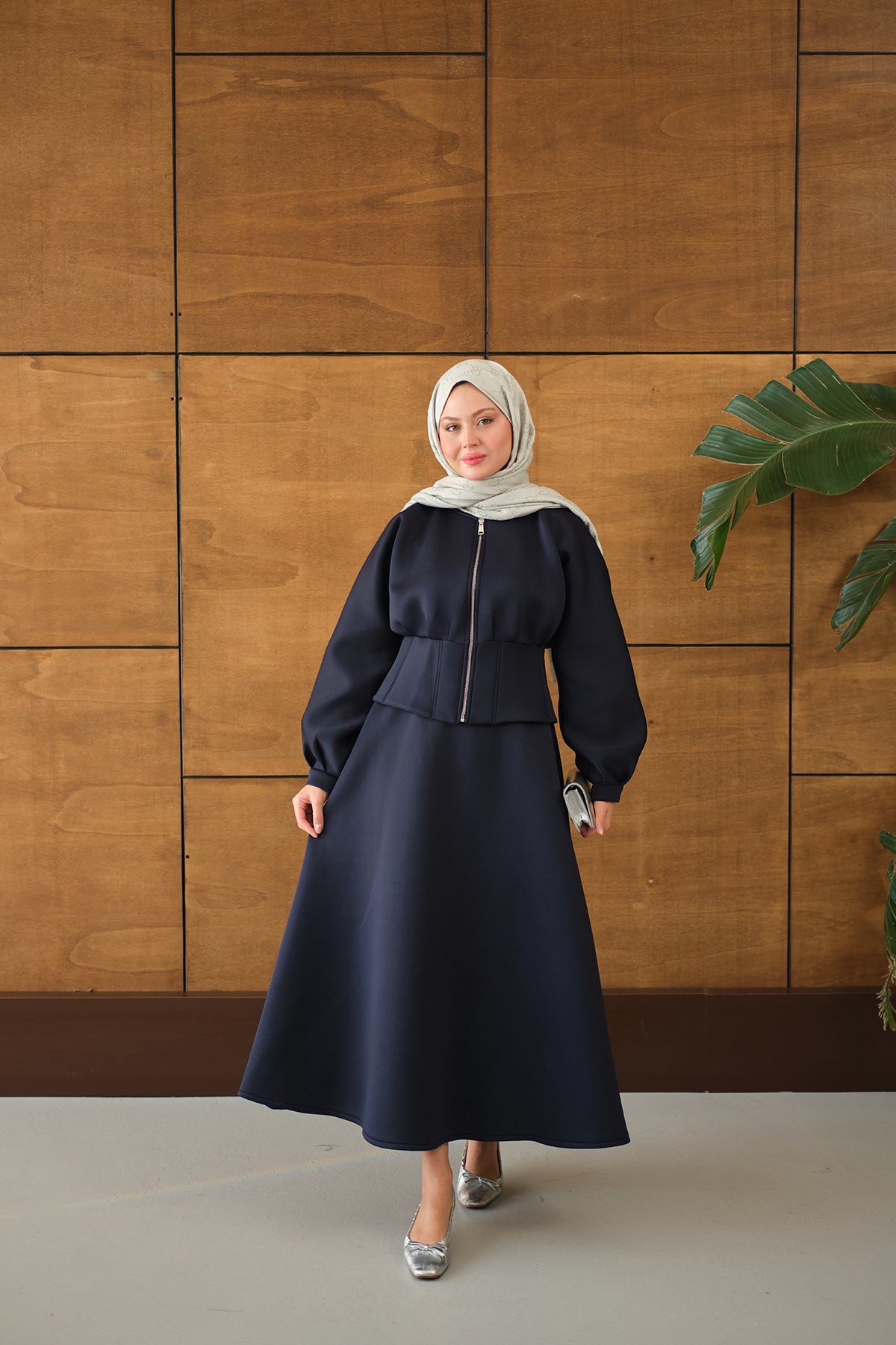 Zippered Skirted Set - Navy